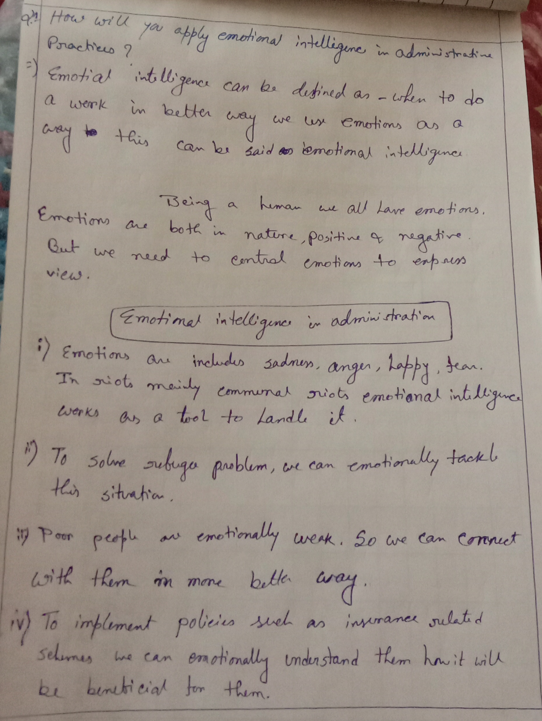 - Mention how emotional intelligence can be applied in administrative practices along with proper substantiation.