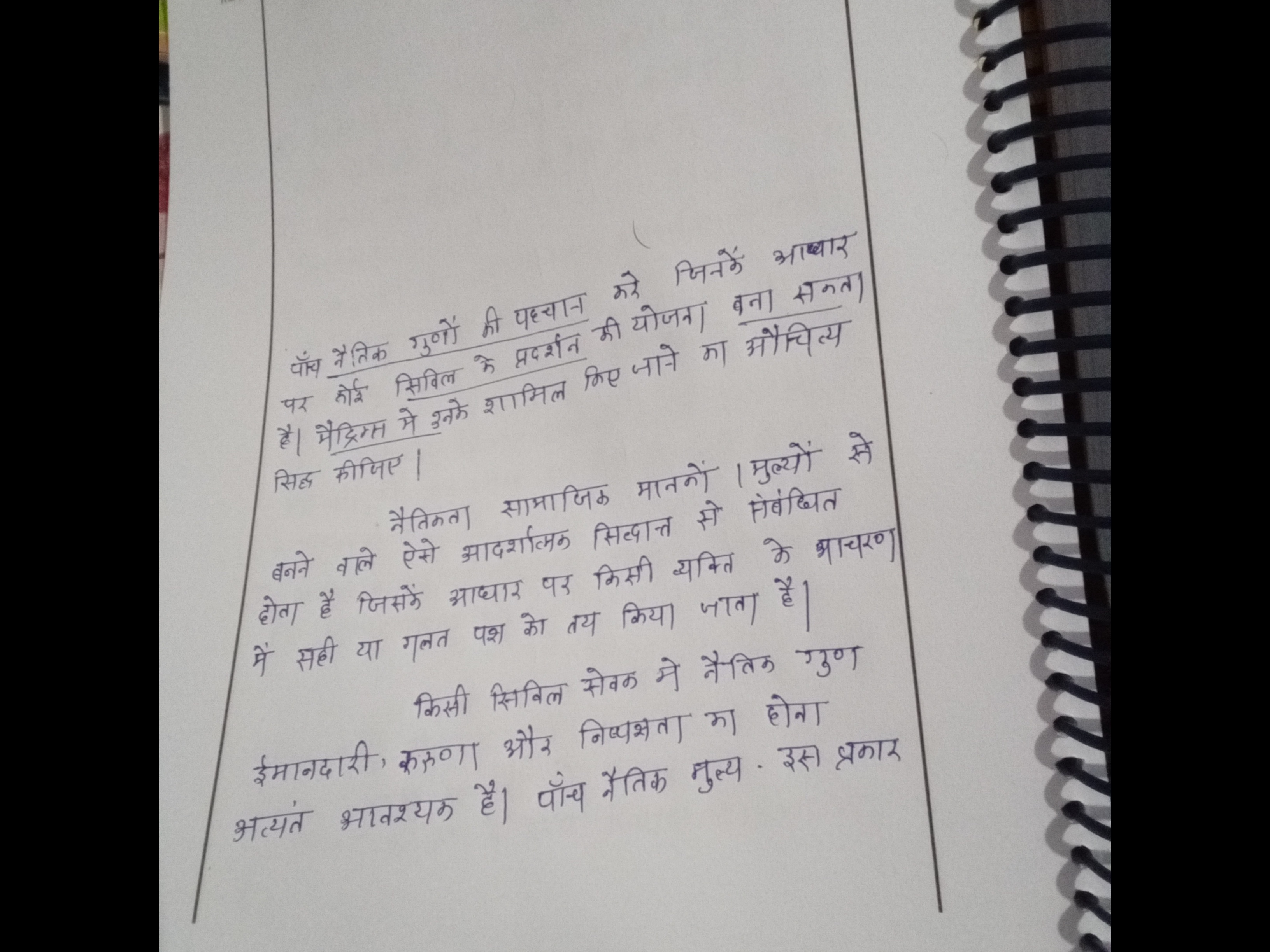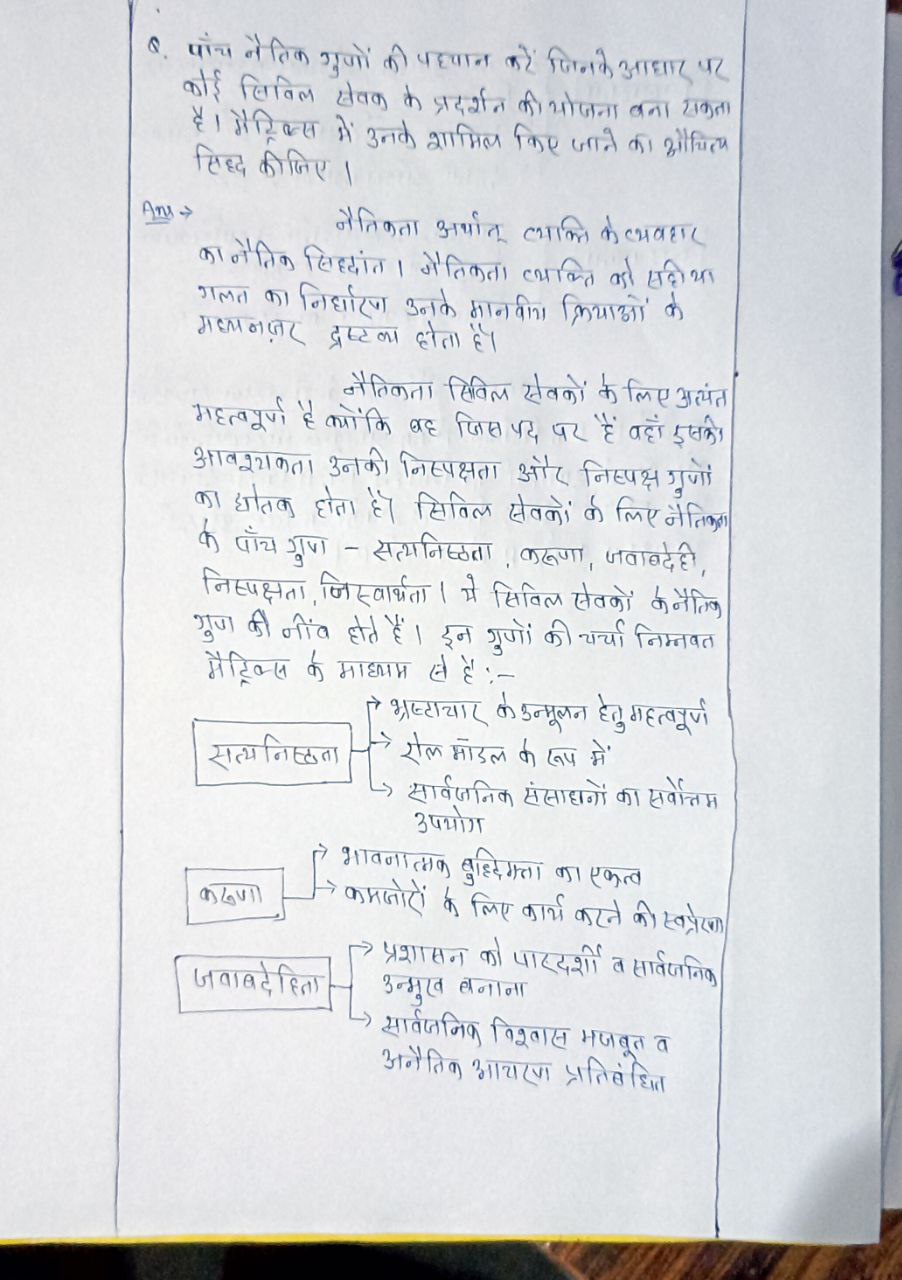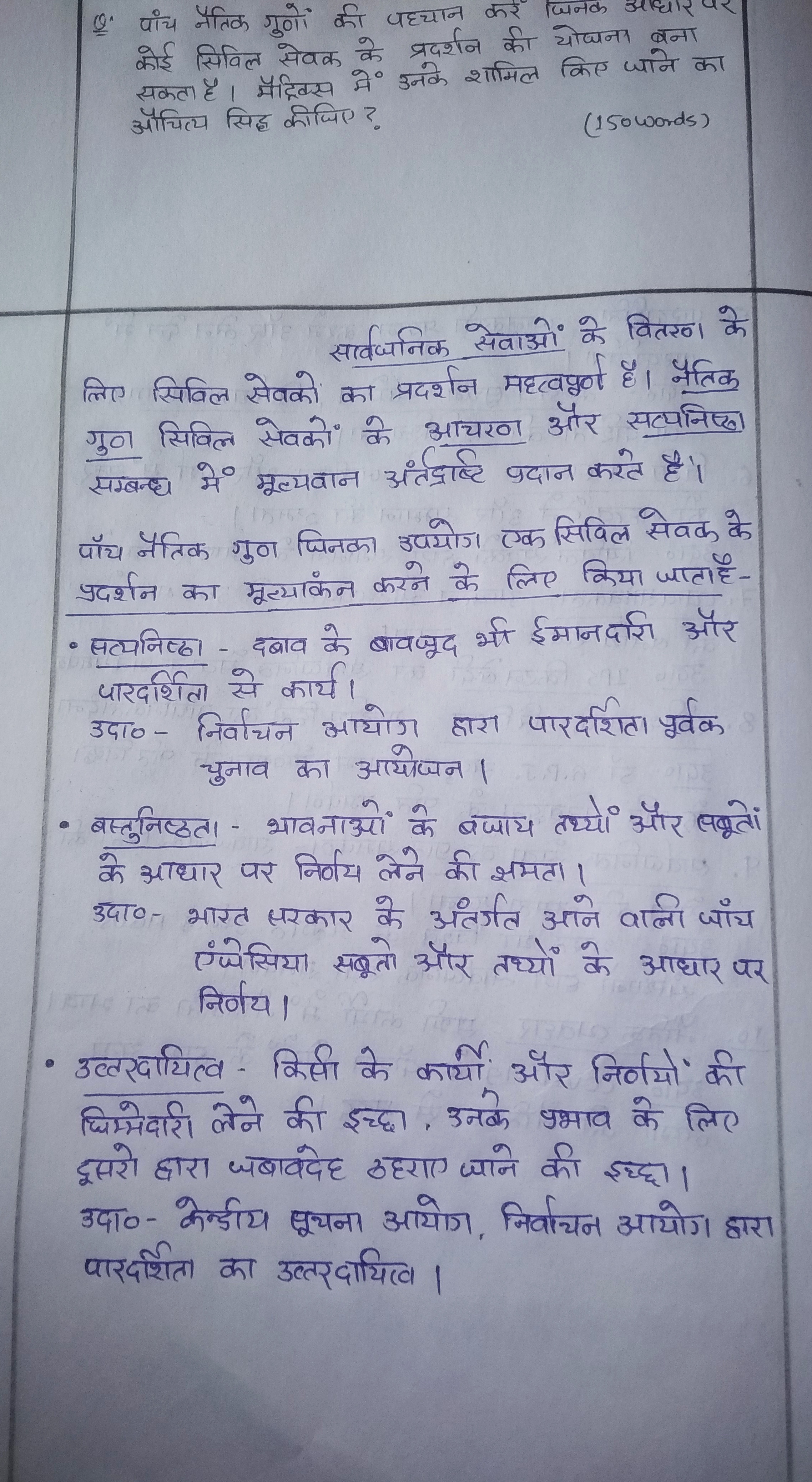 पाँच नैतिक गुण जिनका उपयोग एक सिविल सेवक के प्रदर्शन का मूल्यांकन करने के लिए किया जा सकता है: