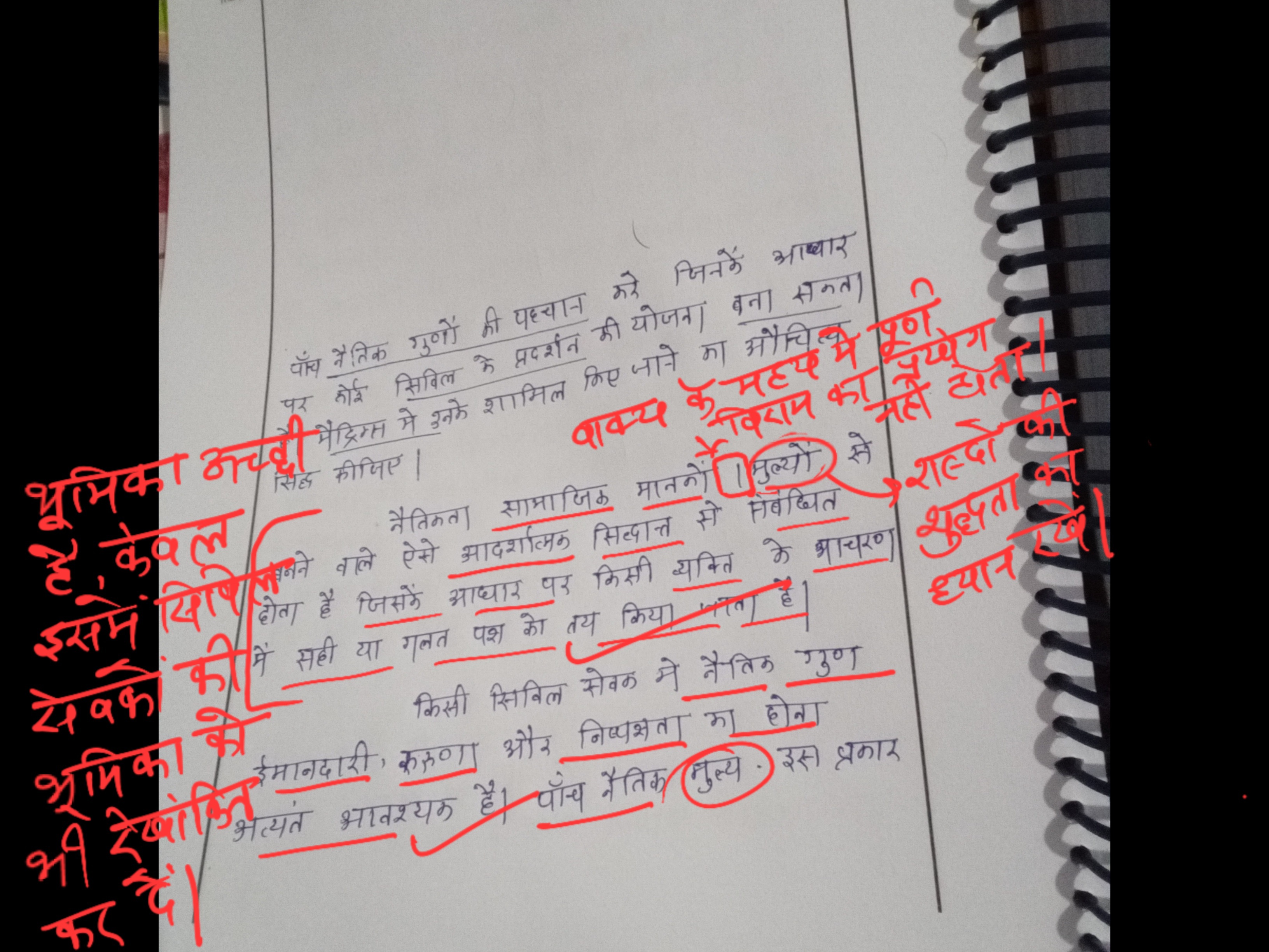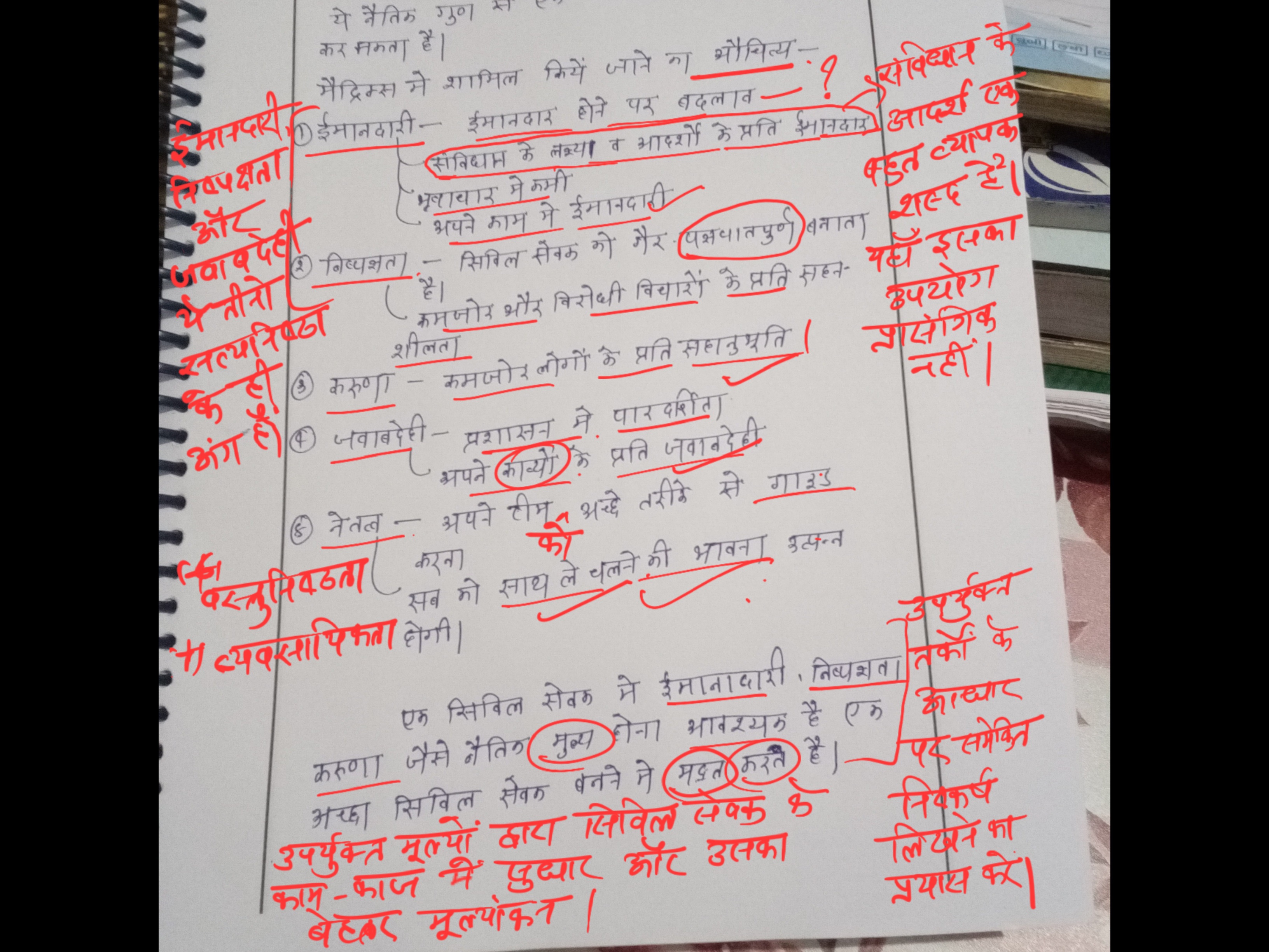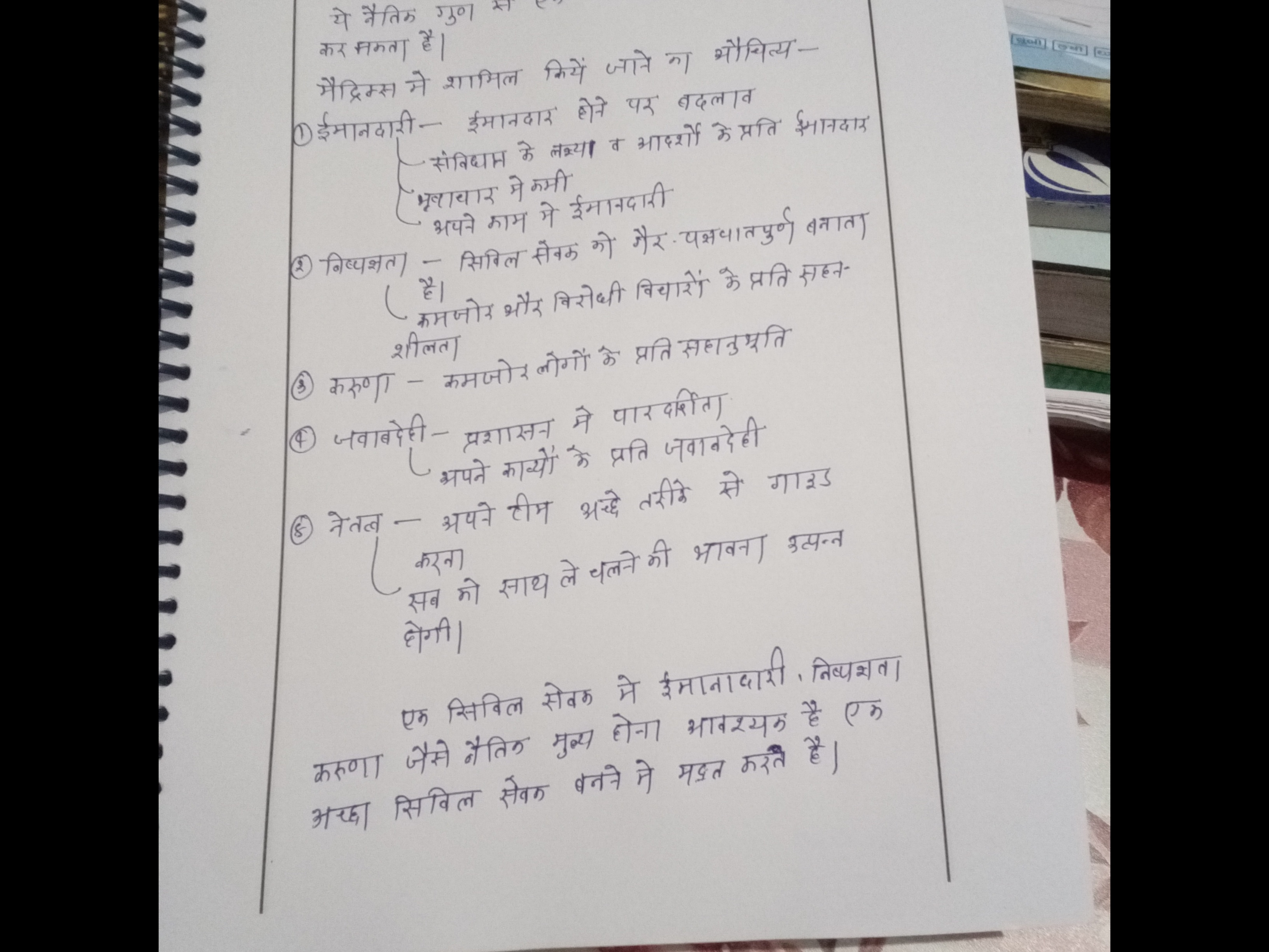 पाँच नैतिक गुण जिनका उपयोग एक सिविल सेवक के प्रदर्शन का मूल्यांकन करने के लिए किया जा सकता है: