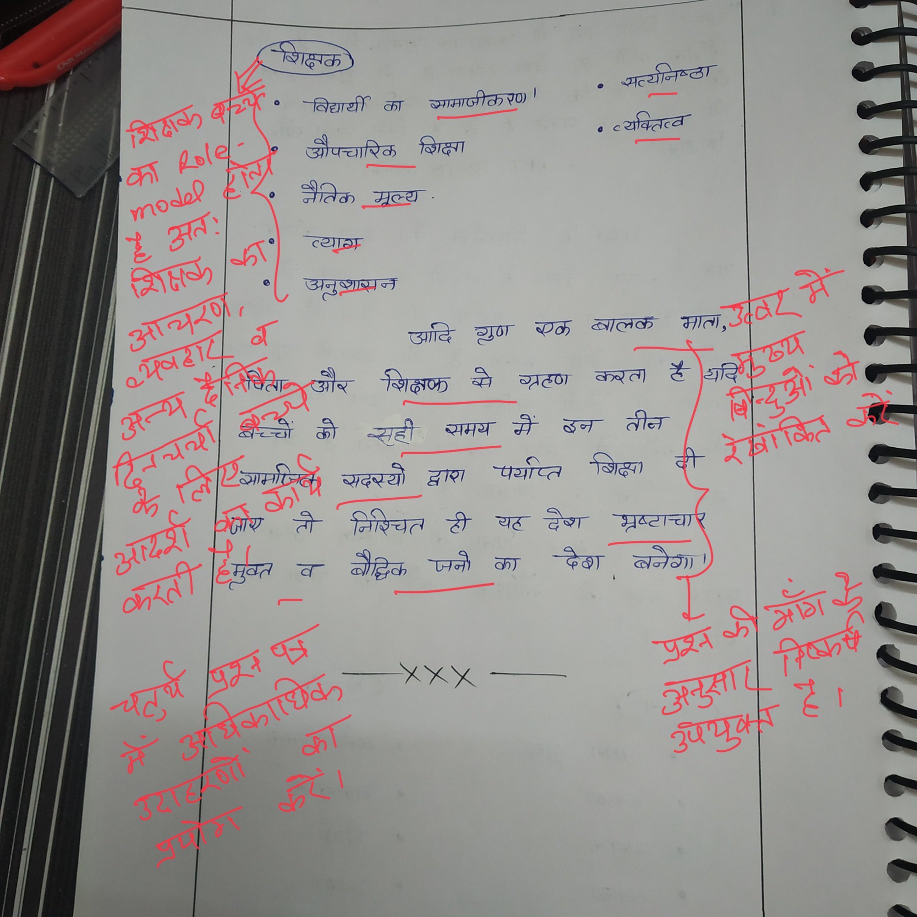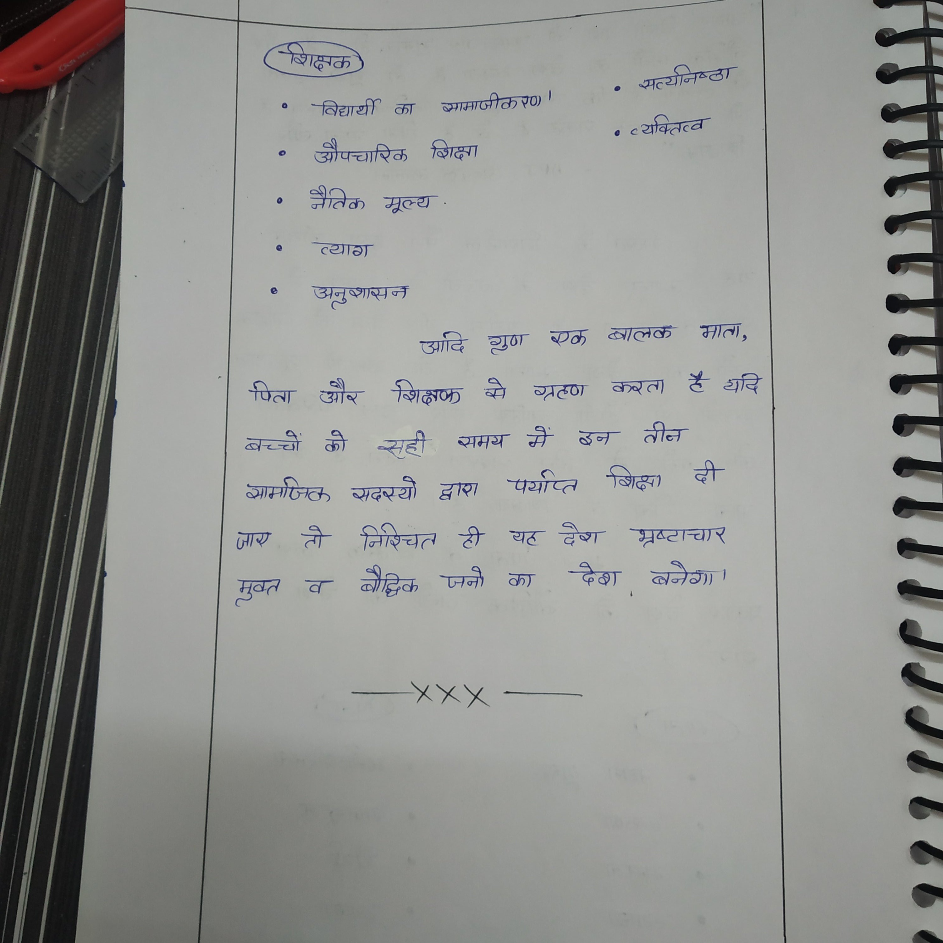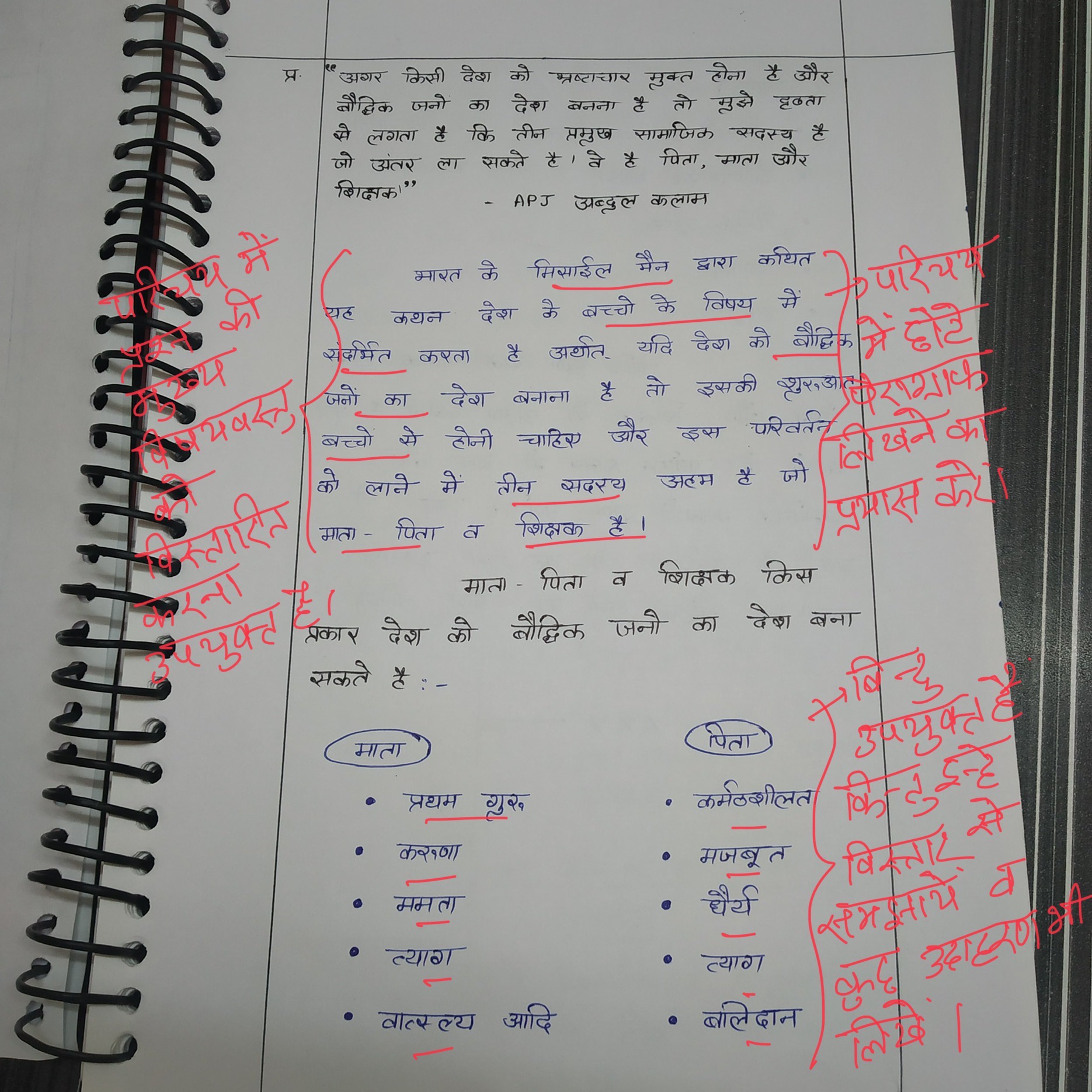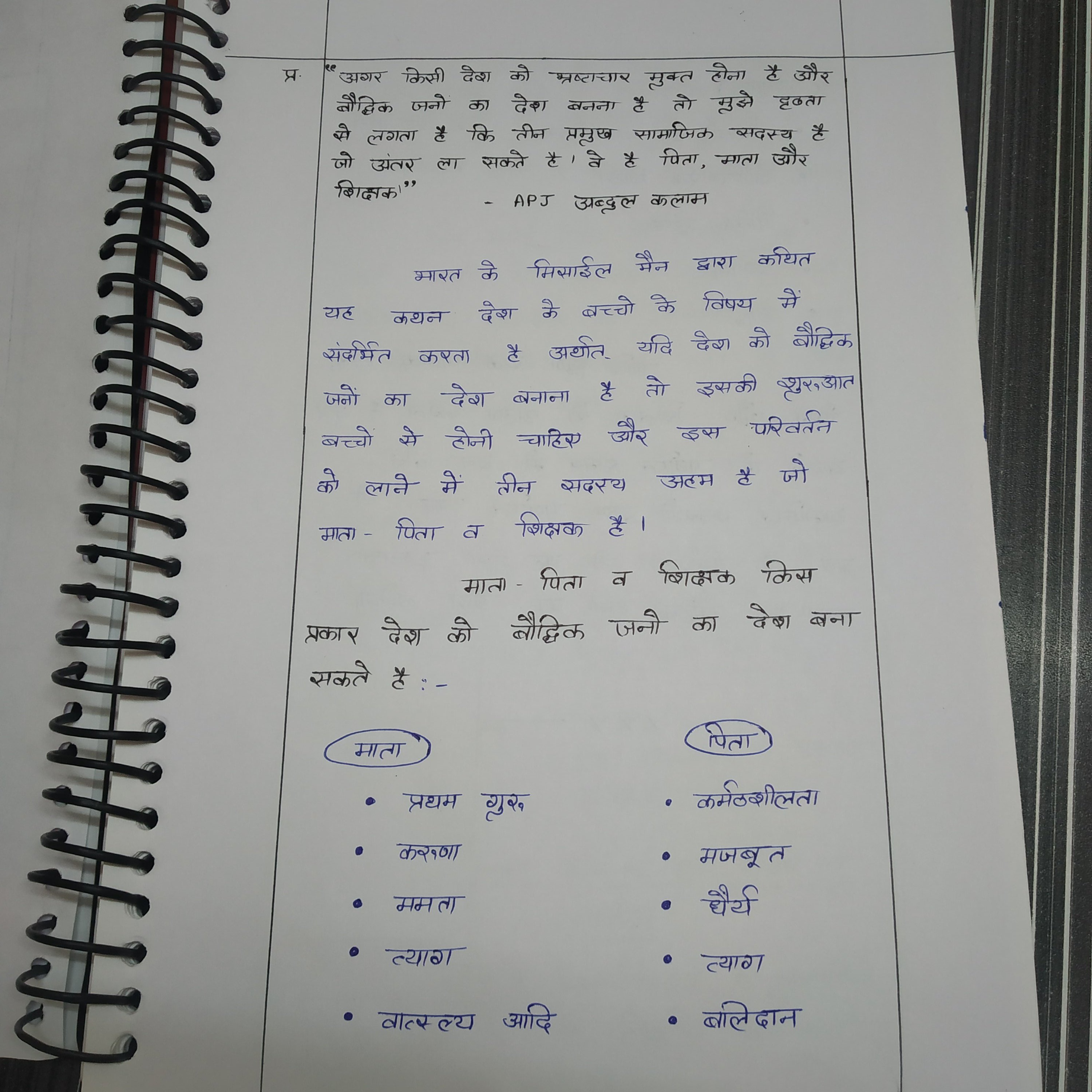 - देश को भ्रष्टाचार मुक्त बनाने में पिता, माता और शिक्षक के साथ-साथ समाज की भूमिका