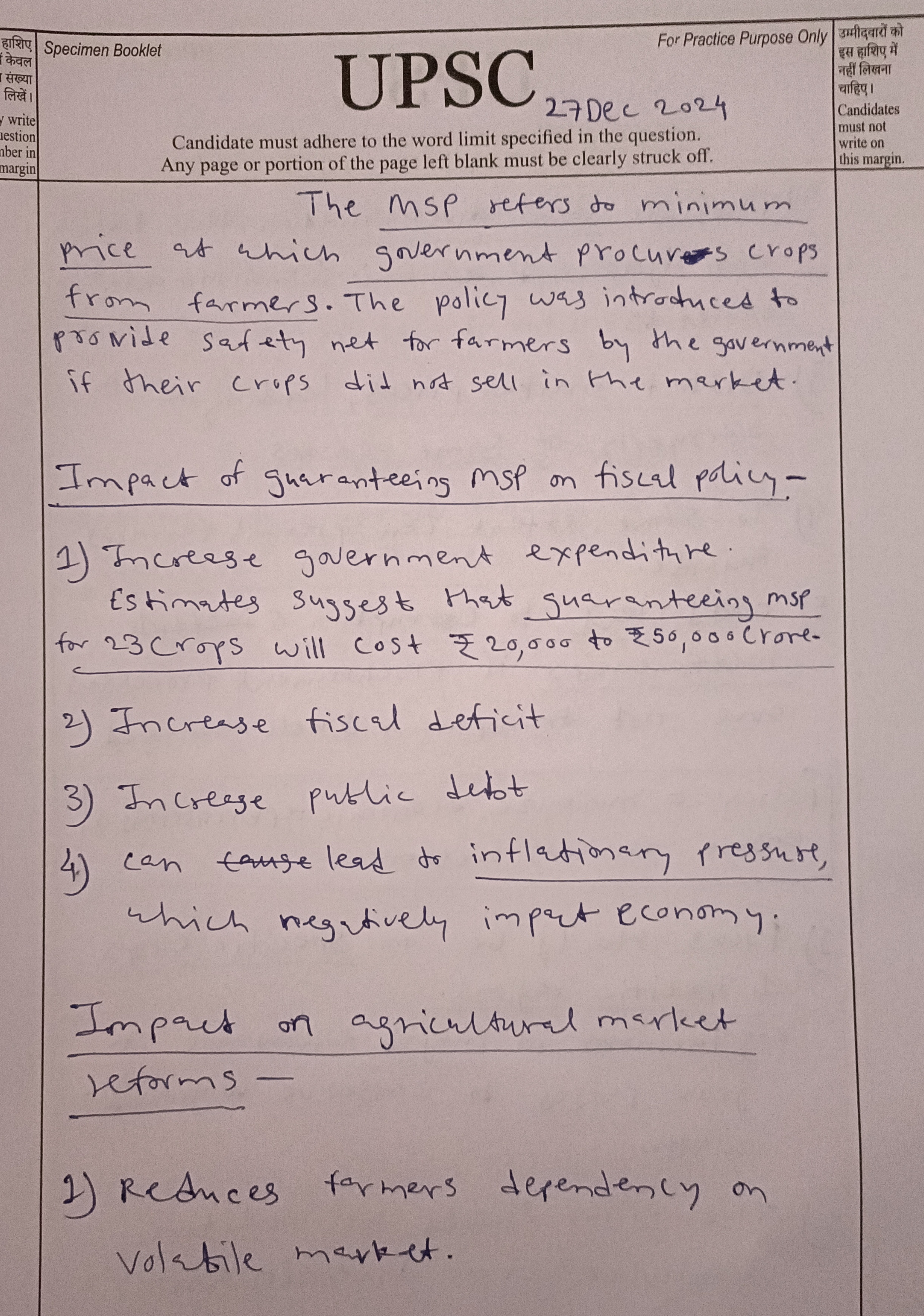 - Examine the impact of guaranteeing Minimum Support Price (MSP) on India’s fiscal policy.