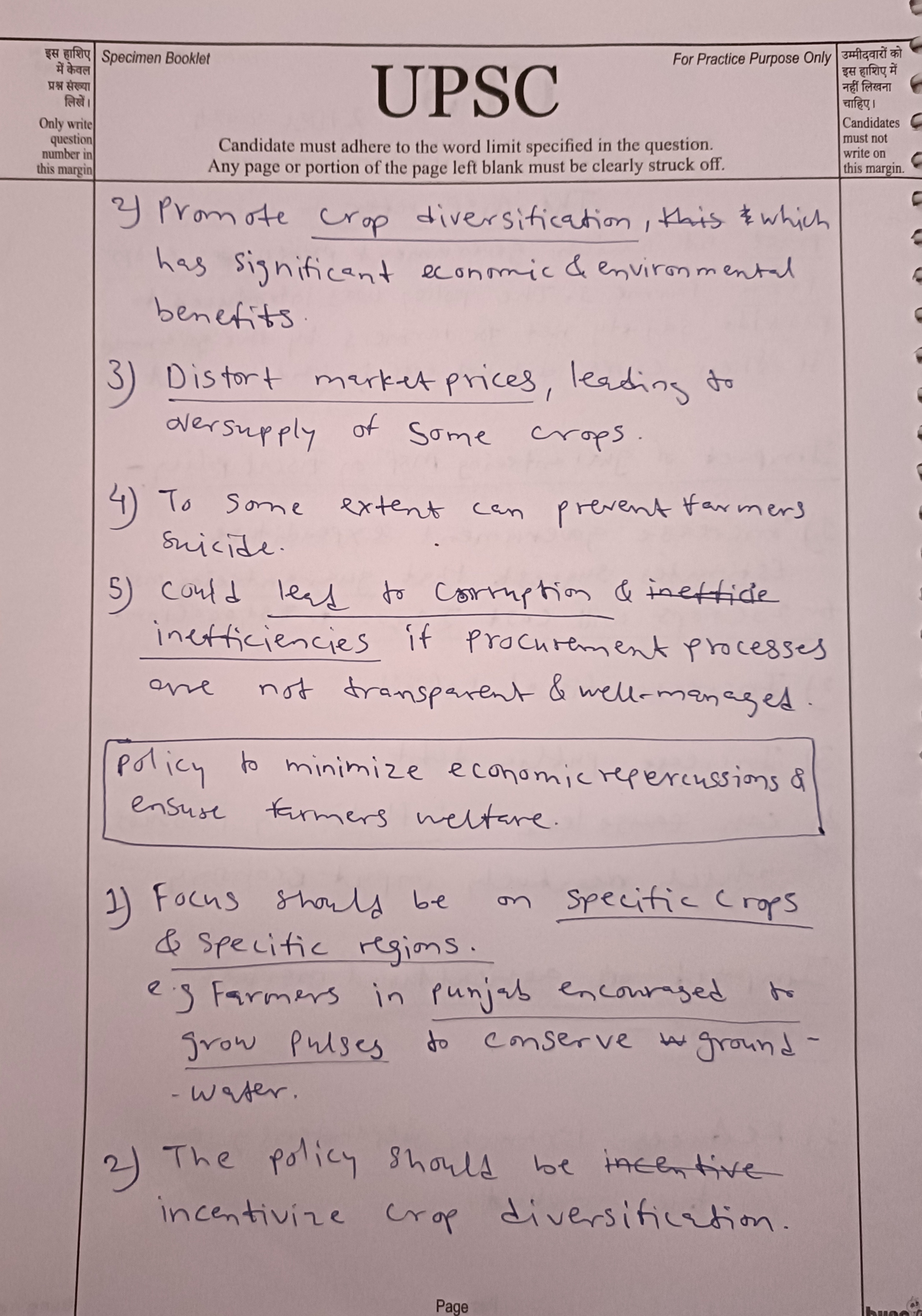 For instance: With guaranteed MSP for pulses or oilseeds, farmers in Punjab might diversify crops, reducing reliance on water-intensive rice cultivation.