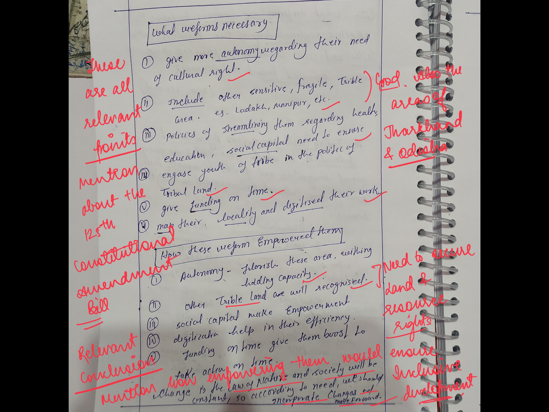 For example: The 125th Constitutional Amendment Bill seeks to empower ADCs with more financial and executive powers, which is crucial for development in tribal areas.