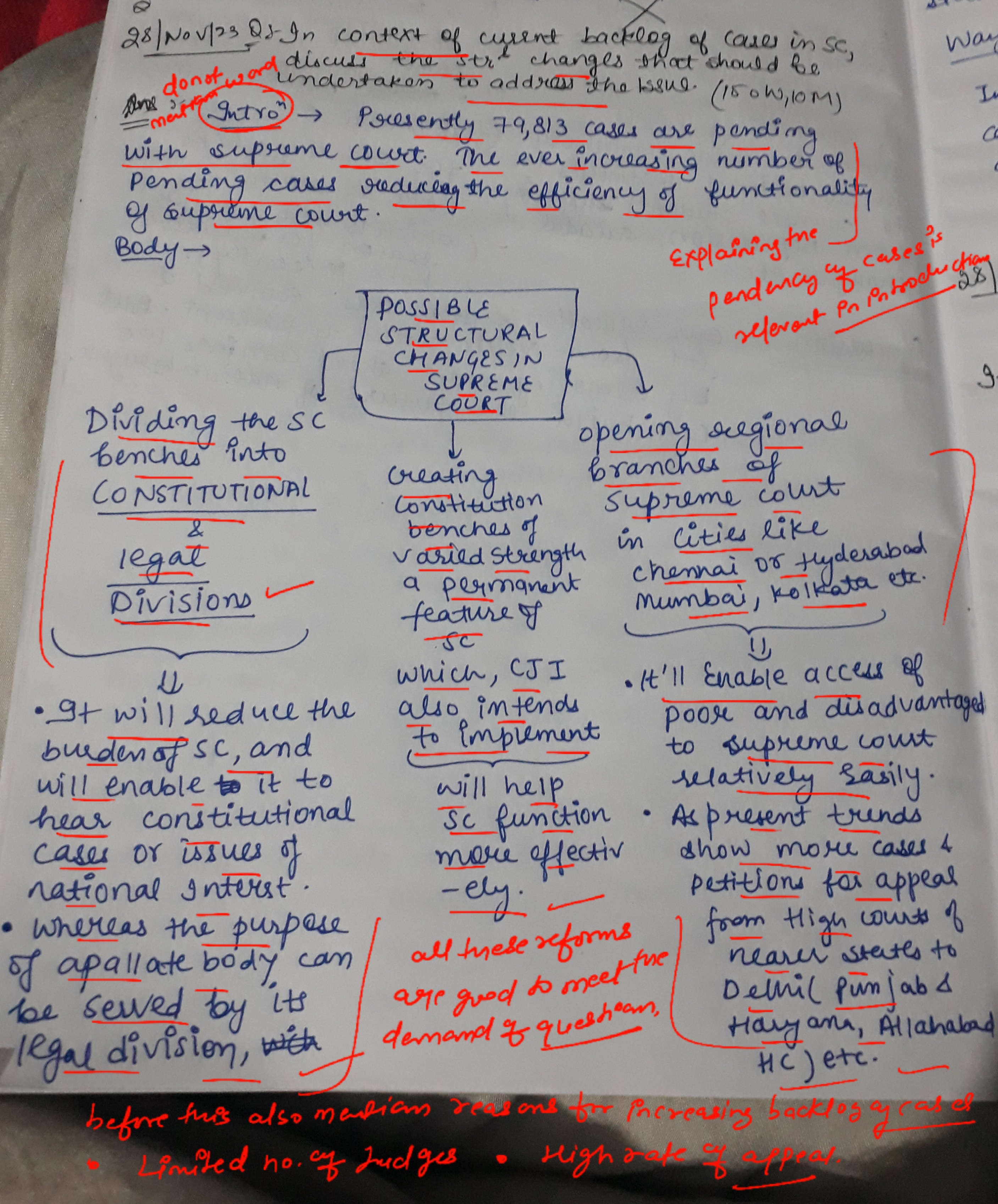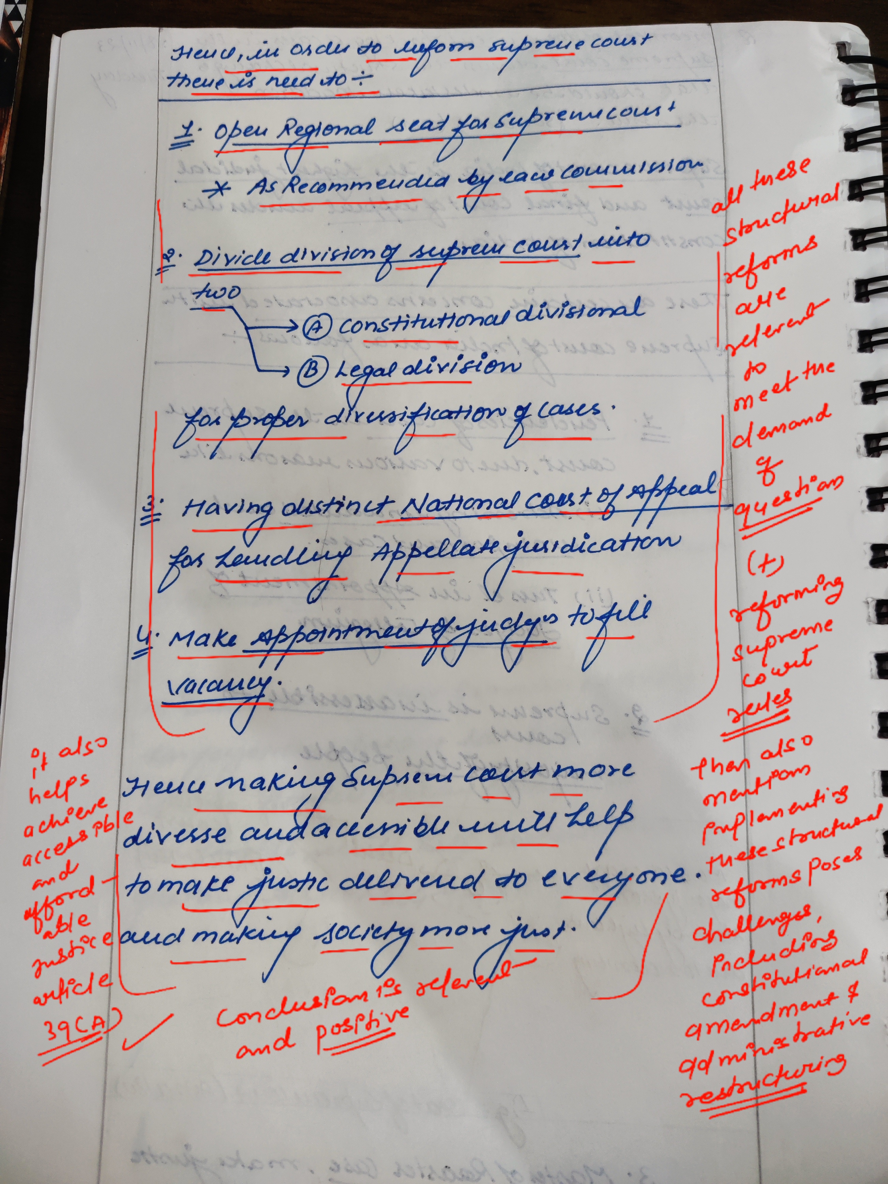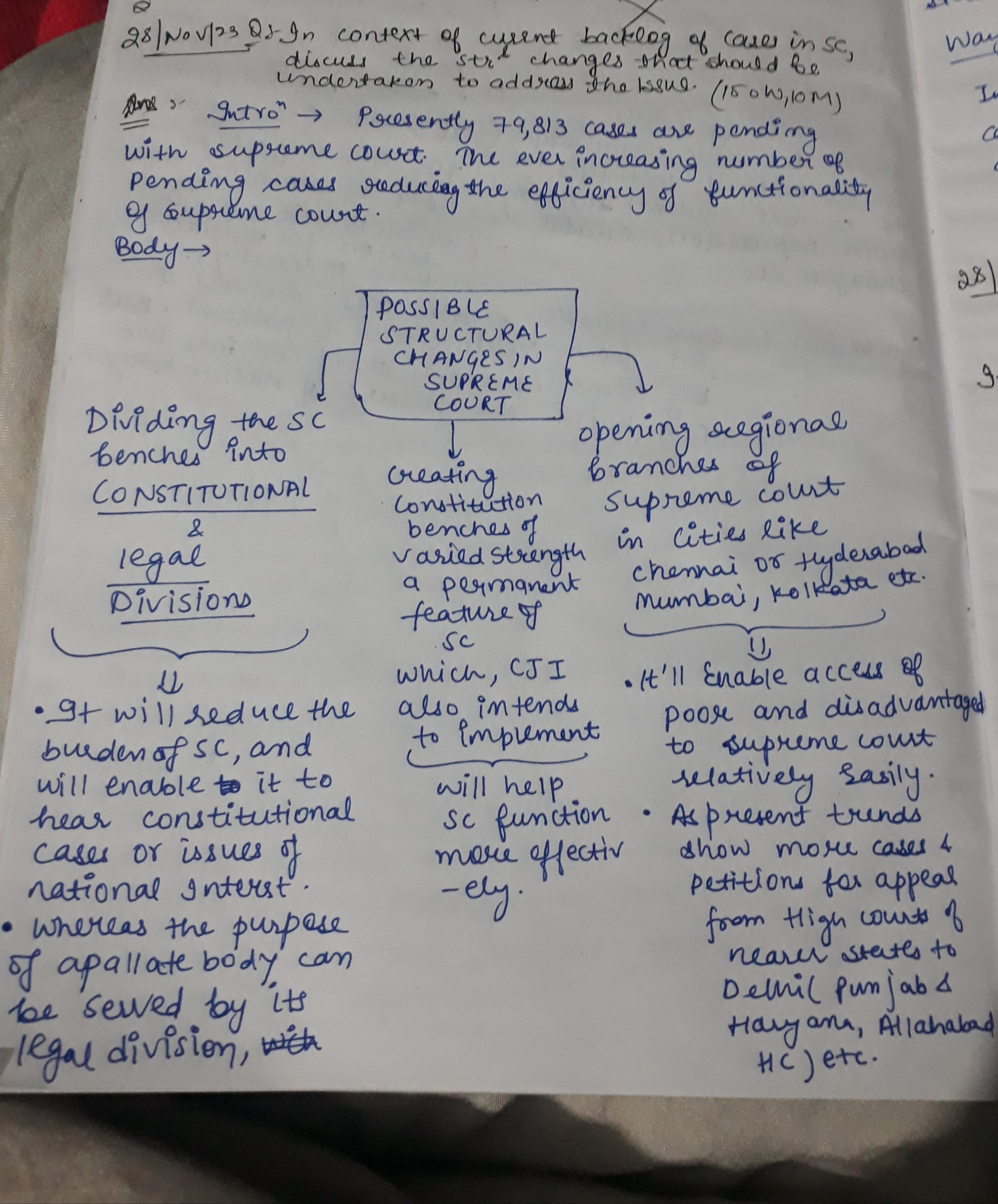 - Outline the proposed structural reforms, including the establishment of Constitution Benches, splitting the court’s functions, introduction of regional benches, and reforming Supreme Court rules.