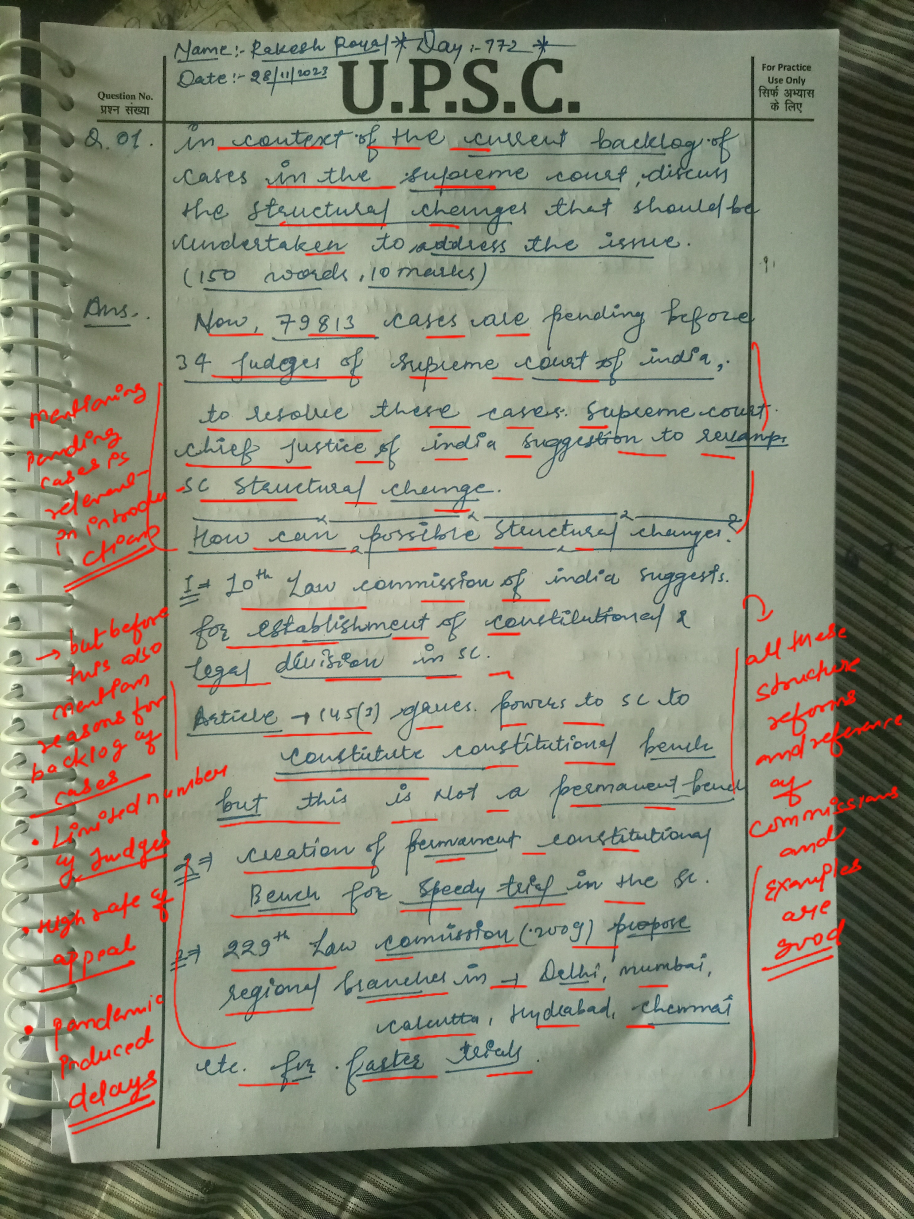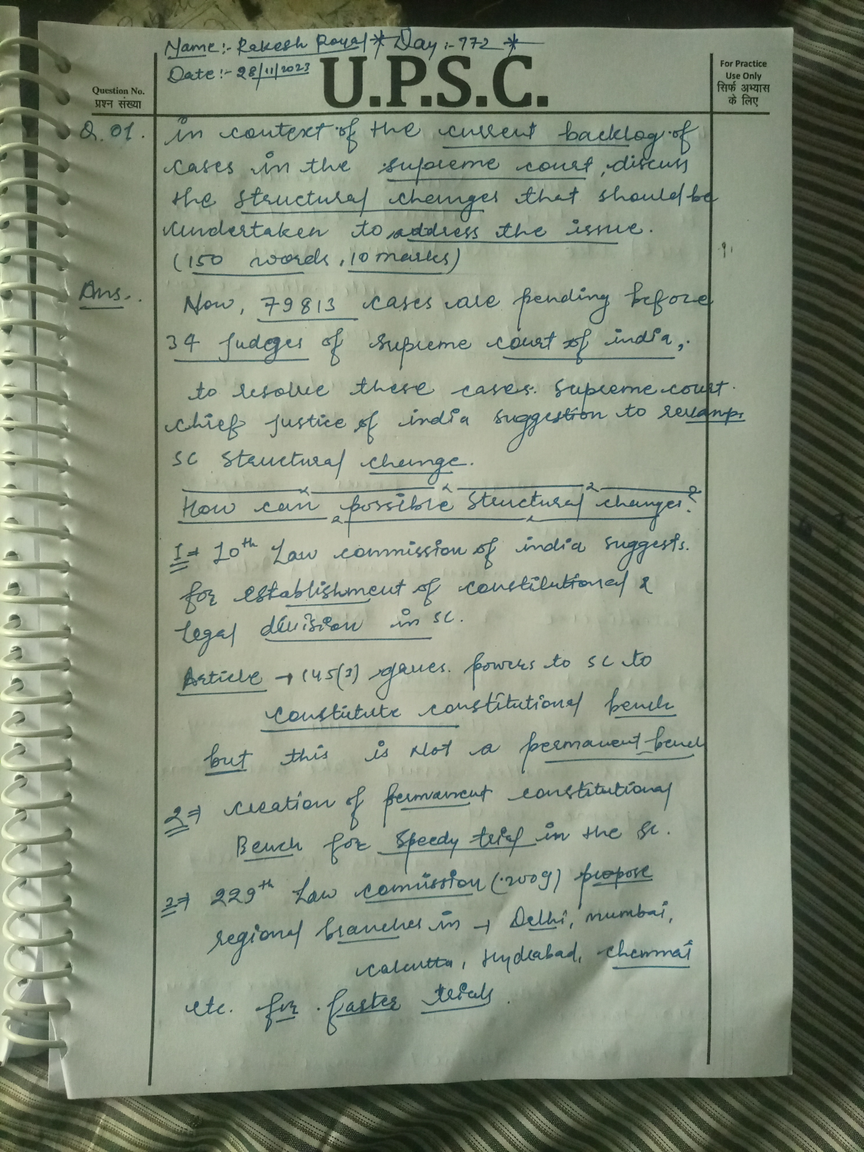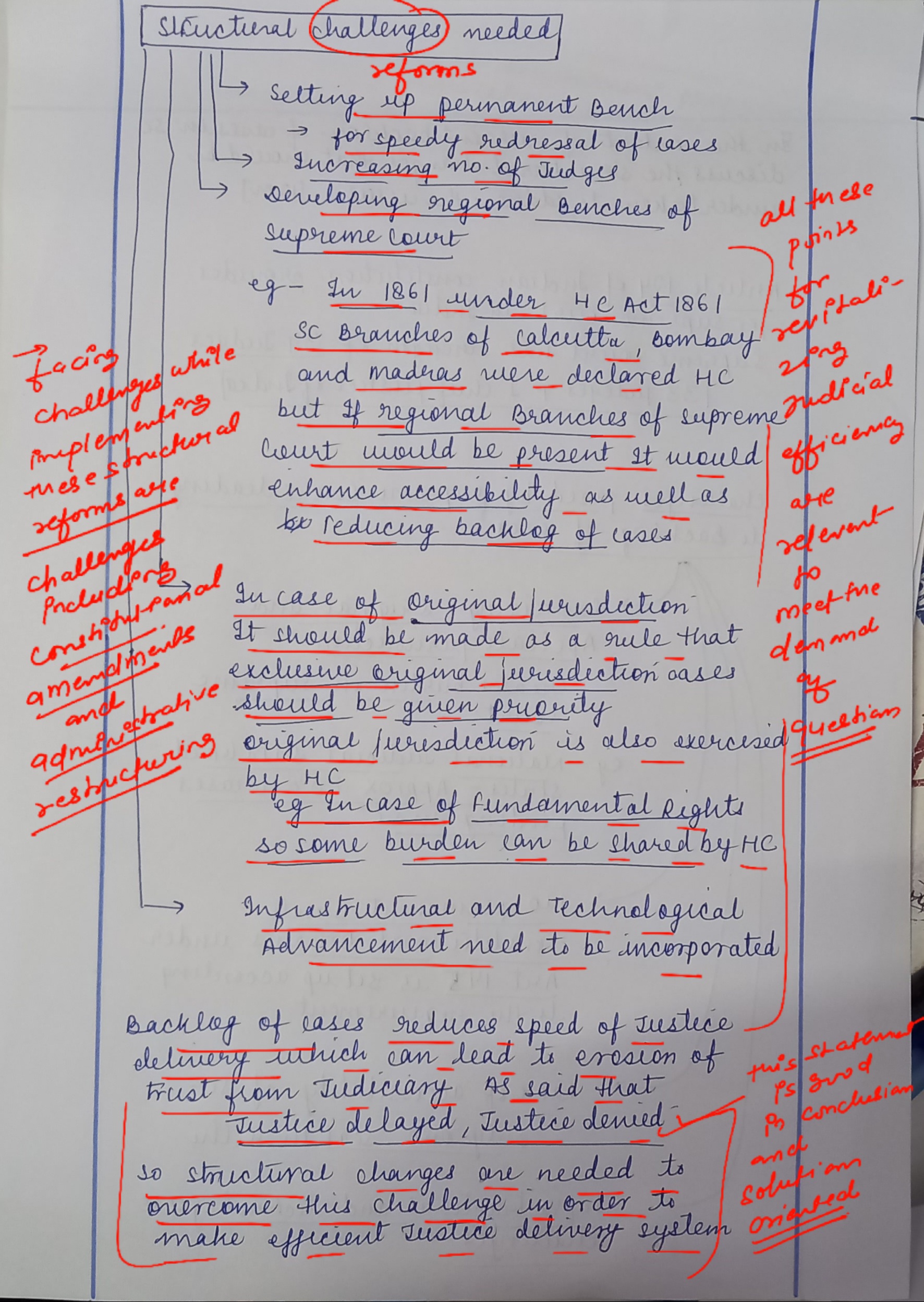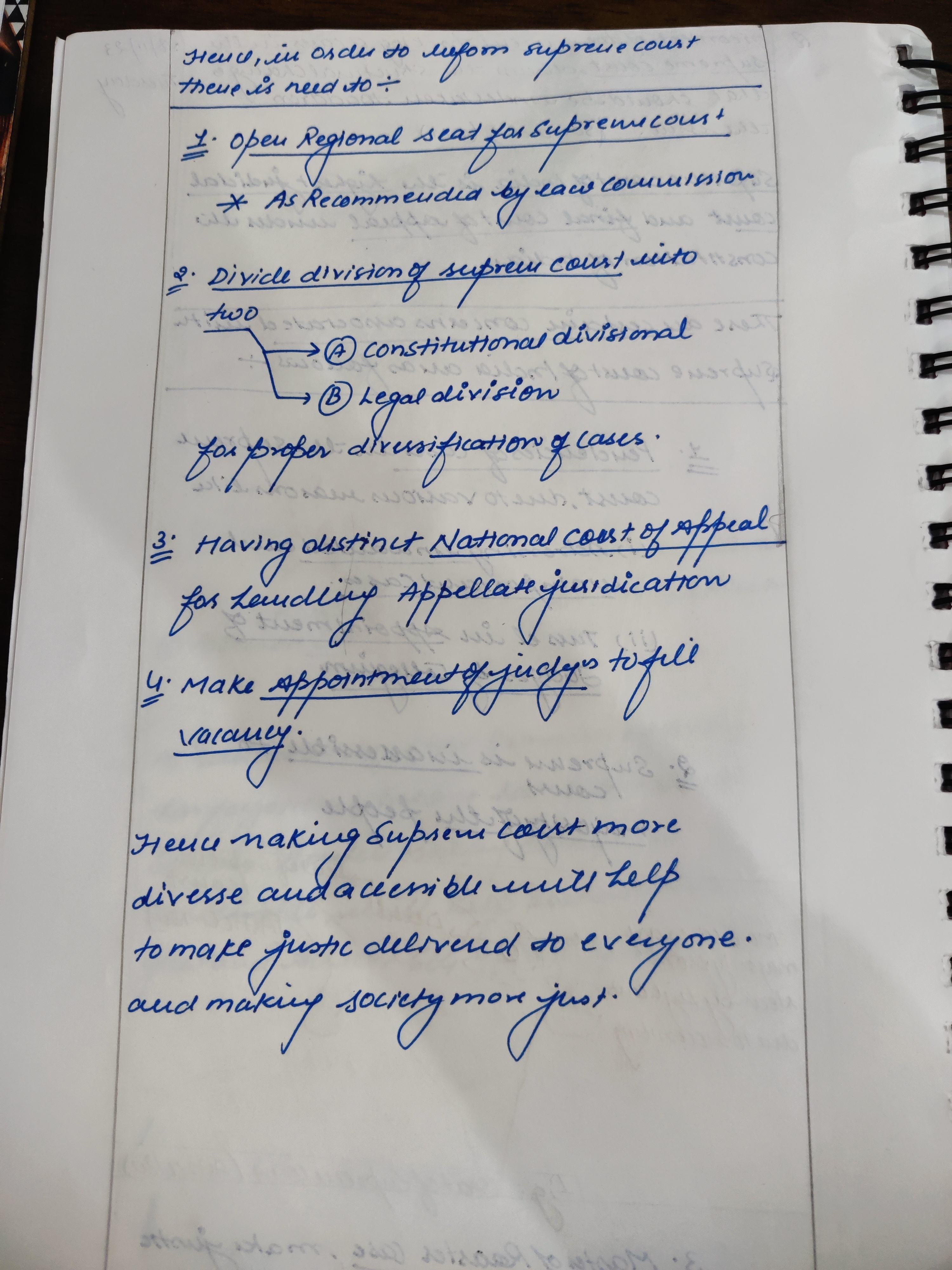 - Outline the proposed structural reforms, including the establishment of Constitution Benches, splitting the court’s functions, introduction of regional benches, and reforming Supreme Court rules.