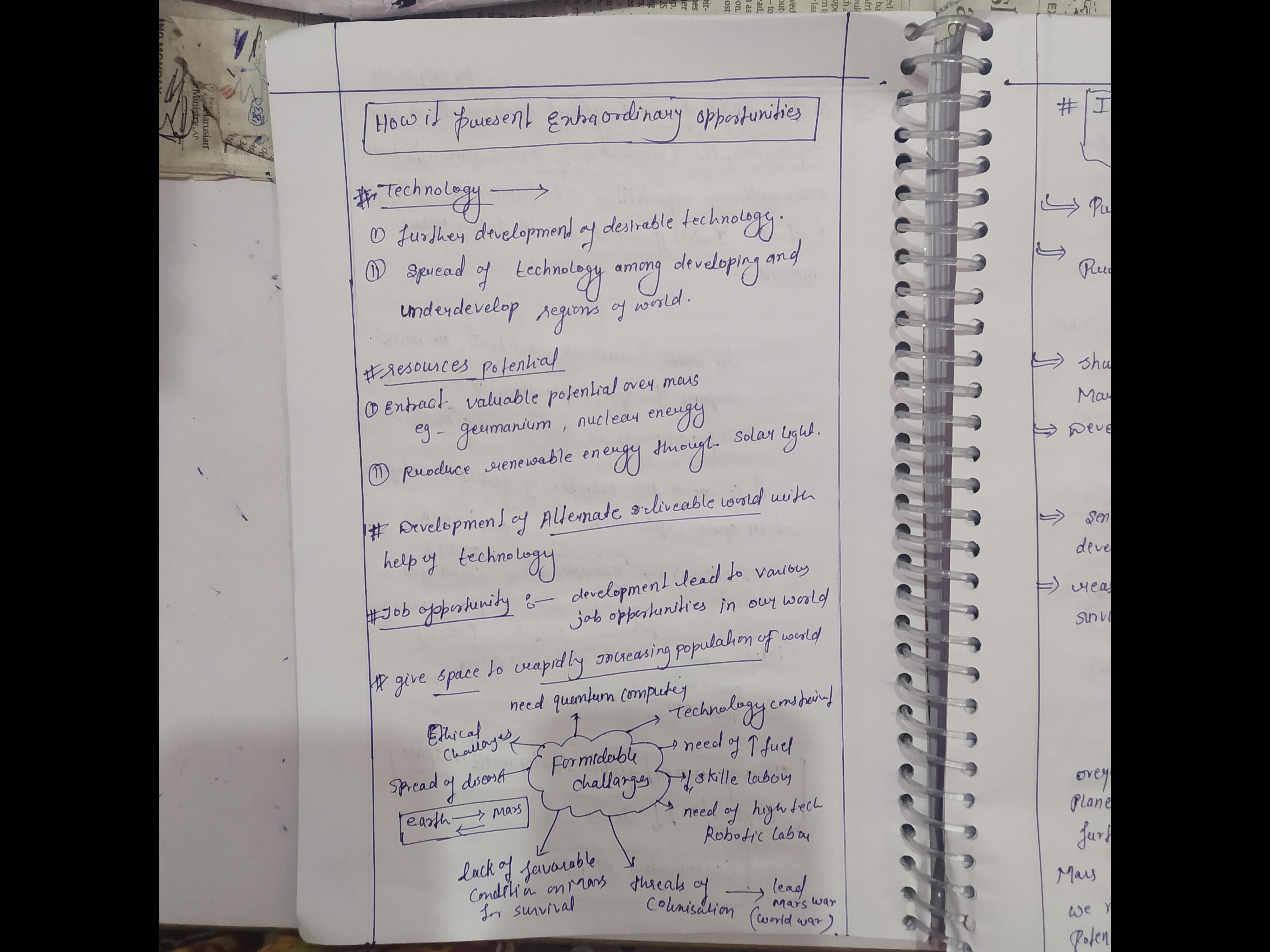 - Discuss the extraordinary opportunities presented by the colonisation of Mars.