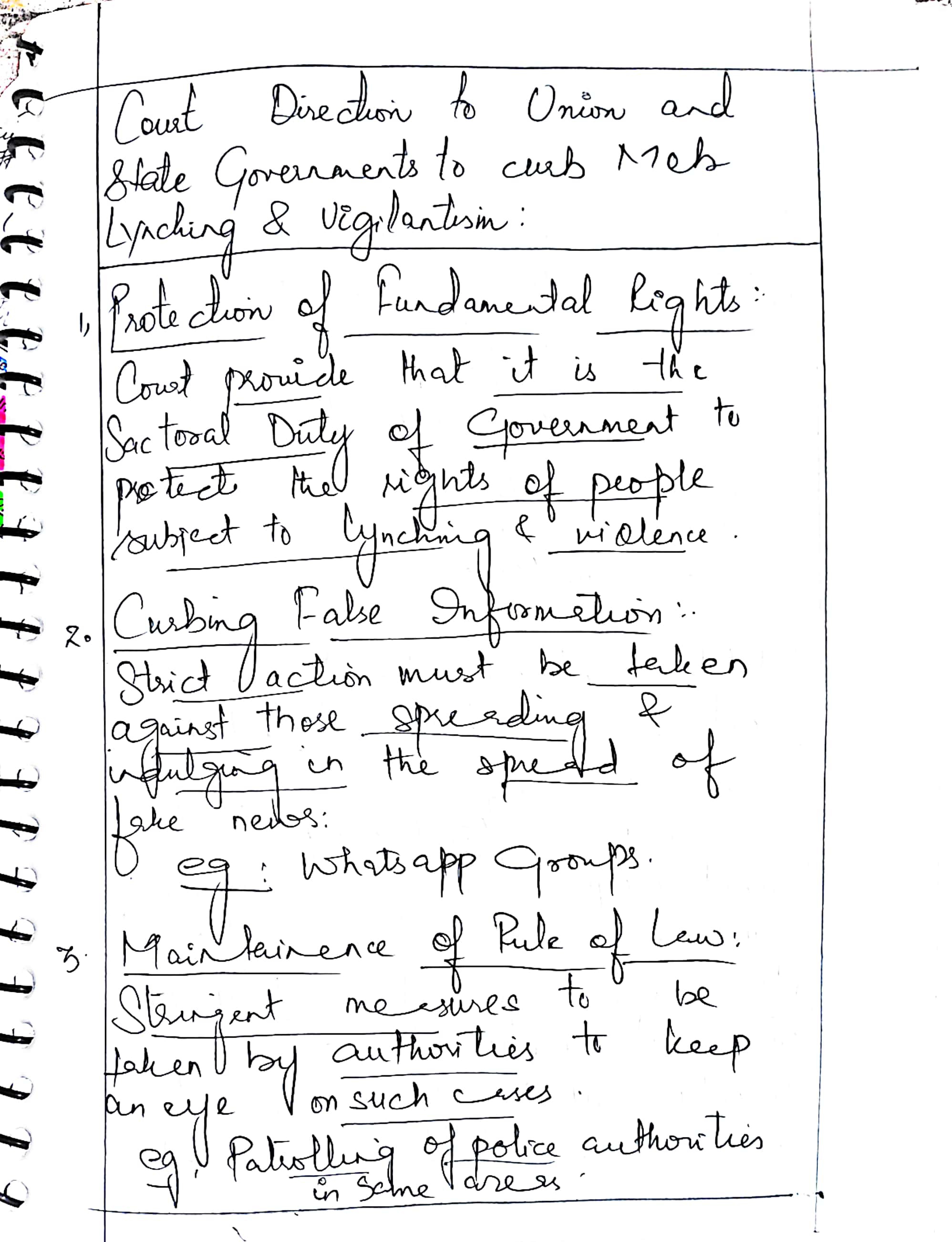 - The governments were also directed to use modern technological tools, especially the internet and social media, to curb and dispel rumours that might lead to such incidents.