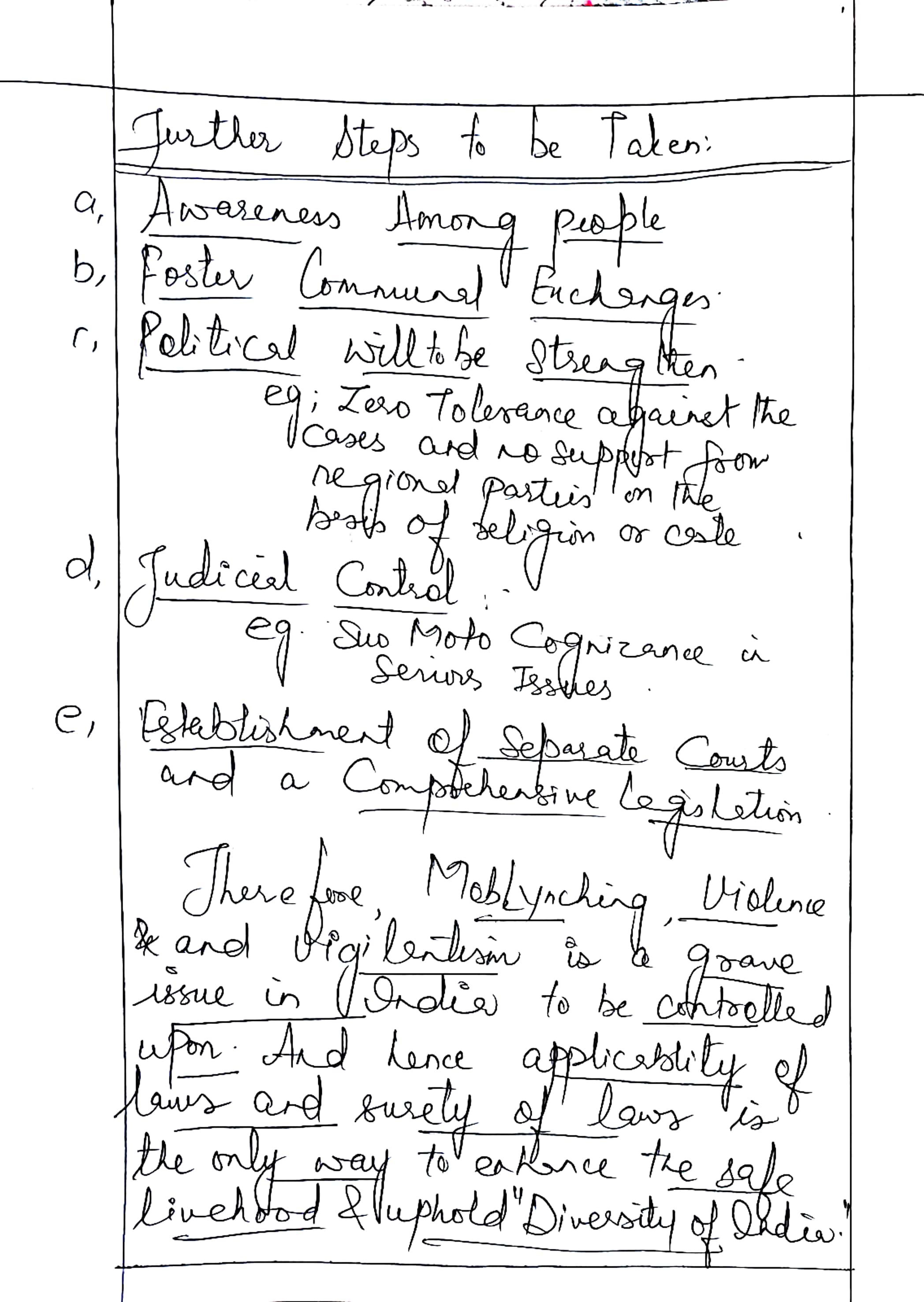 - Conclusion: Conclude, reiterating the importance of the rule of law in India, emphasizing the Supreme Court’s call to curb lynching and mob violence and uphold democratic values.