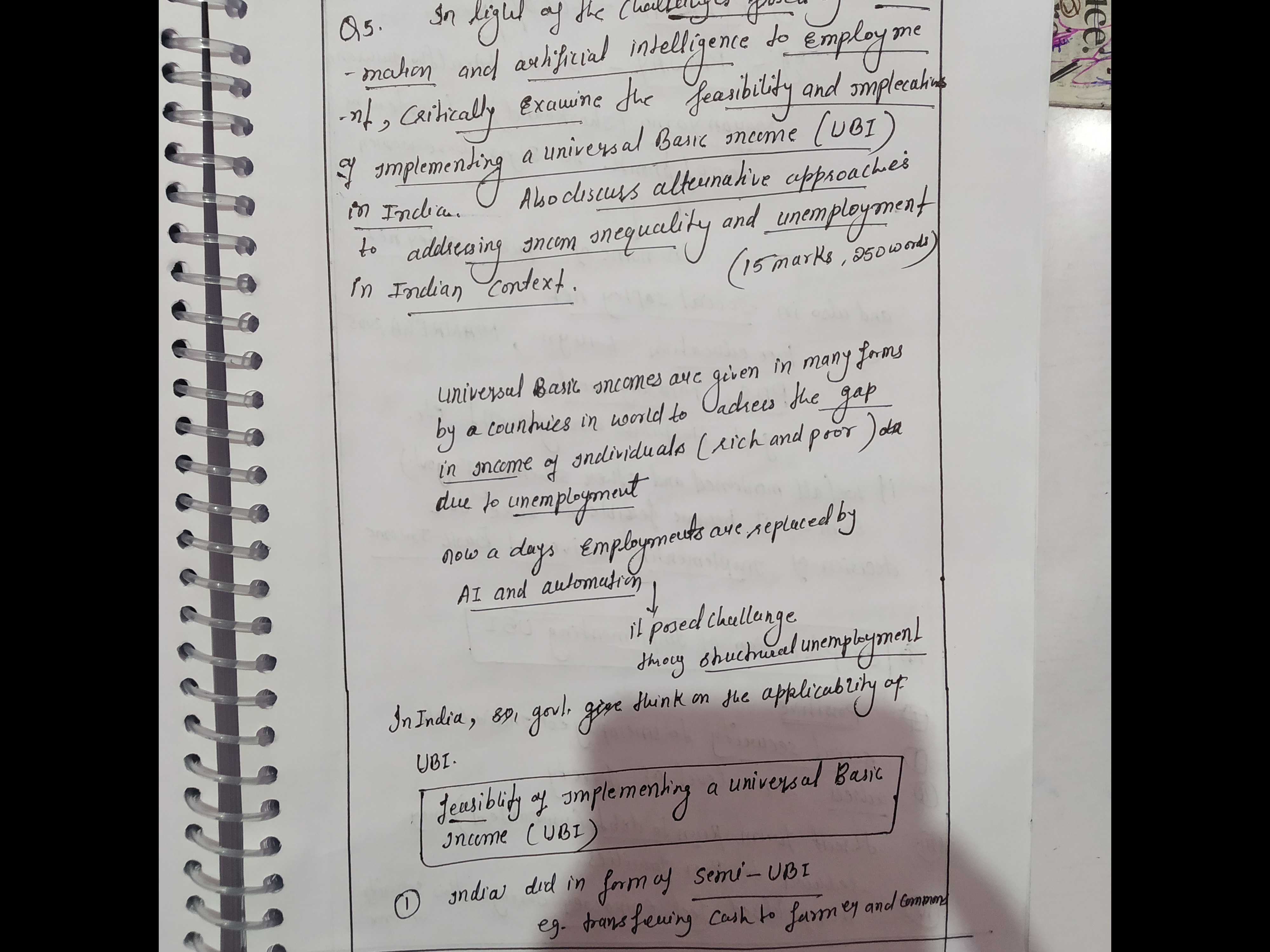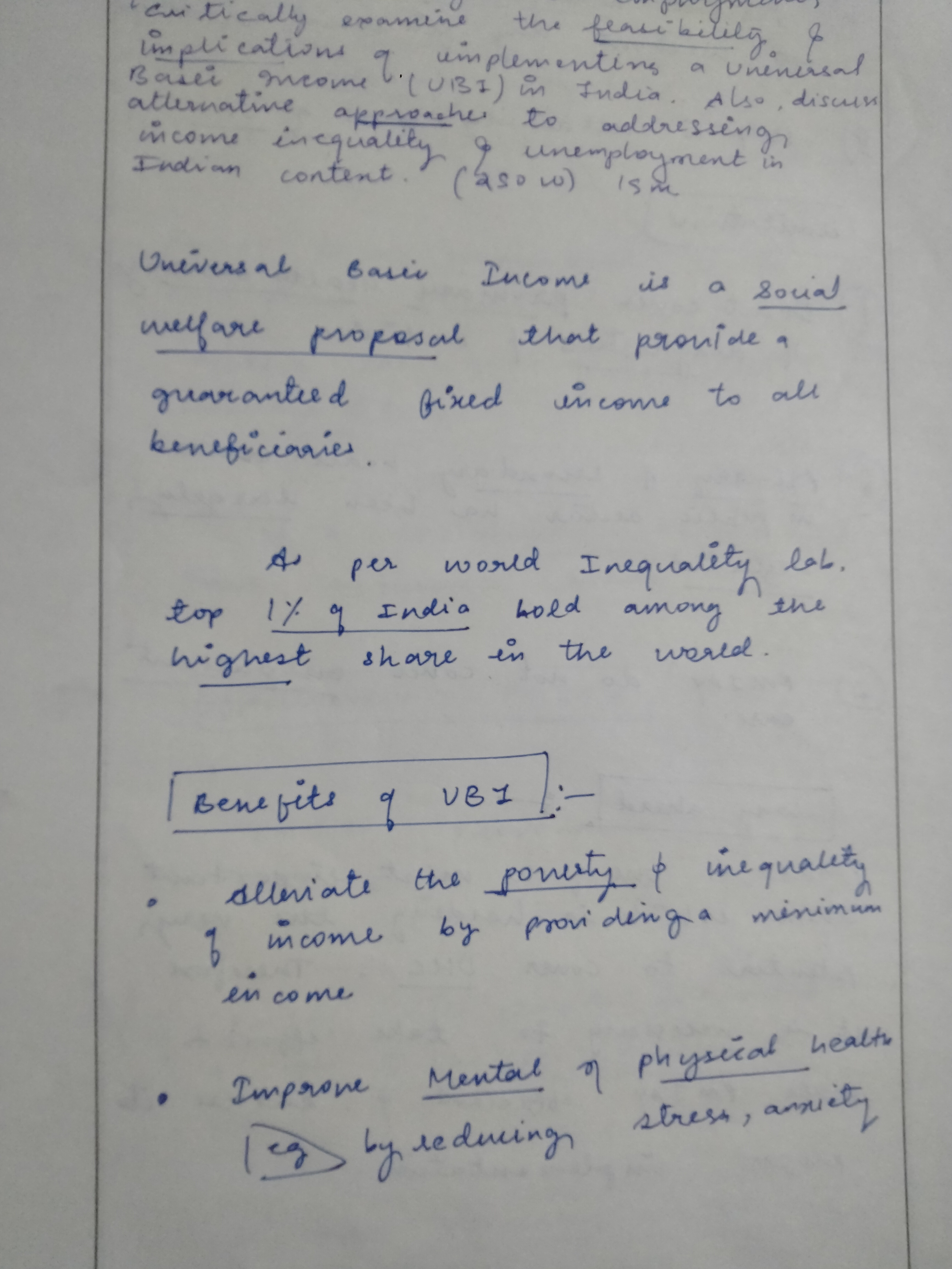 - Examine the implications of implementing a Universal Basic Income (UBI) in India.