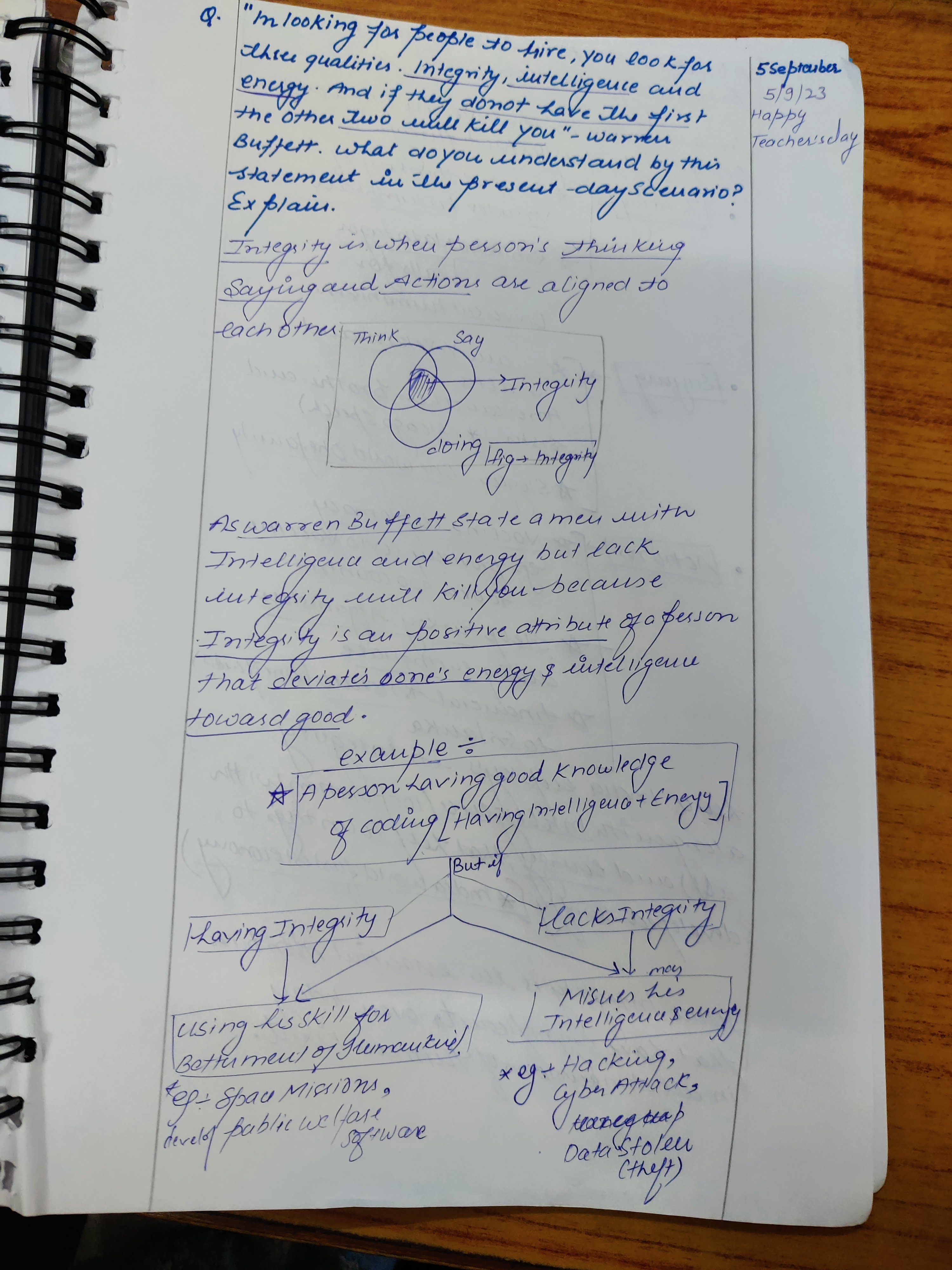 Warren Buffett’s statement emphasizes the critical importance of integrity in individuals, especially in a professional context. In the present-day scenario, where the world is increasingly complex and interconnected, and businesses are under increasing scrutiny for their actions, integrity has become more crucial than ever before.