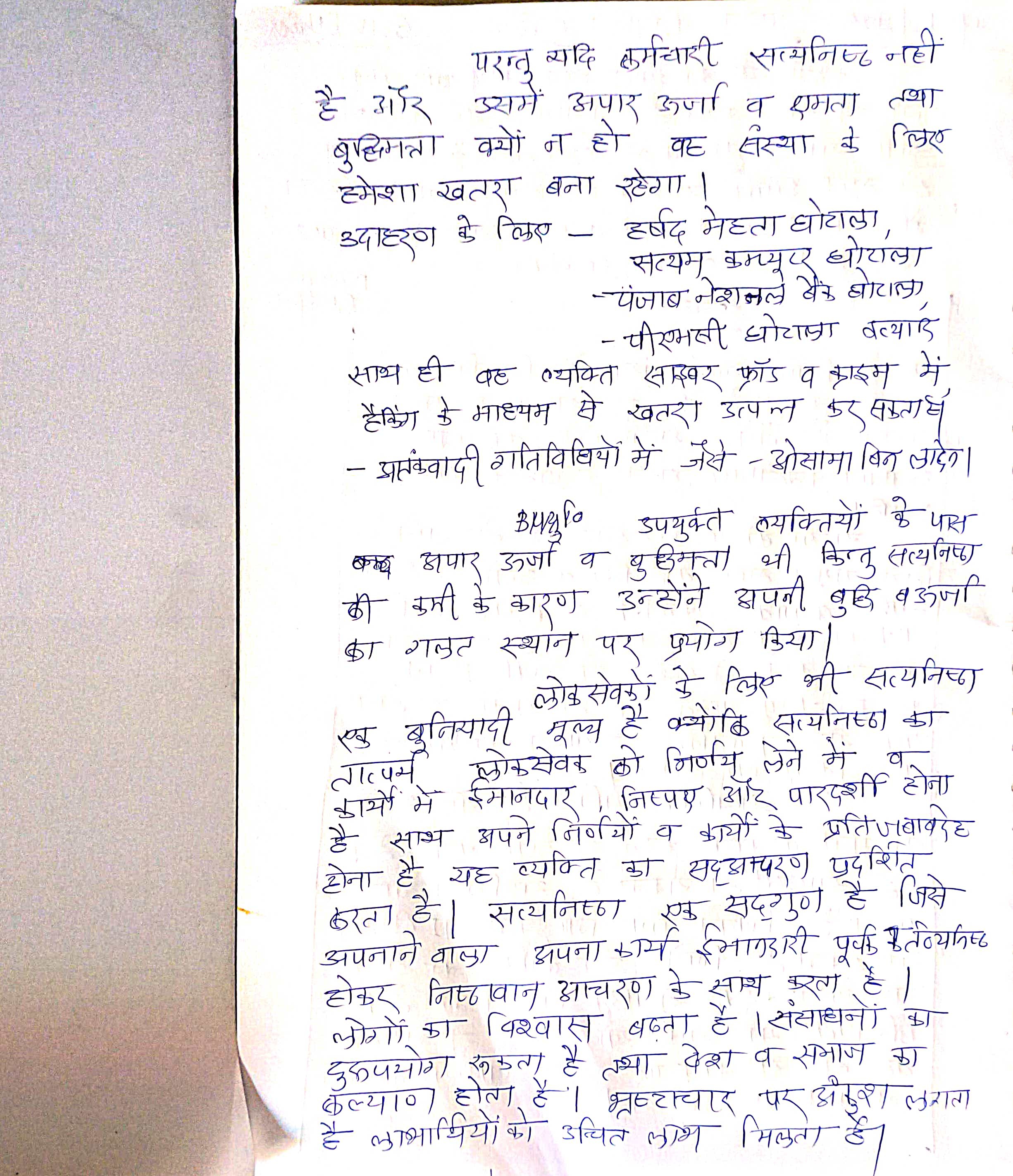 उपर्युक्त विश्लेषण से यह निष्कर्ष निकलता है कि व्यक्तियों, विशेष रूप से प्राधिकारी पदों पर बैठे लोगों को, जिम्मेदार और टिकाऊ तरीके से सफलता प्राप्त करने के लिए सत्यनिष्ठा और नैतिक व्यवहार के उच्चतम मानकों को बनाए रखने का प्रयास करना चाहिए।