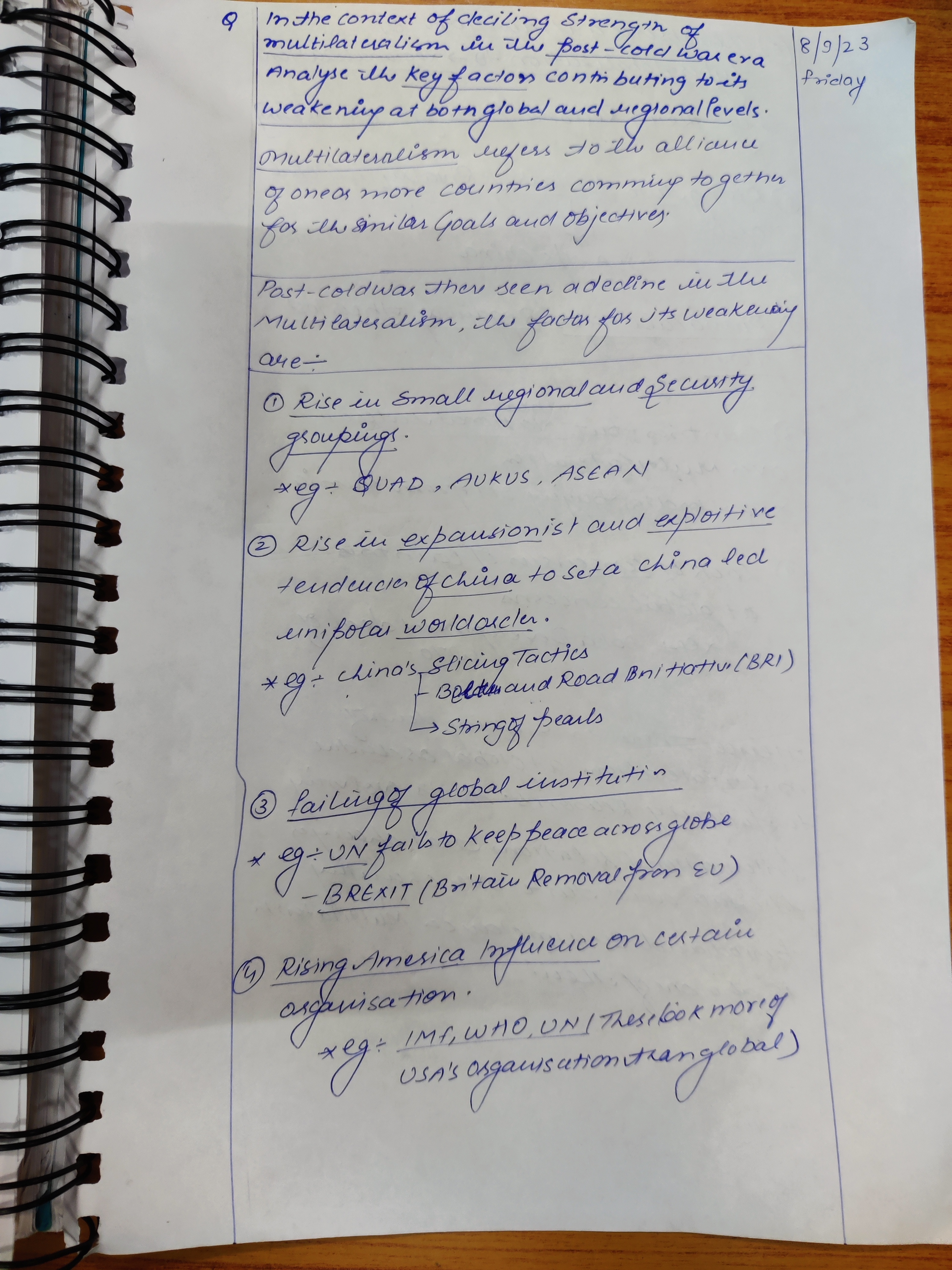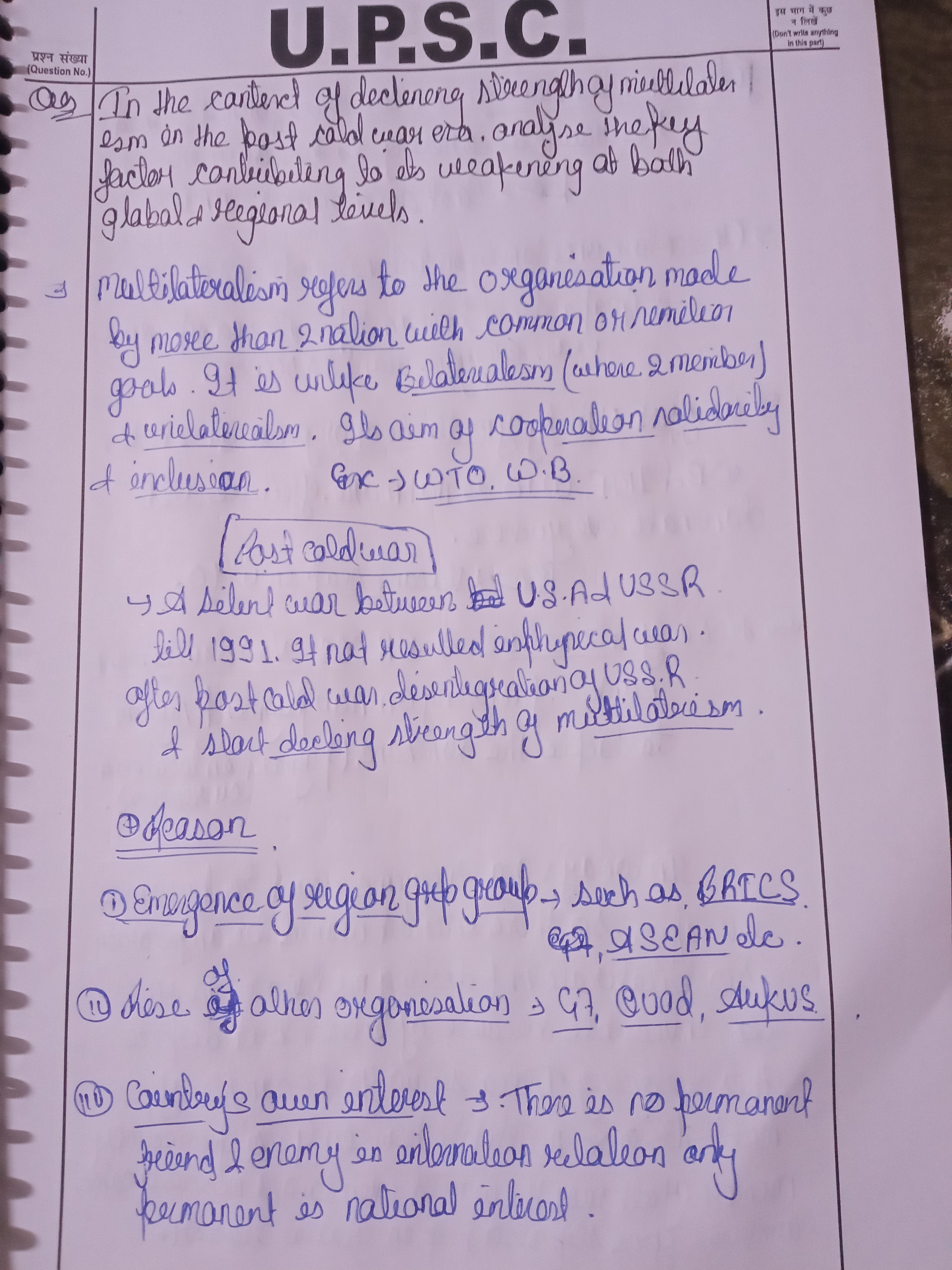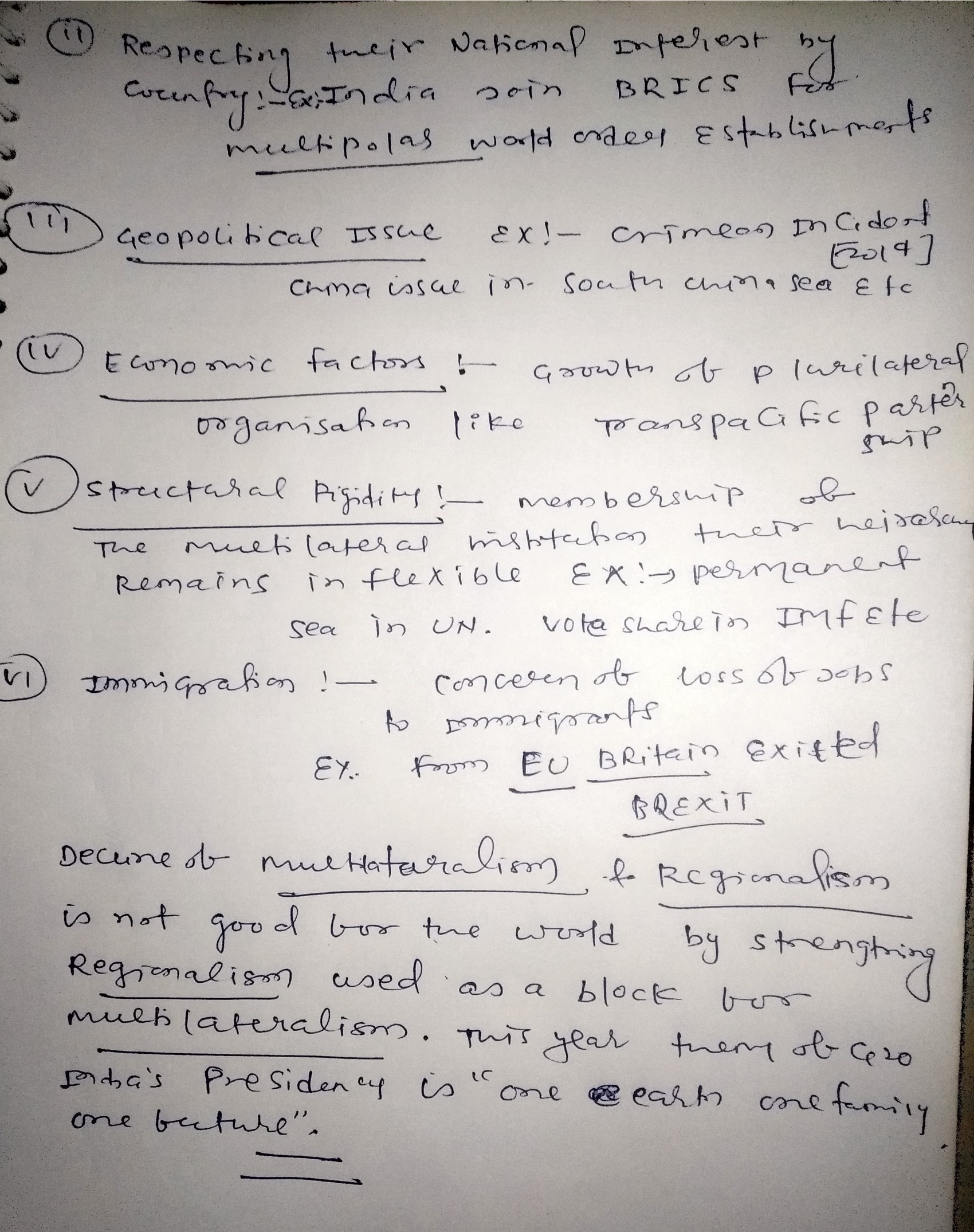 - Also, list down the factors contributing to the decline of multilateralism at the regional level.