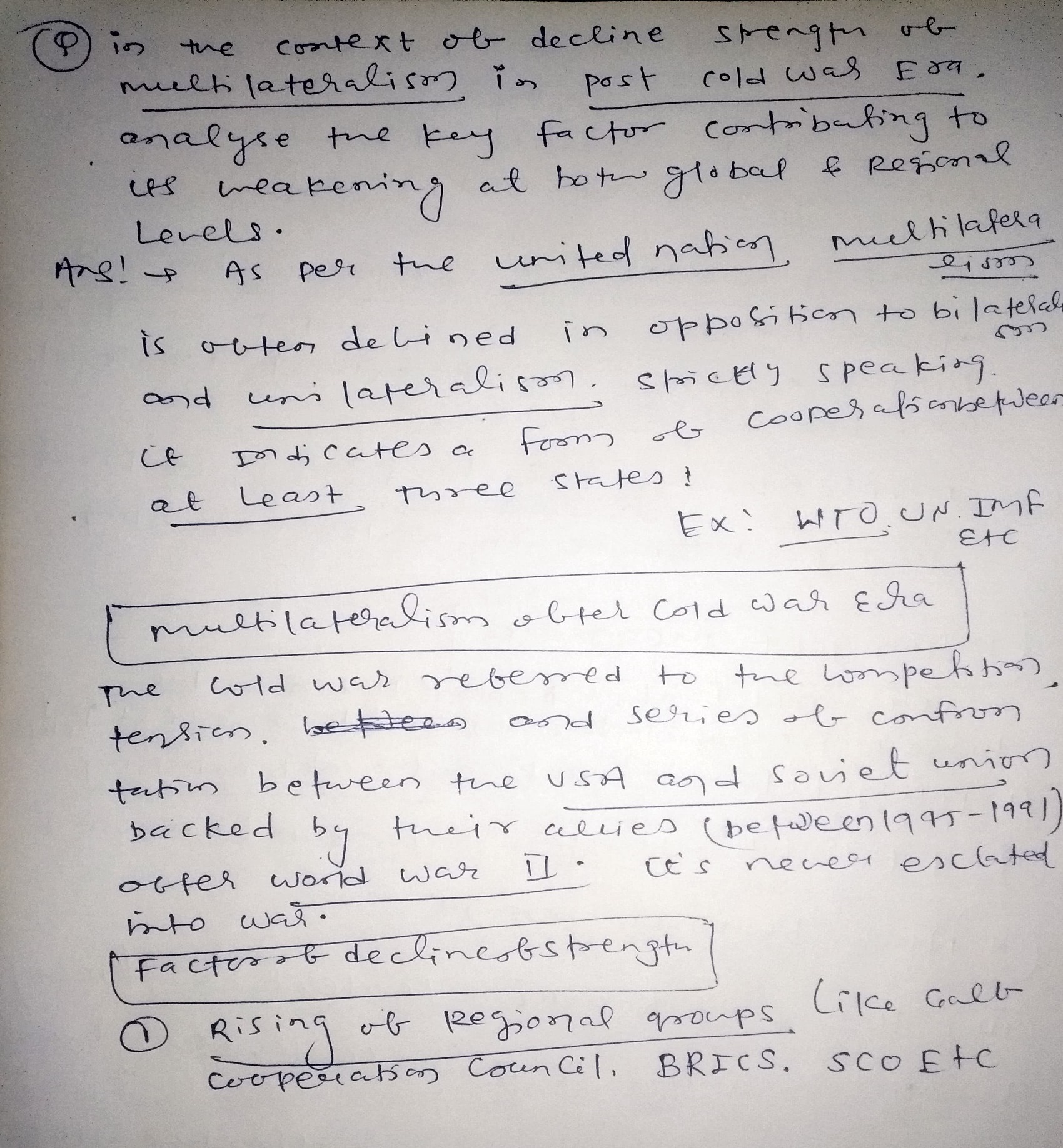 - Discuss the factors contributing to the decline of multilateralism at the global level.