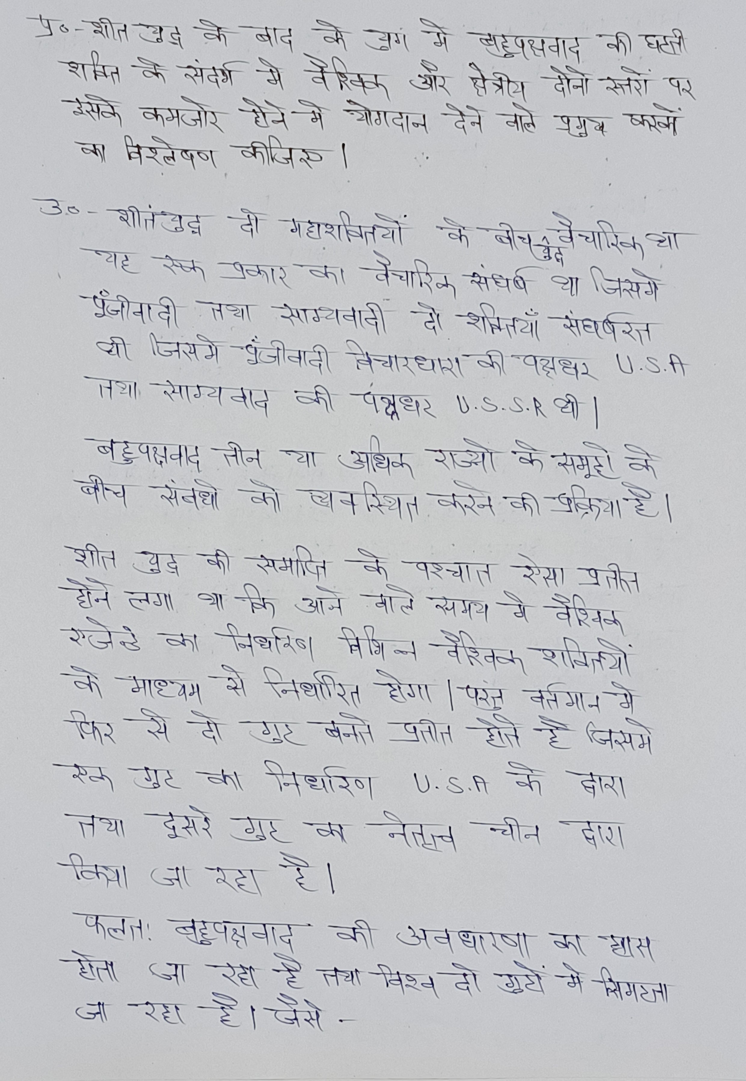 शीत युद्ध के बाद के युग में बहुपक्षवाद की गिरावट को वैश्विक शक्ति गतिशीलता, क्षेत्रीय तनाव, राष्ट्रवाद के पुनरुत्थान और अंतरराष्ट्रीय संस्थानों में घटते विश्वास के मिश्रण के लिए जिम्मेदार ठहराया जा सकता है। जबकि दुनिया एक ऐसे मोड़ पर खड़ी है, जहां बहुपक्षवाद को पुनर्जीवित और पुनर्गठित करने की अनिवार्य आवश्यकता है। यह न केवल शांति और समृद्धि के लिए महत्वपूर्ण है, बल्कि जलवायु परिवर्तन और महामारी जैसी वैश्विक चुनौतियों से निपटने के लिए भी महत्वपूर्ण है, जिनसे एकल राष्ट्र अकेले नहीं निपट सकते।