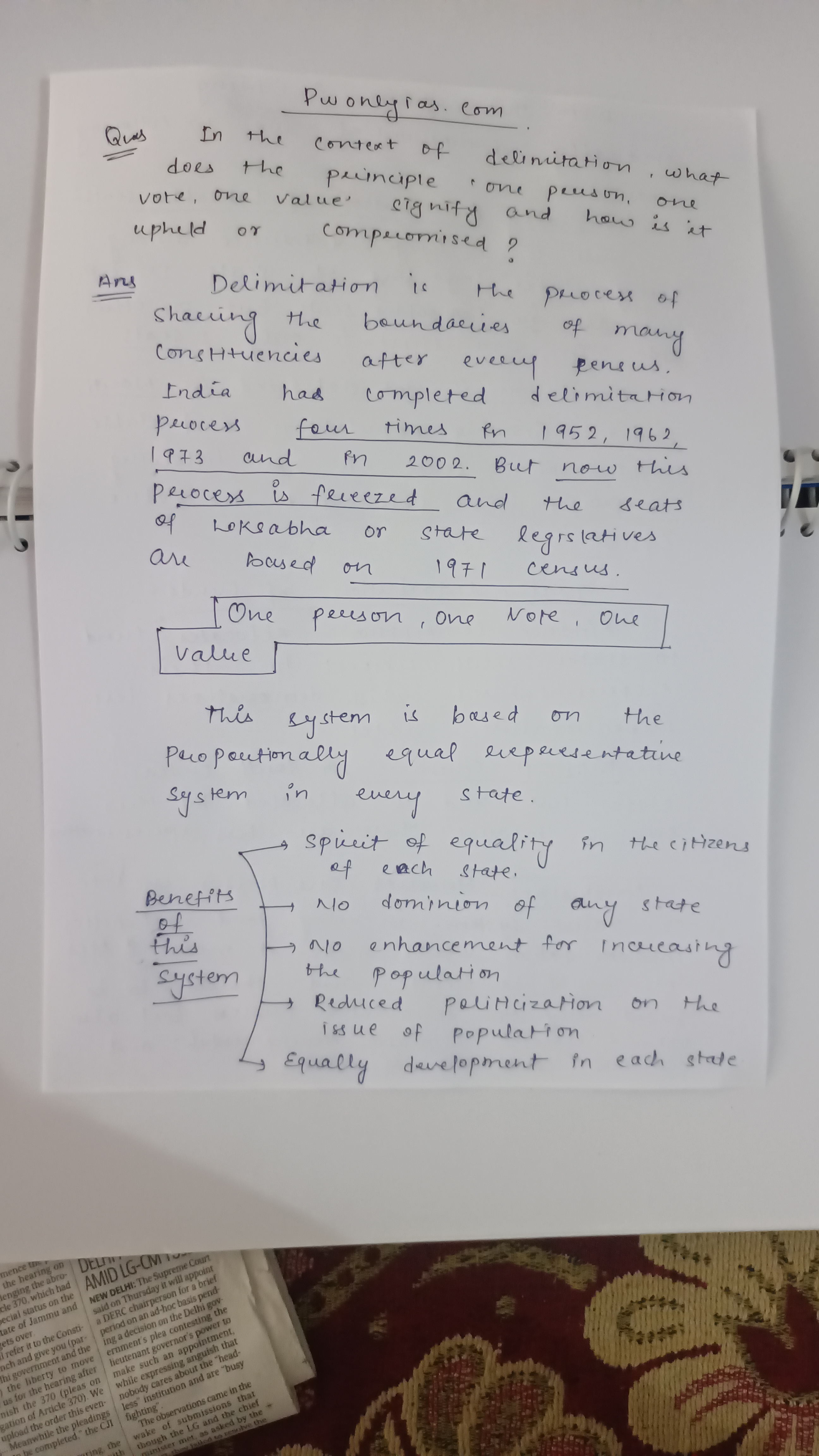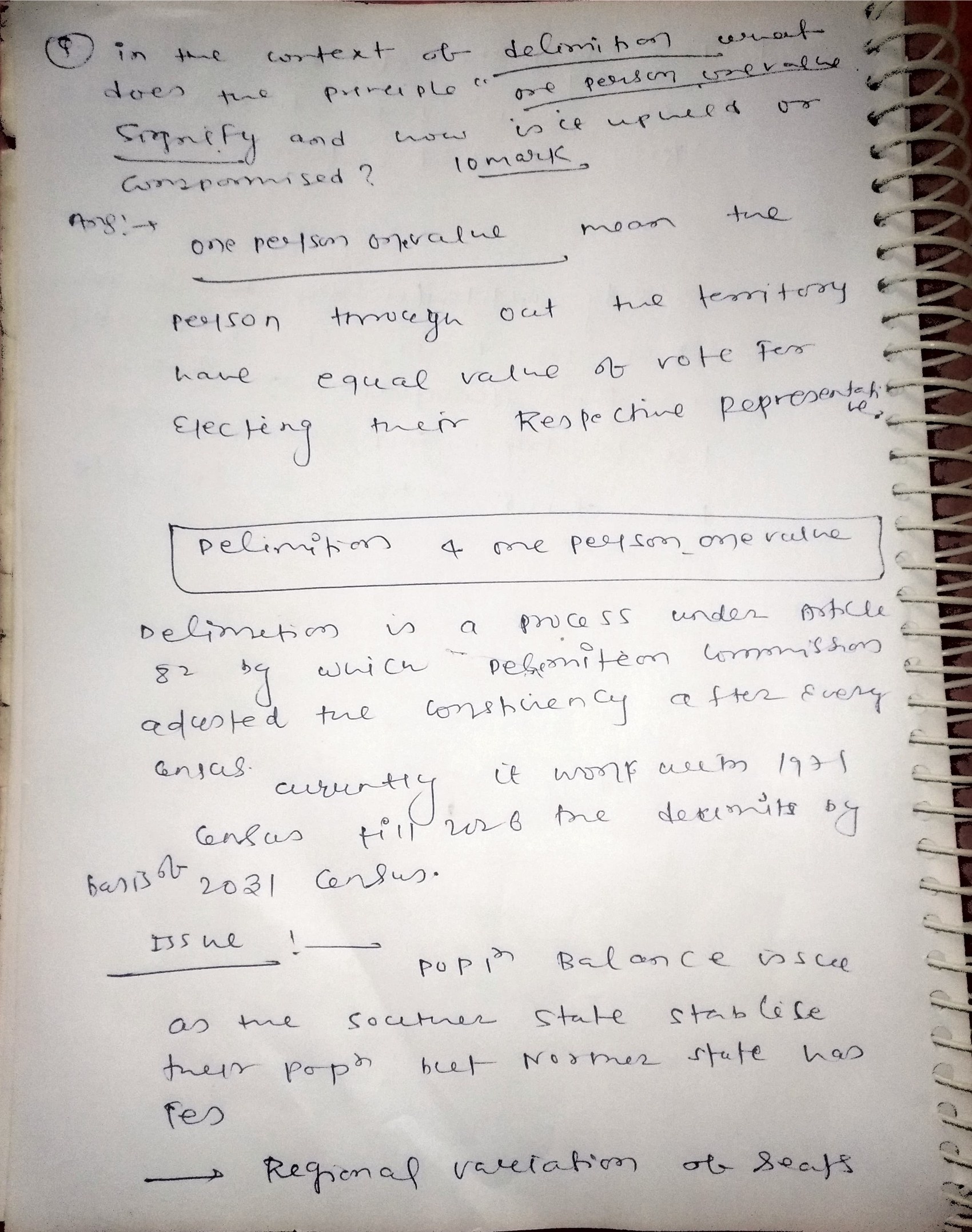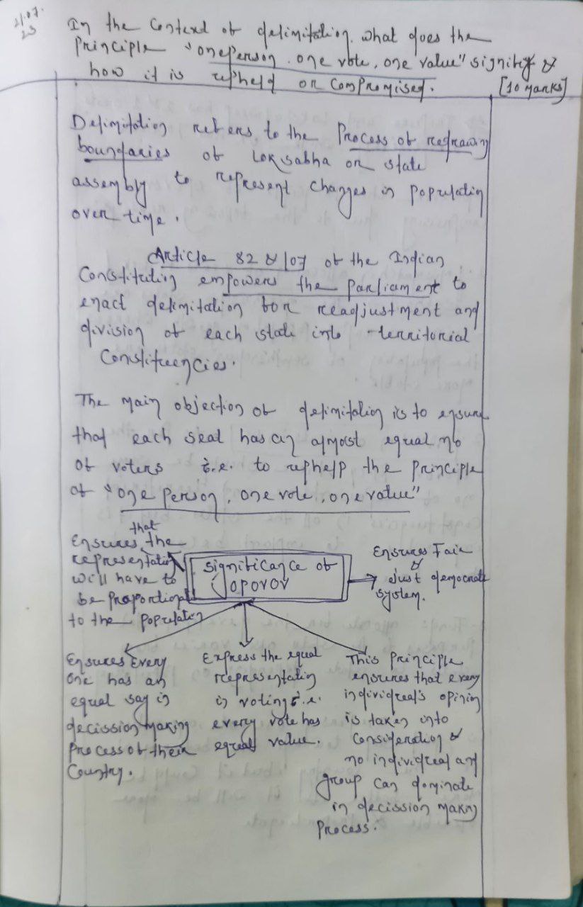 The principle of ‘One Person, One Vote, One Value’ is integral to ensuring democratic justice and equality in India. While the process of delimitation seeks to uphold this principle, certain constitutional provisions and historical decisions have posed challenges. For a more equitable democracy, it’s imperative to periodically revisit and revise these frameworks in alignment with contemporary needs.