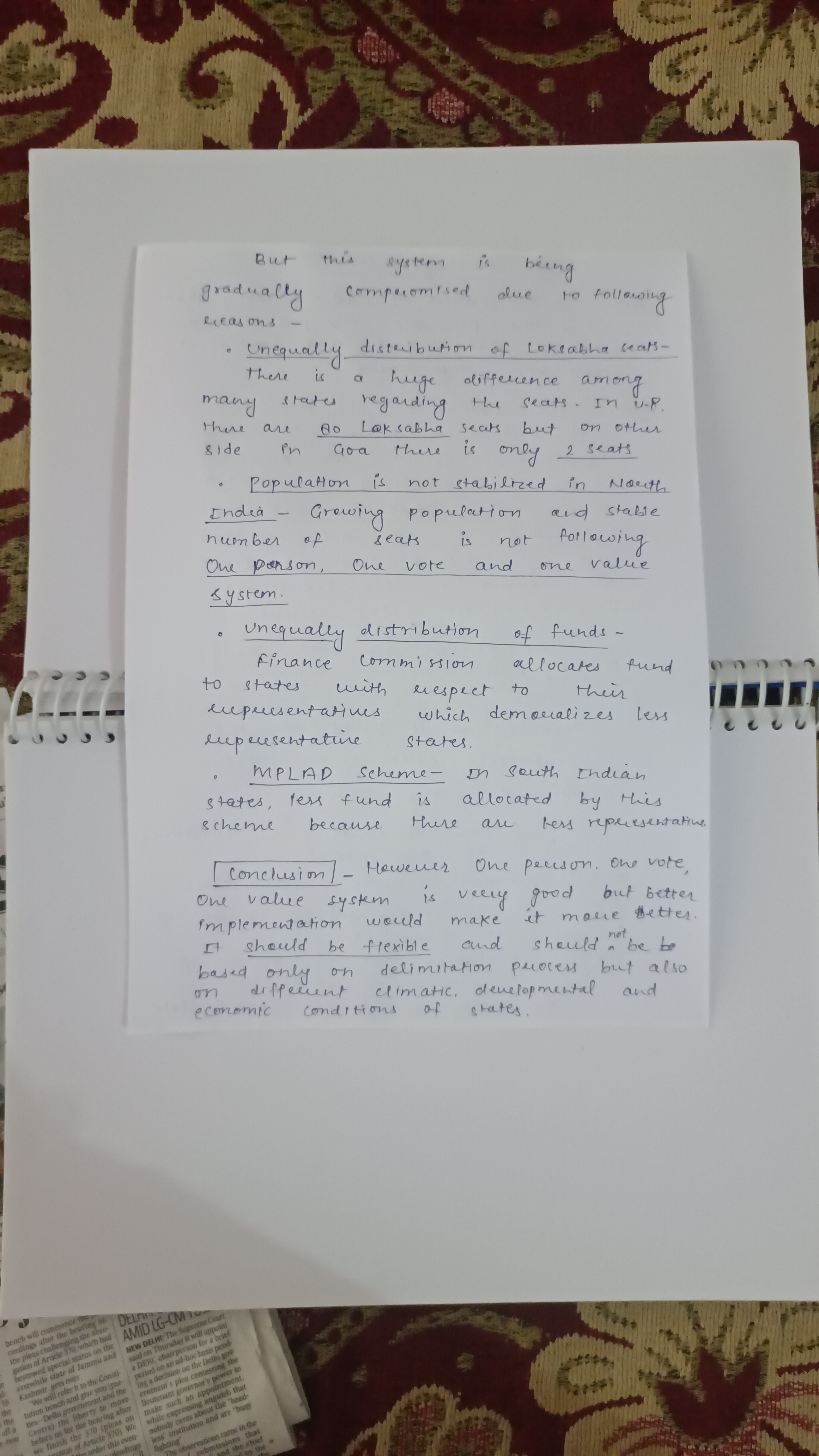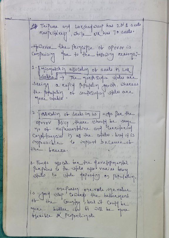- For example, An MP from Rajasthan ideally should represent a similar number of people as an MP from Punjab.