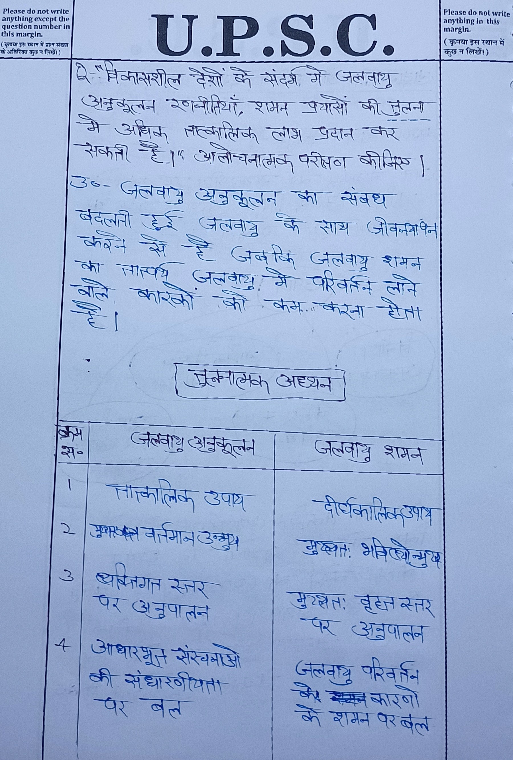 - विकासशील देशों के संदर्भ में शमन प्रयासों की तुलना में जलवायु अनुकूलन रणनीतियों द्वारा प्रदान किए जाने वाले तत्काल लाभों का परीक्षण कीजिए।
