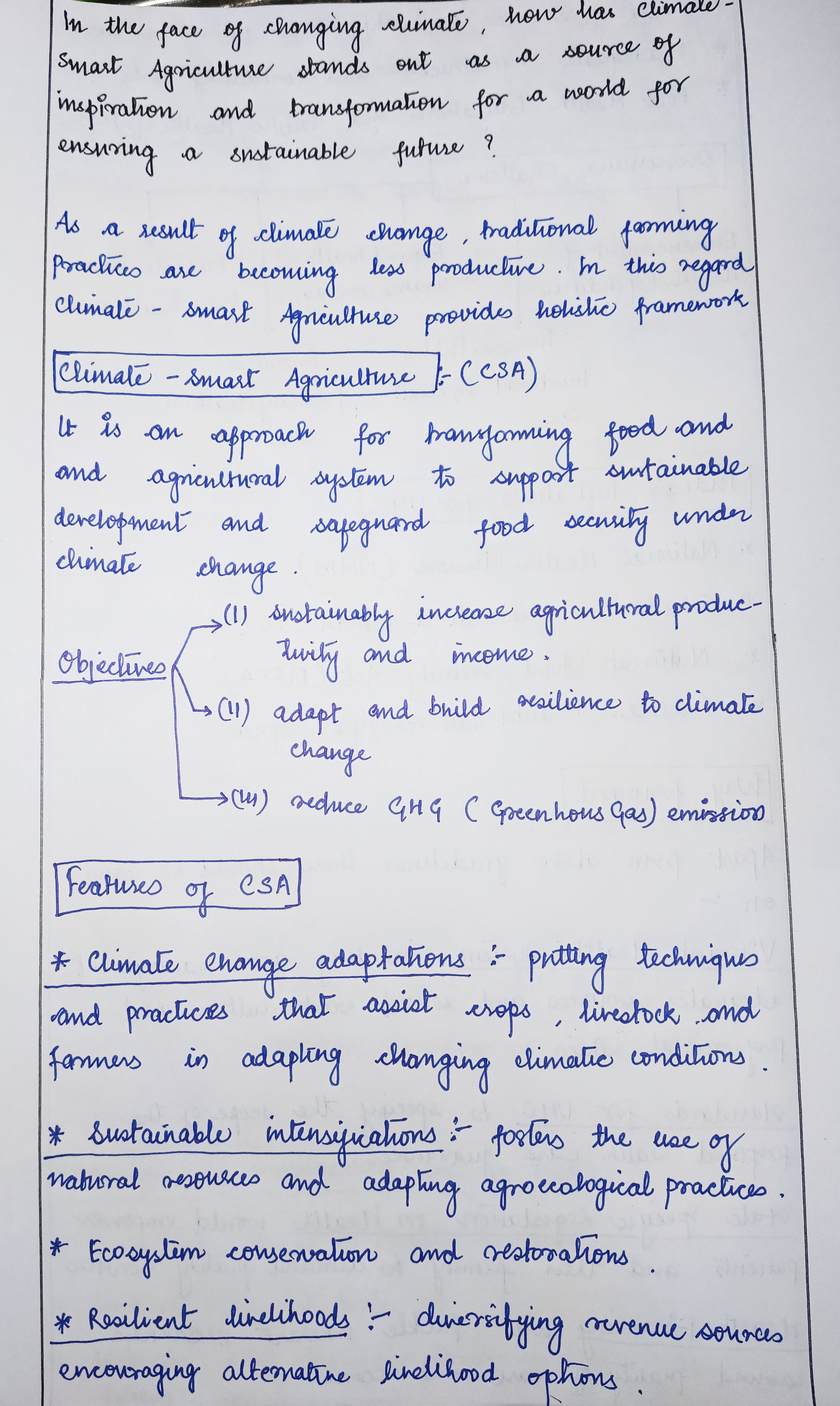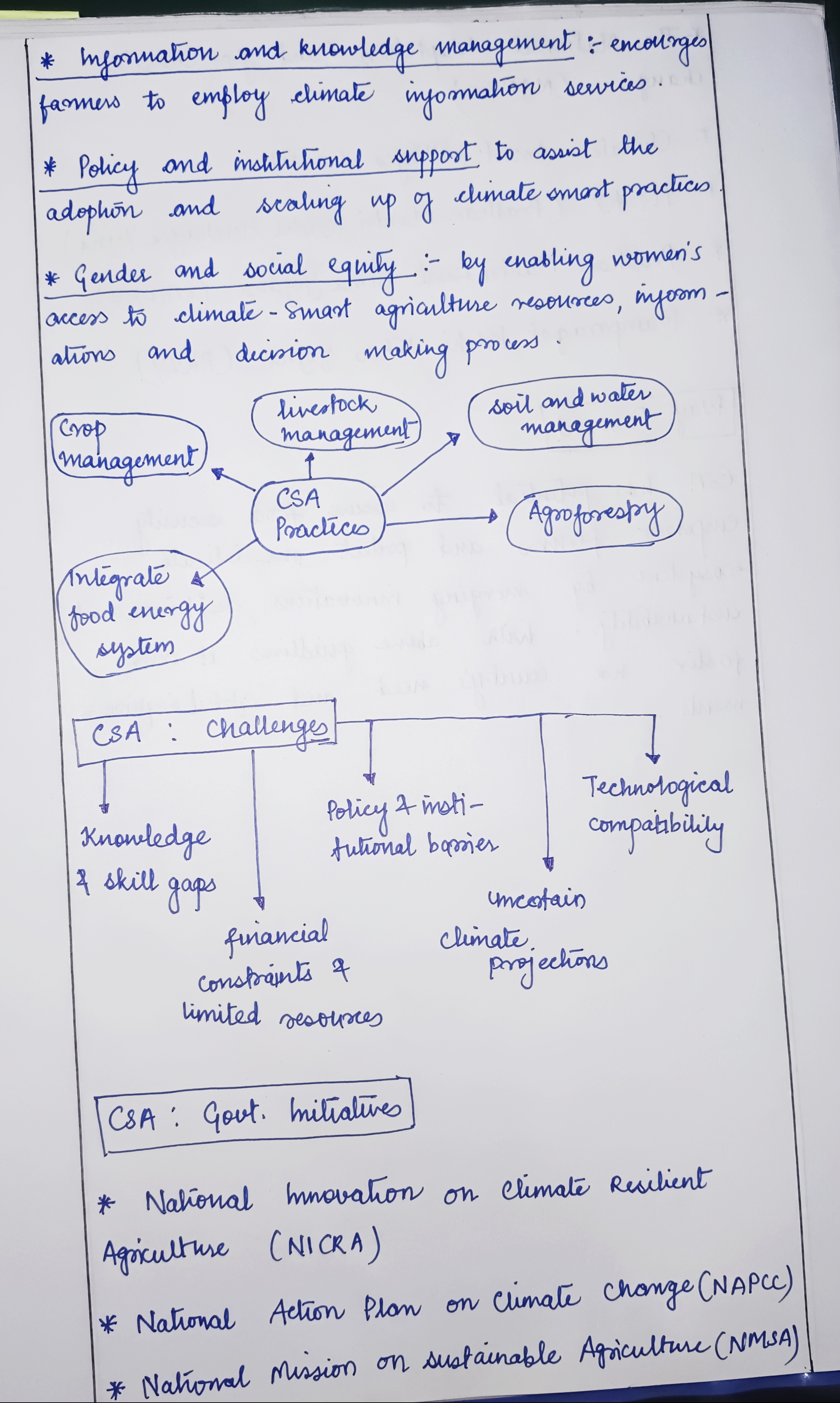 - Recent Initiatives: Global initiatives like the UN Food Systems Summit 2021 have emphasized the importance of CSA. Countries like India have launched national missions like the National Mission for Sustainable Agriculture (NMSA) to promote CSA practices.