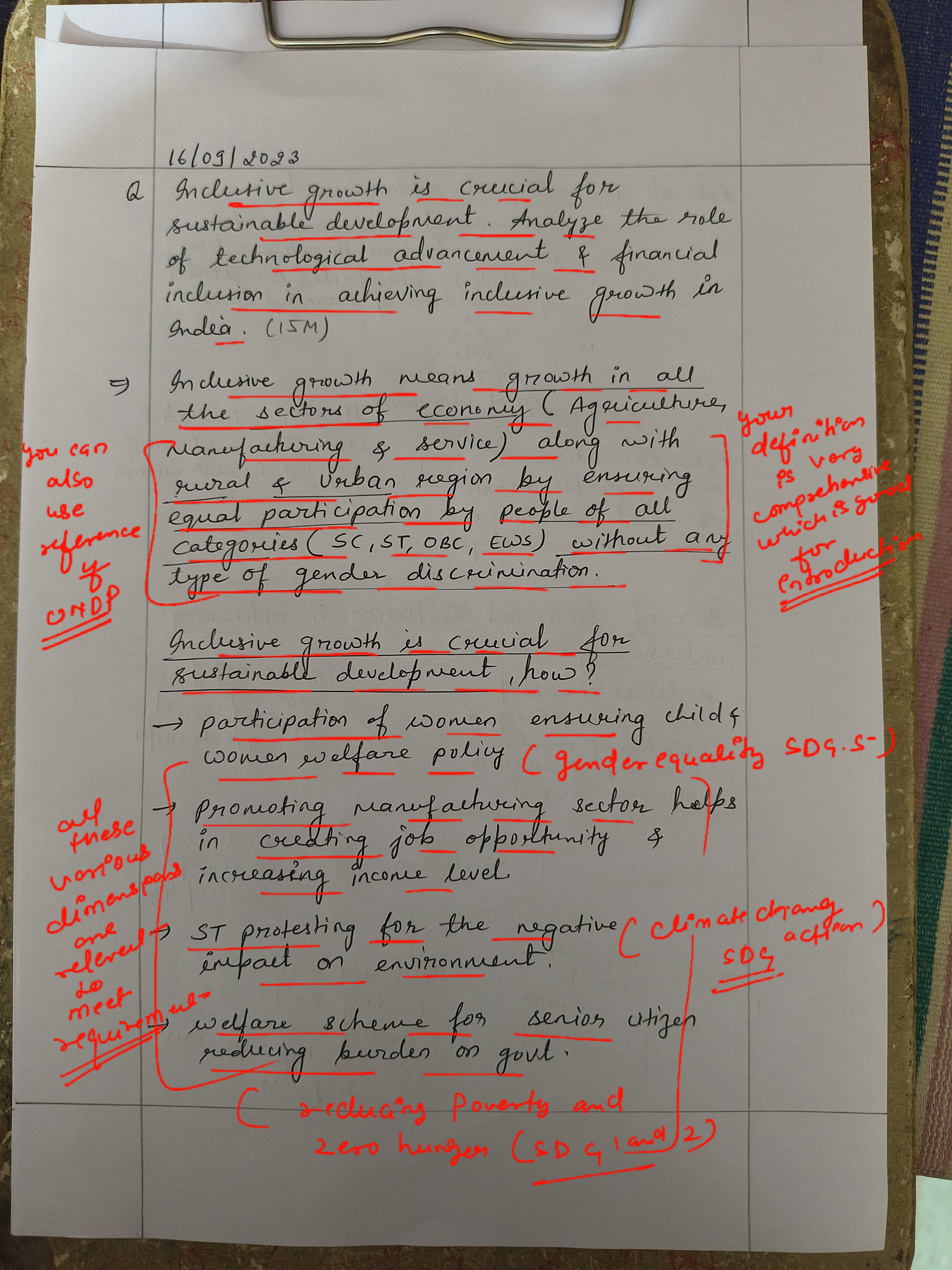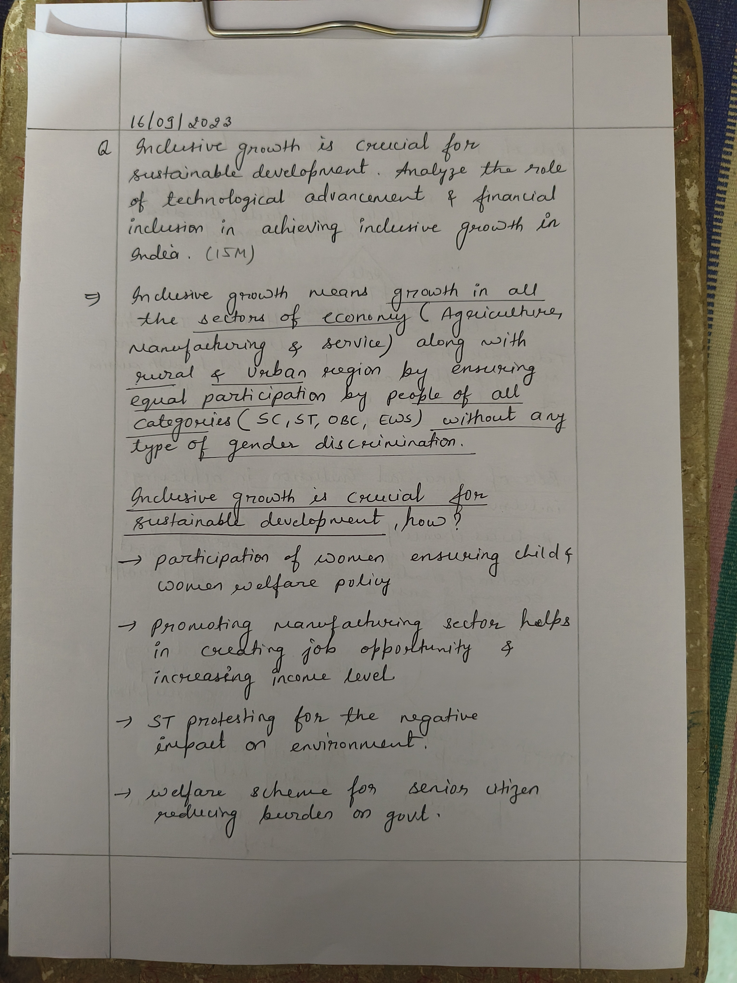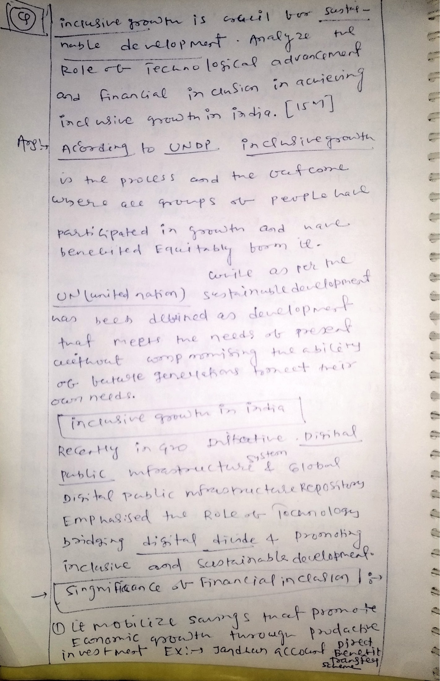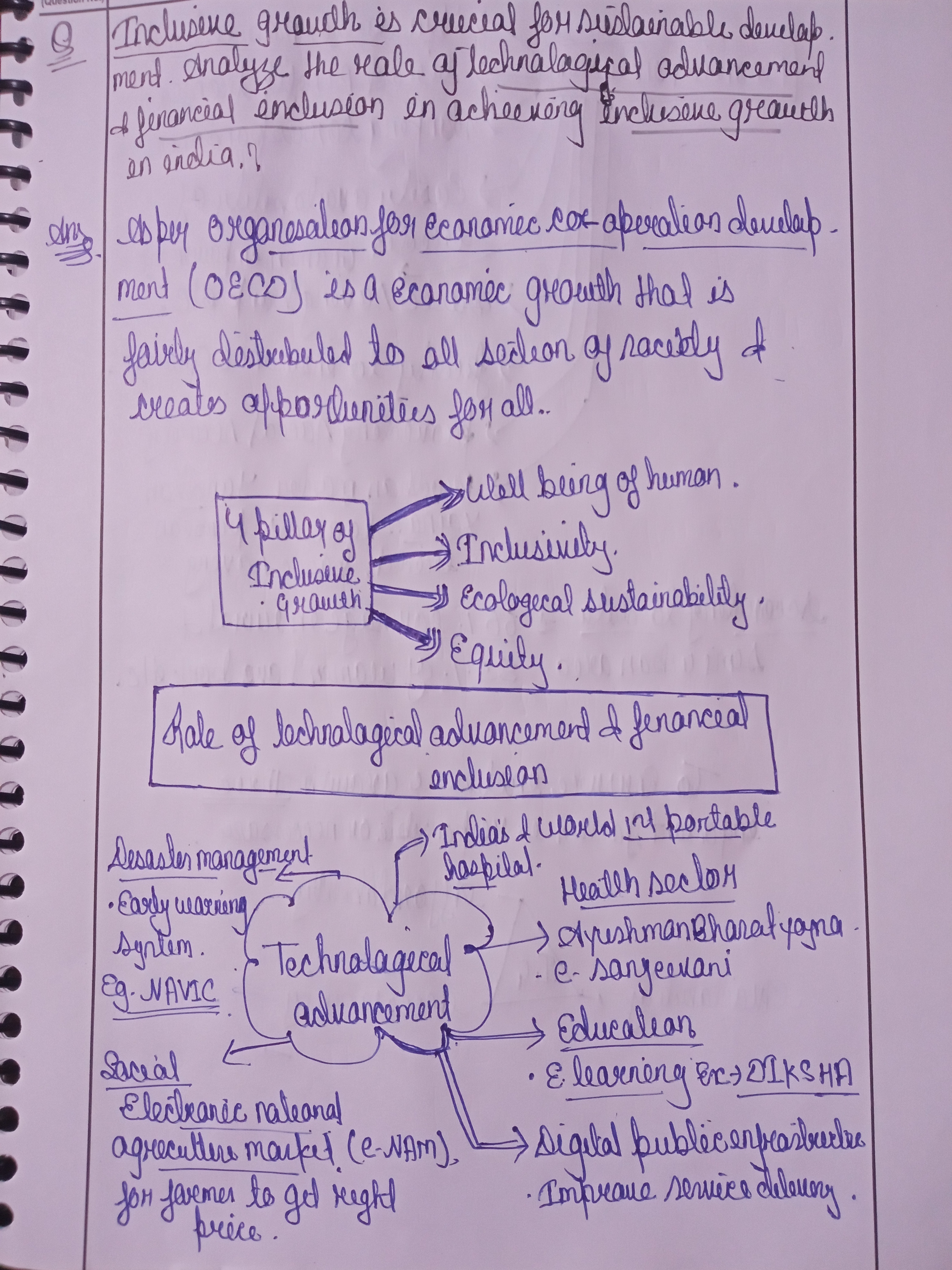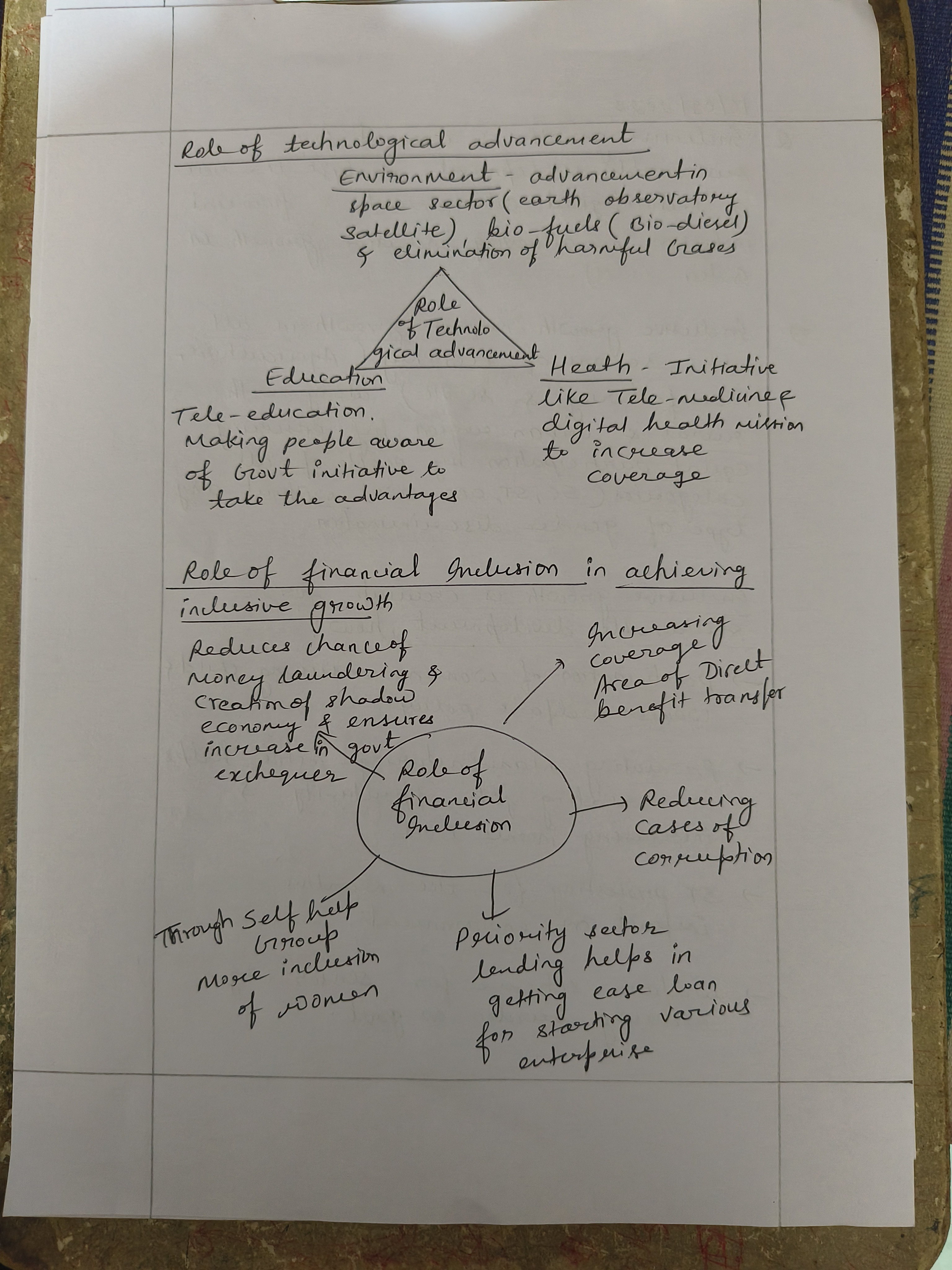 - Discuss the role of technological advancement in India’s journey toward inclusive growth.