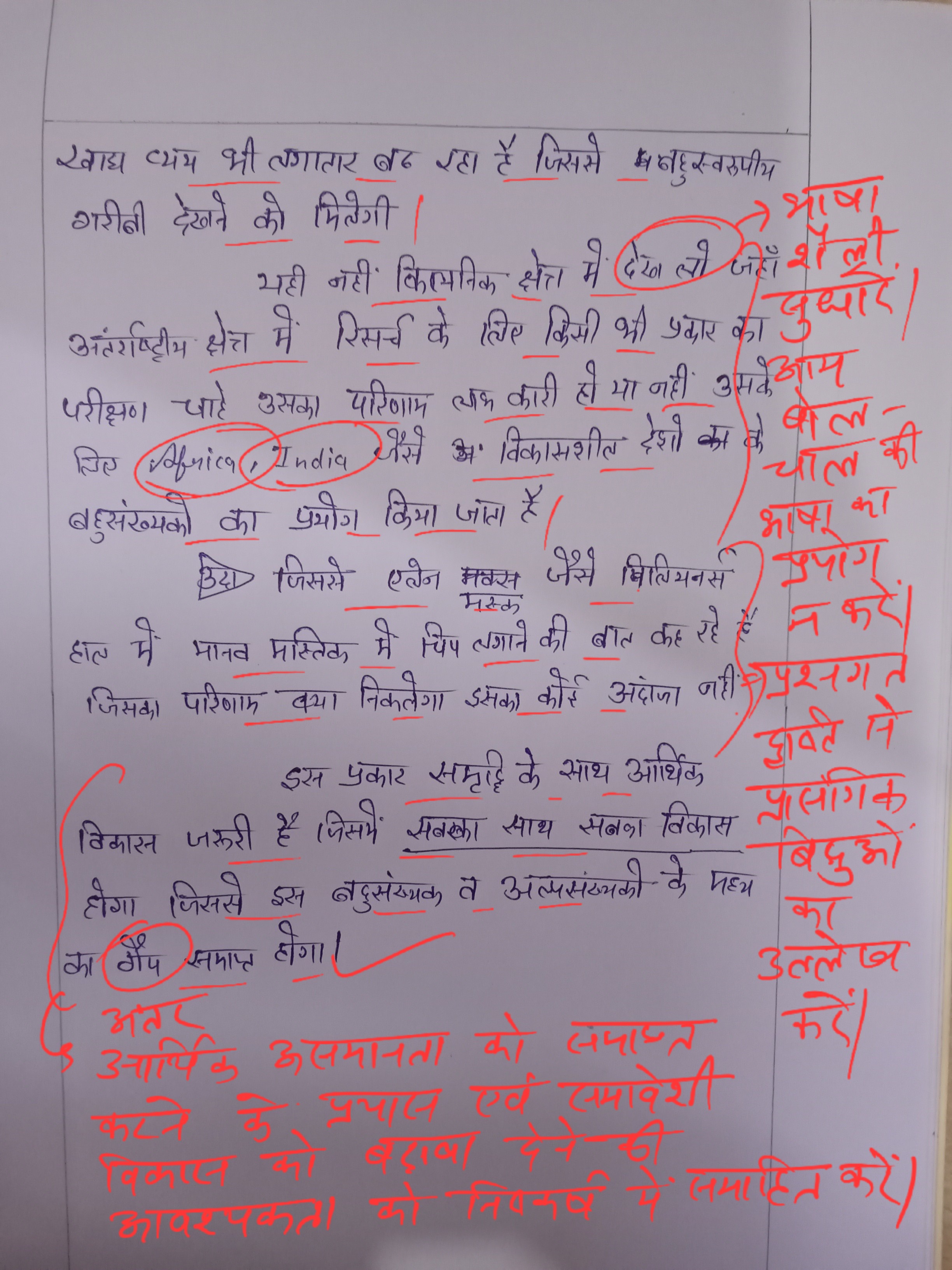 - बहुसंख्यकों की कीमत पर एक छोटे से अल्पसंख्यक वर्ग के लिए आधुनिकता और समृद्धि के उदाहरण लिखिए।
