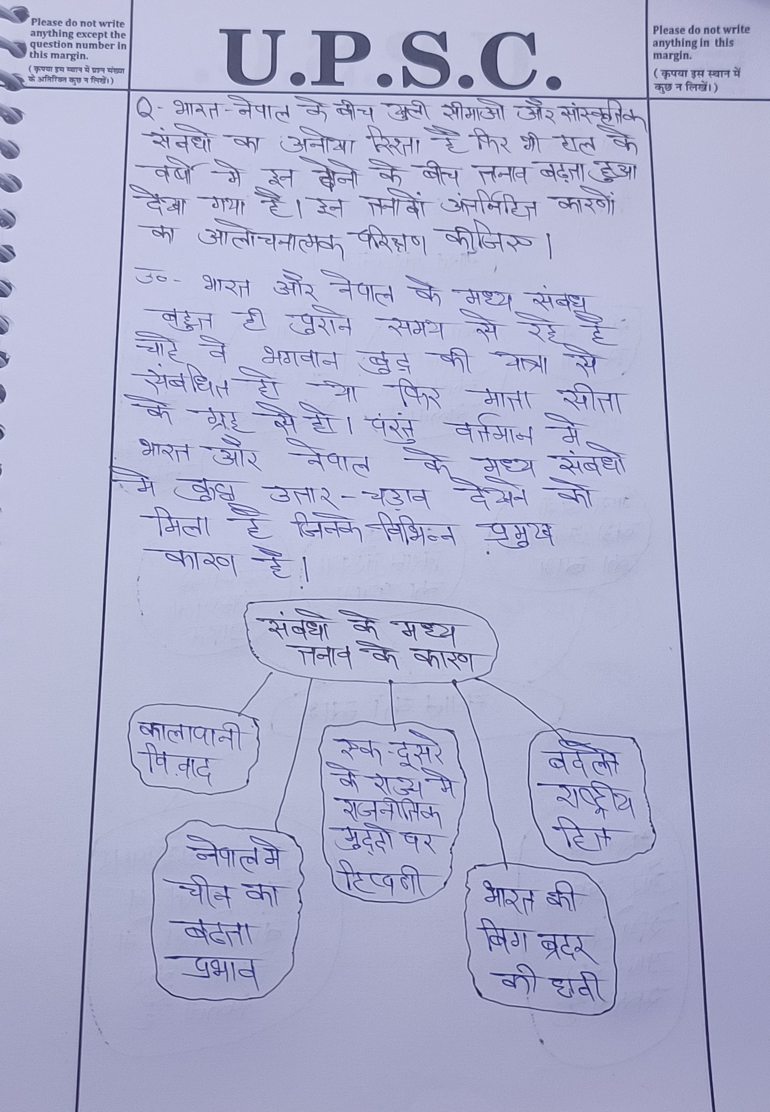 - खुली सीमाओं और सांस्कृतिक संबंधों की विशेषता वाले भारत और नेपाल के अनूठे संबंधों पर चर्चा करें।