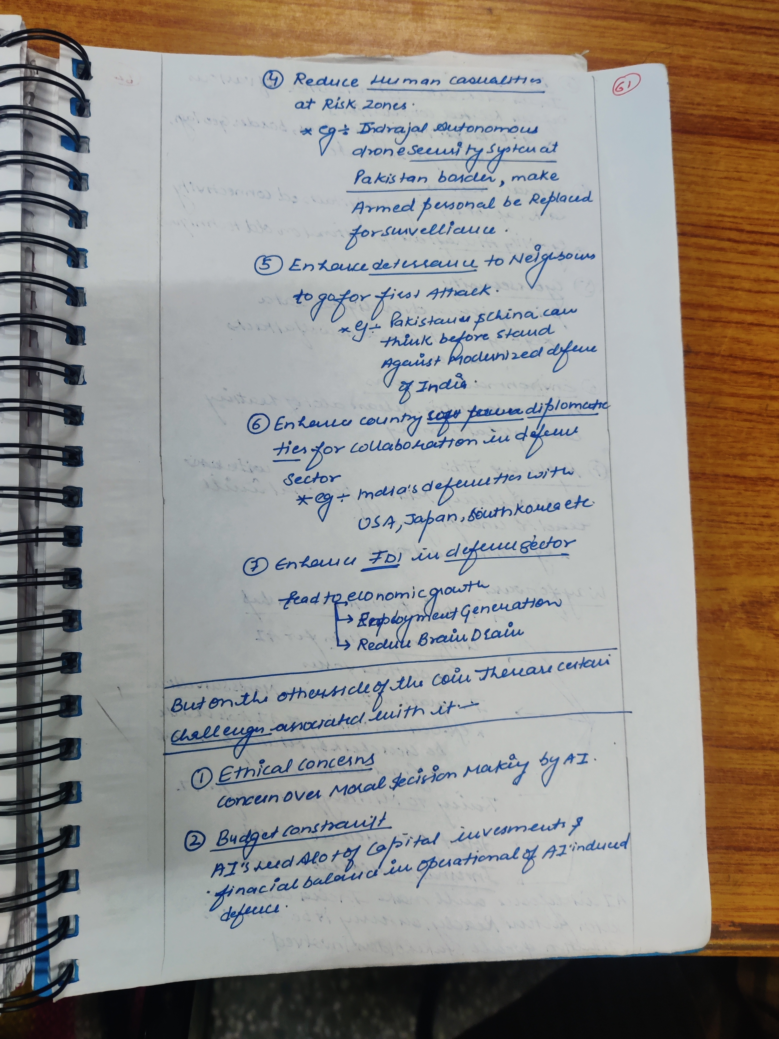 - Integration of AI in defence systems:: India has developed AI-based products like Indrajaal, an autonomous drone security system for enhancing border security and military operations.