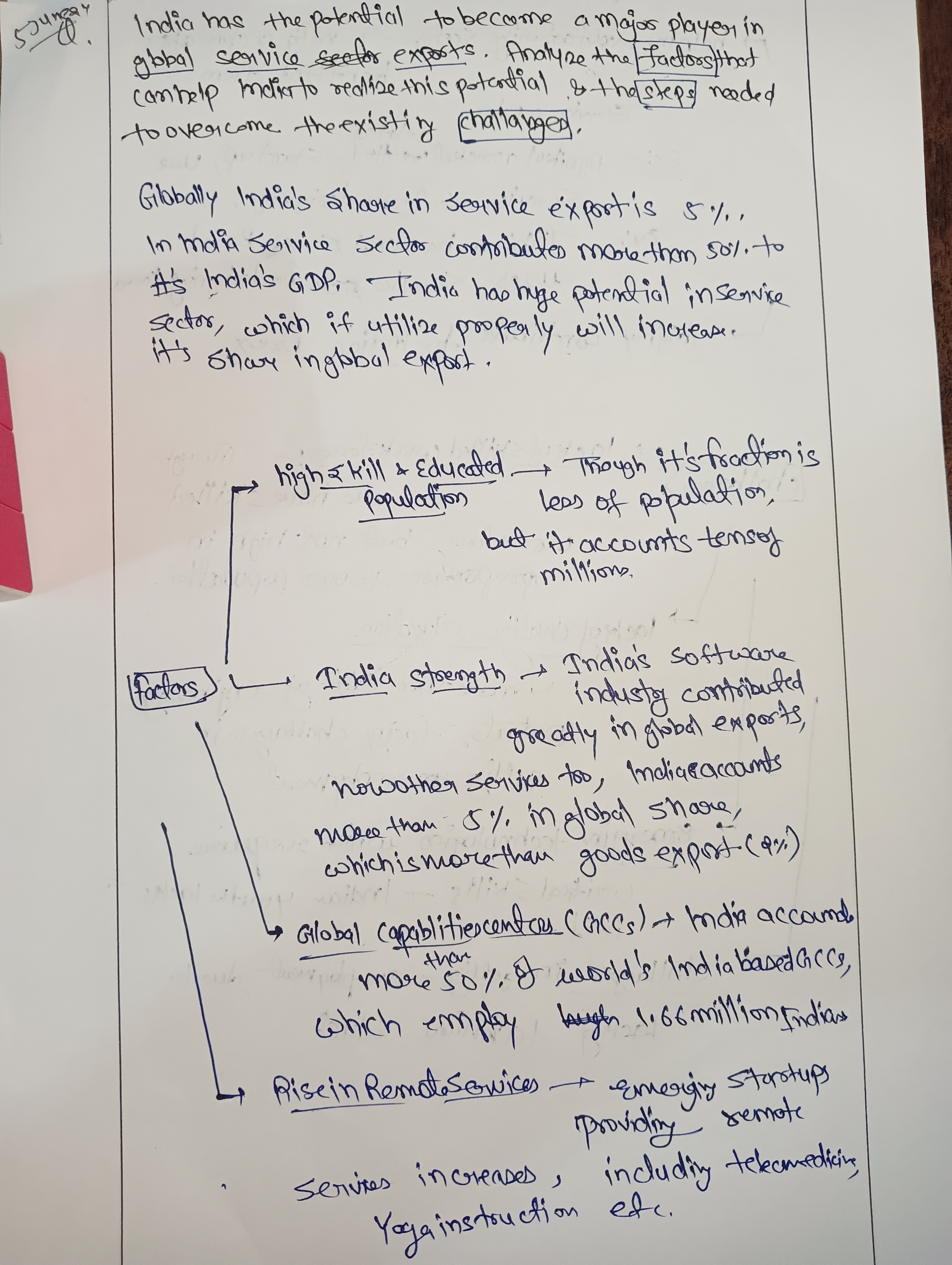 - Discuss how India has the potential to become a major player in global services exports.