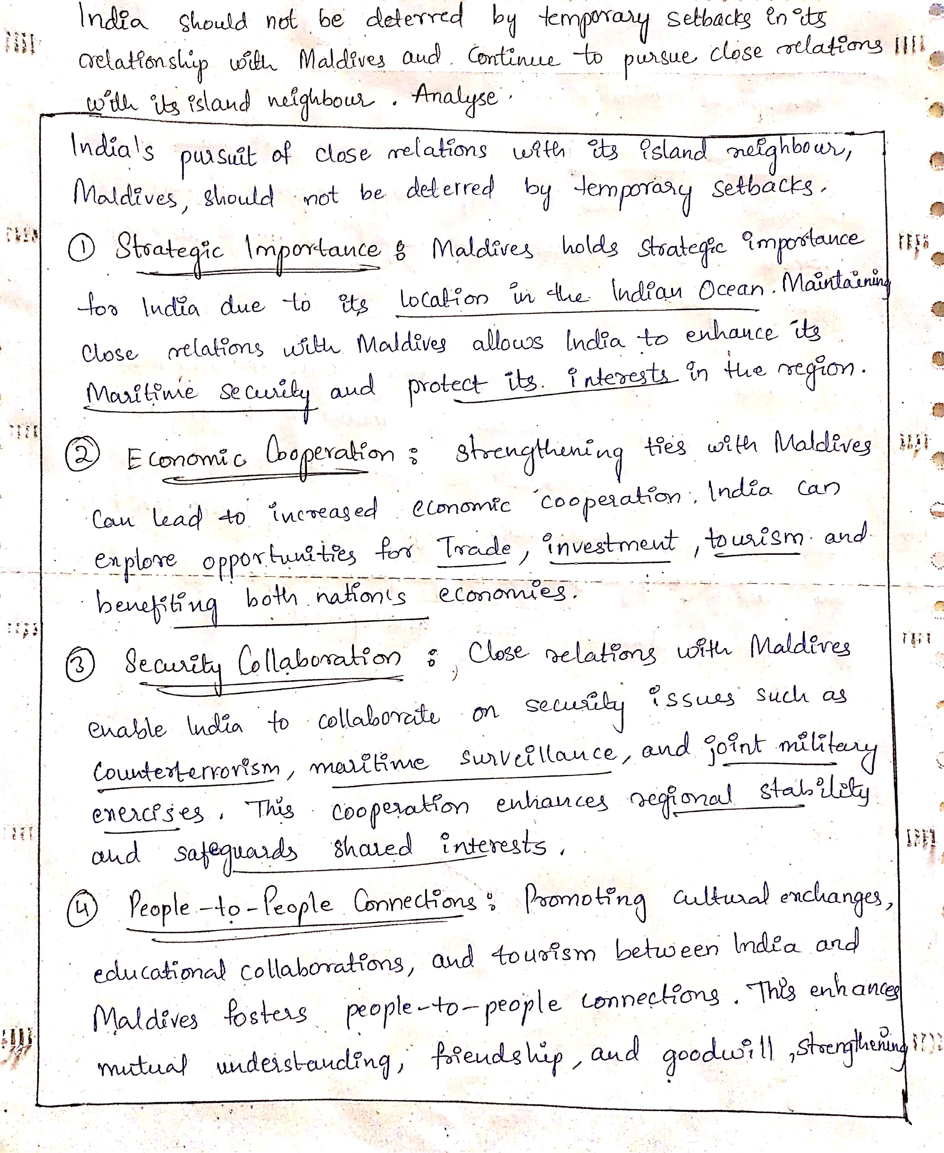 - Conclusion: Reinforce the need for India to maintain a balanced and diplomatically sensitive relationship with the Maldives, considering long-term regional stability and mutual interests.