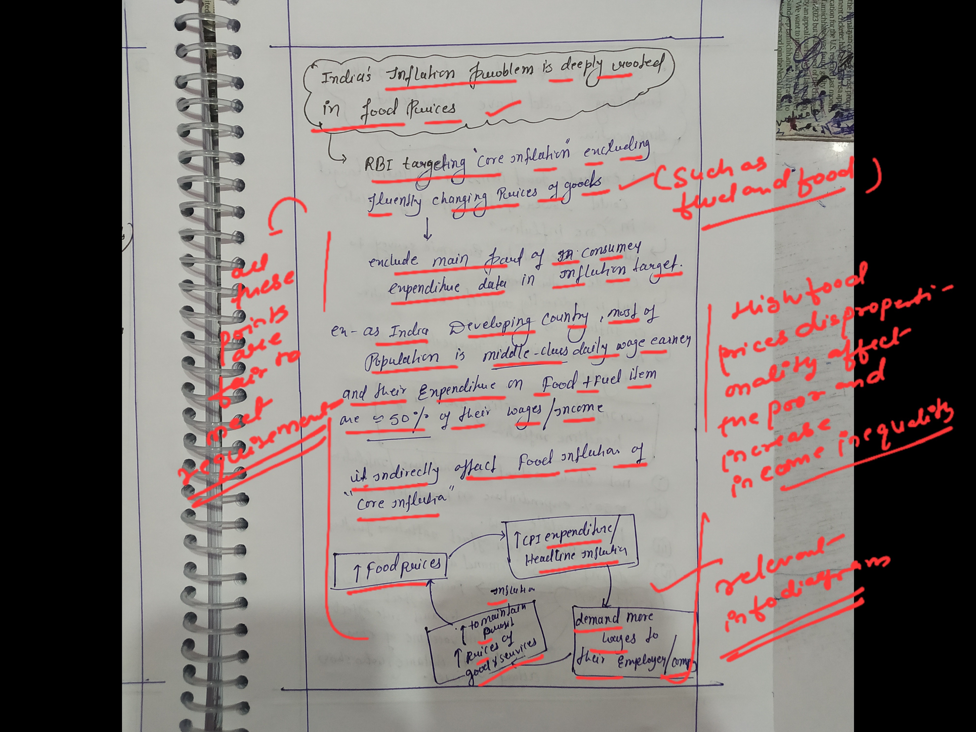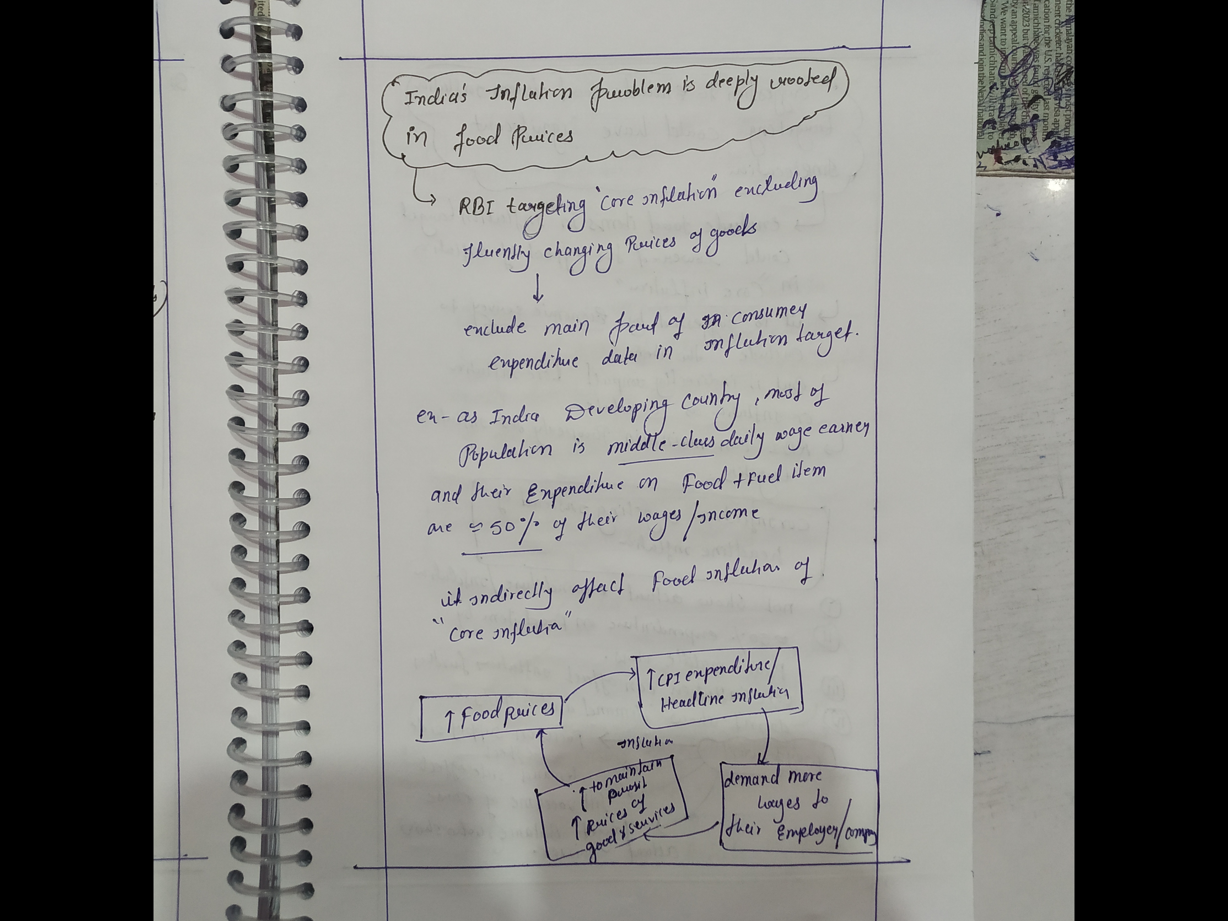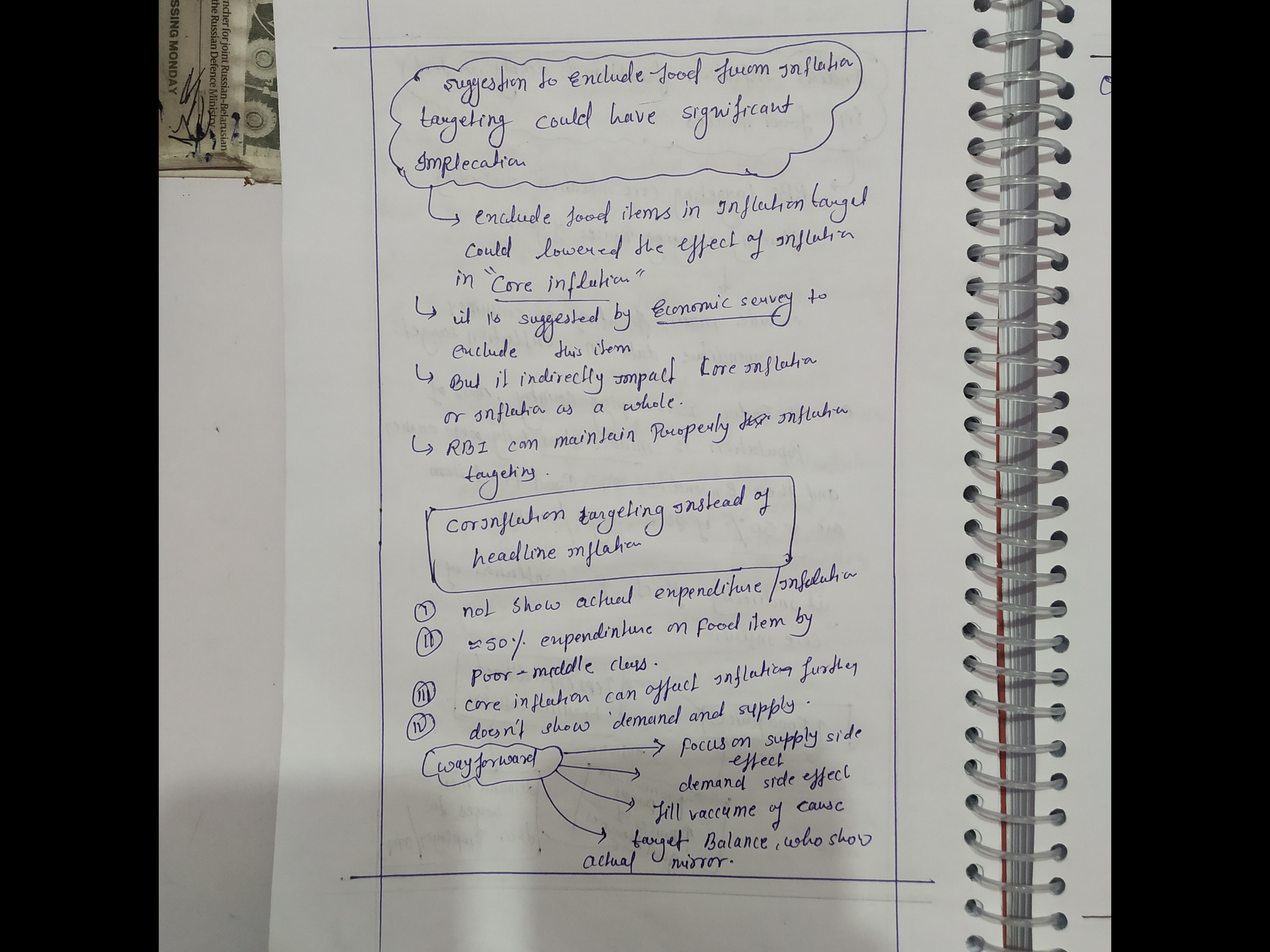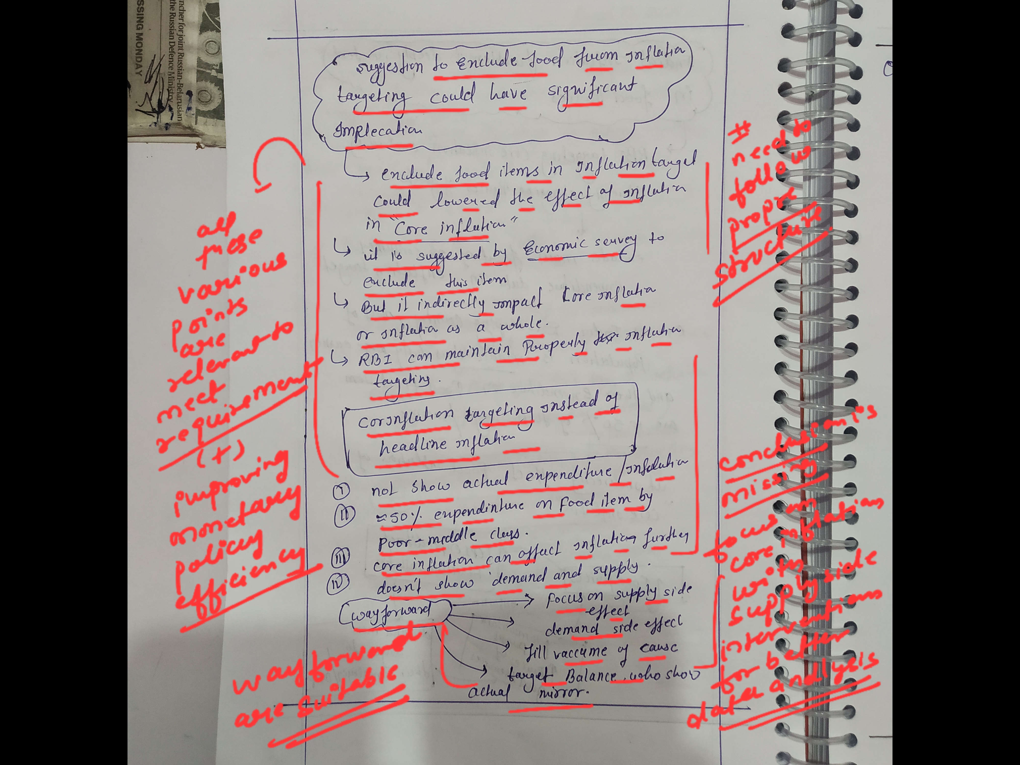Examine how India’s inflation problem is deeply rooted in food prices and how the suggestion to exclude food from inflation targeting could have significant implications. Examine the proposal to target ‘core’ inflation instead of ‘headline’ inflation in India.Highlight its shortcomings.Suggest a way ahead |