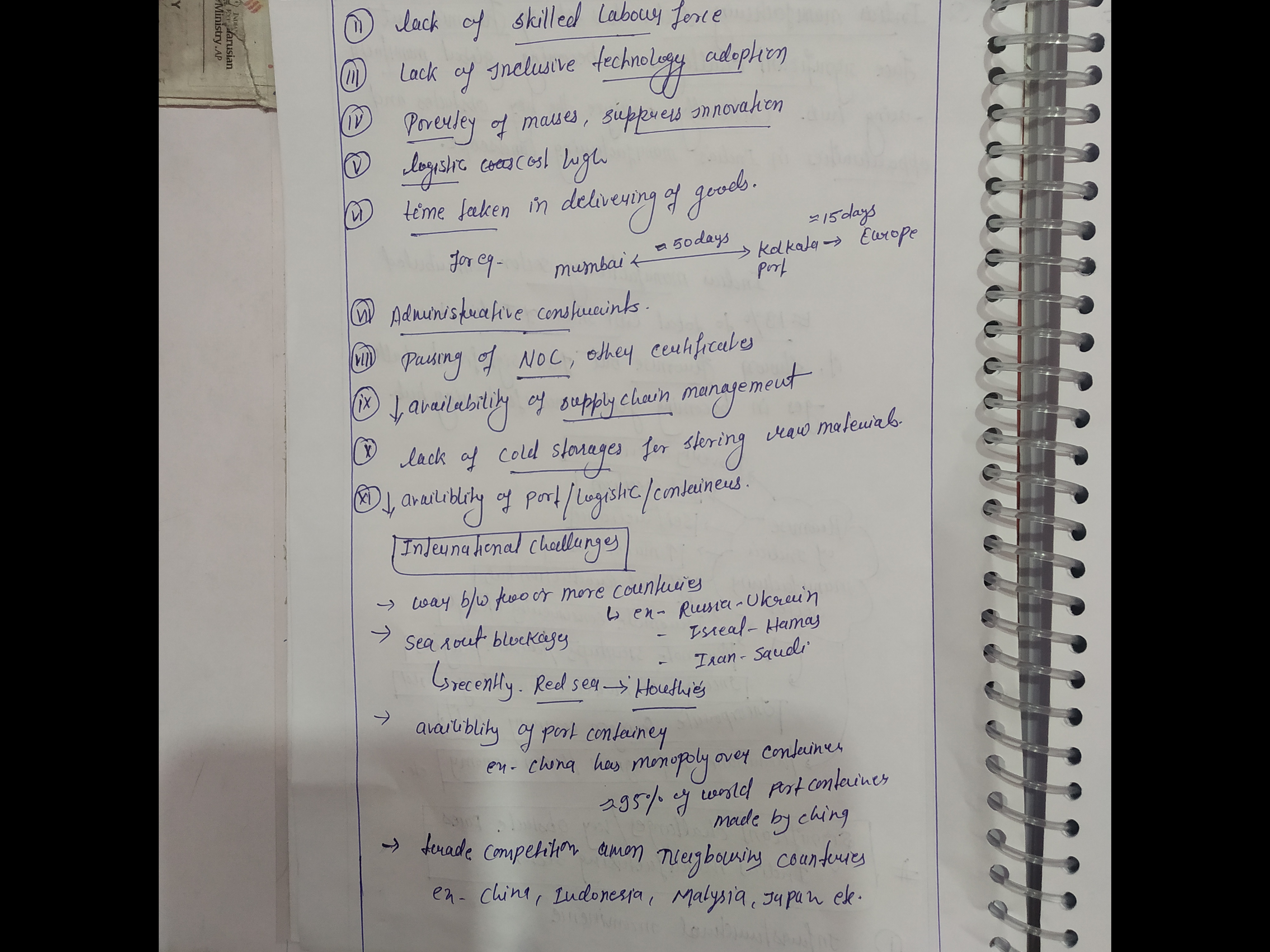 For instance: Poor road and port infrastructure leads to delays and increased costs, affecting supply chain reliability and overall productivity.
