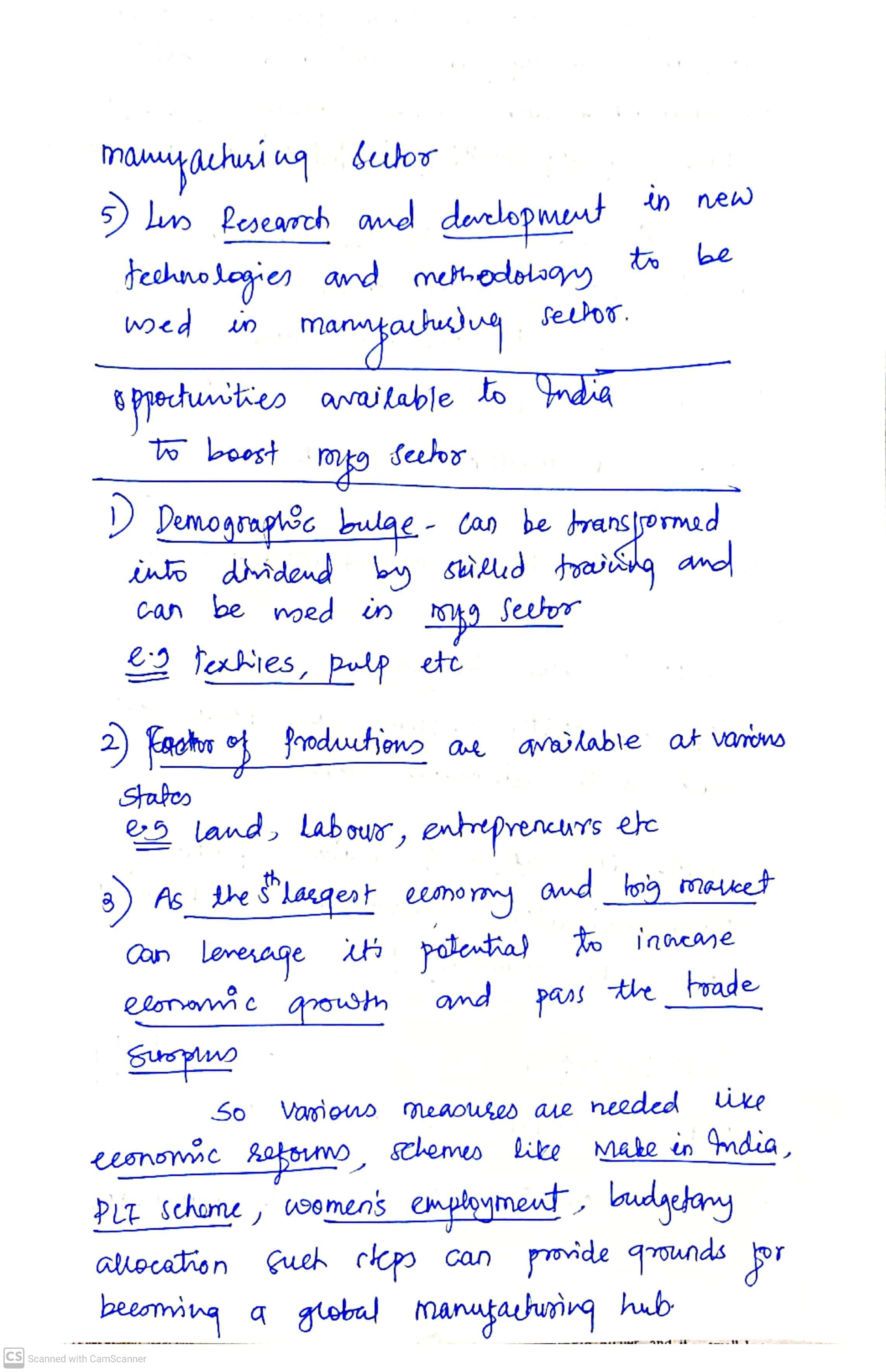For instance: Simplification of labour laws and tax regulations can attract more foreign and domestic investments in manufacturing.