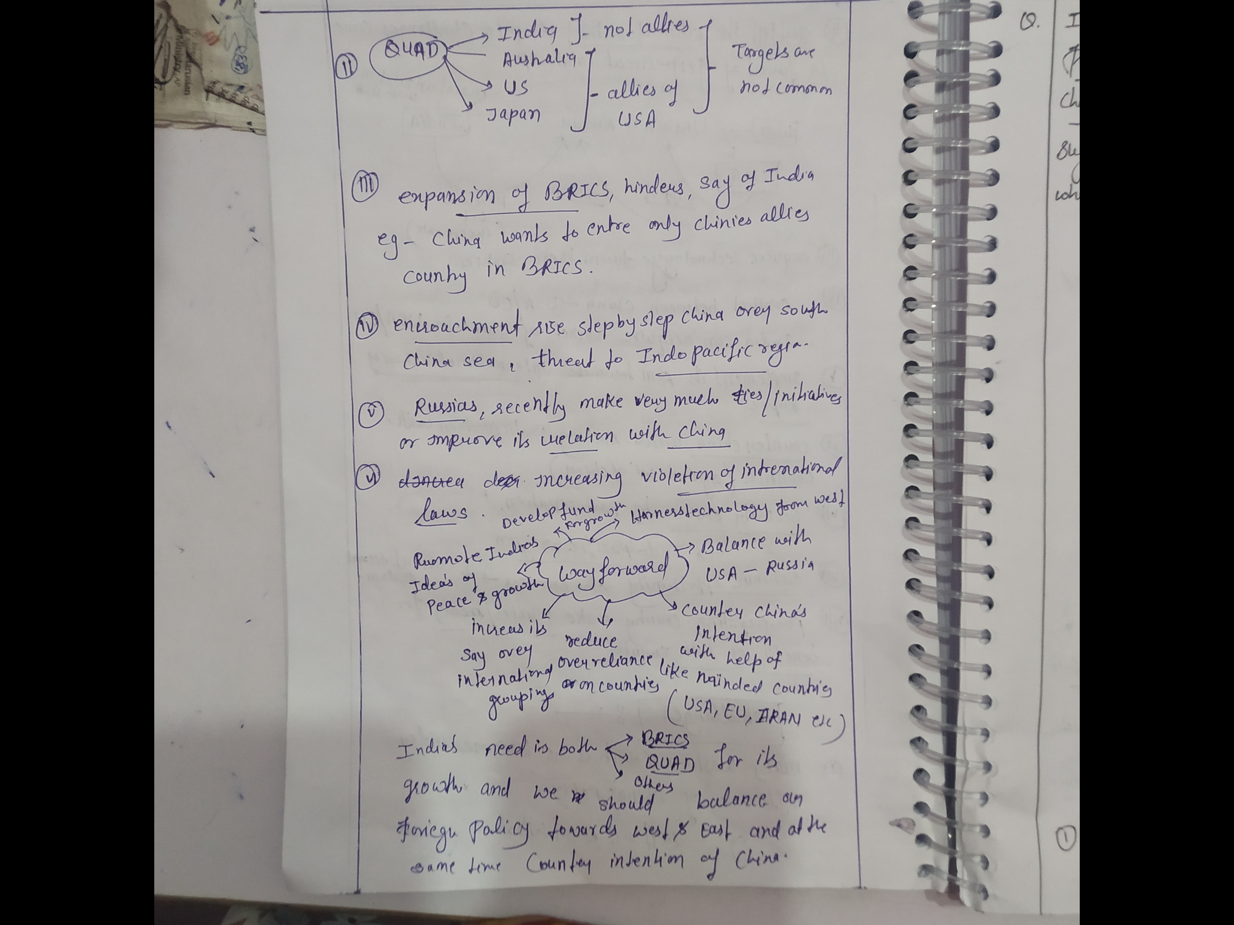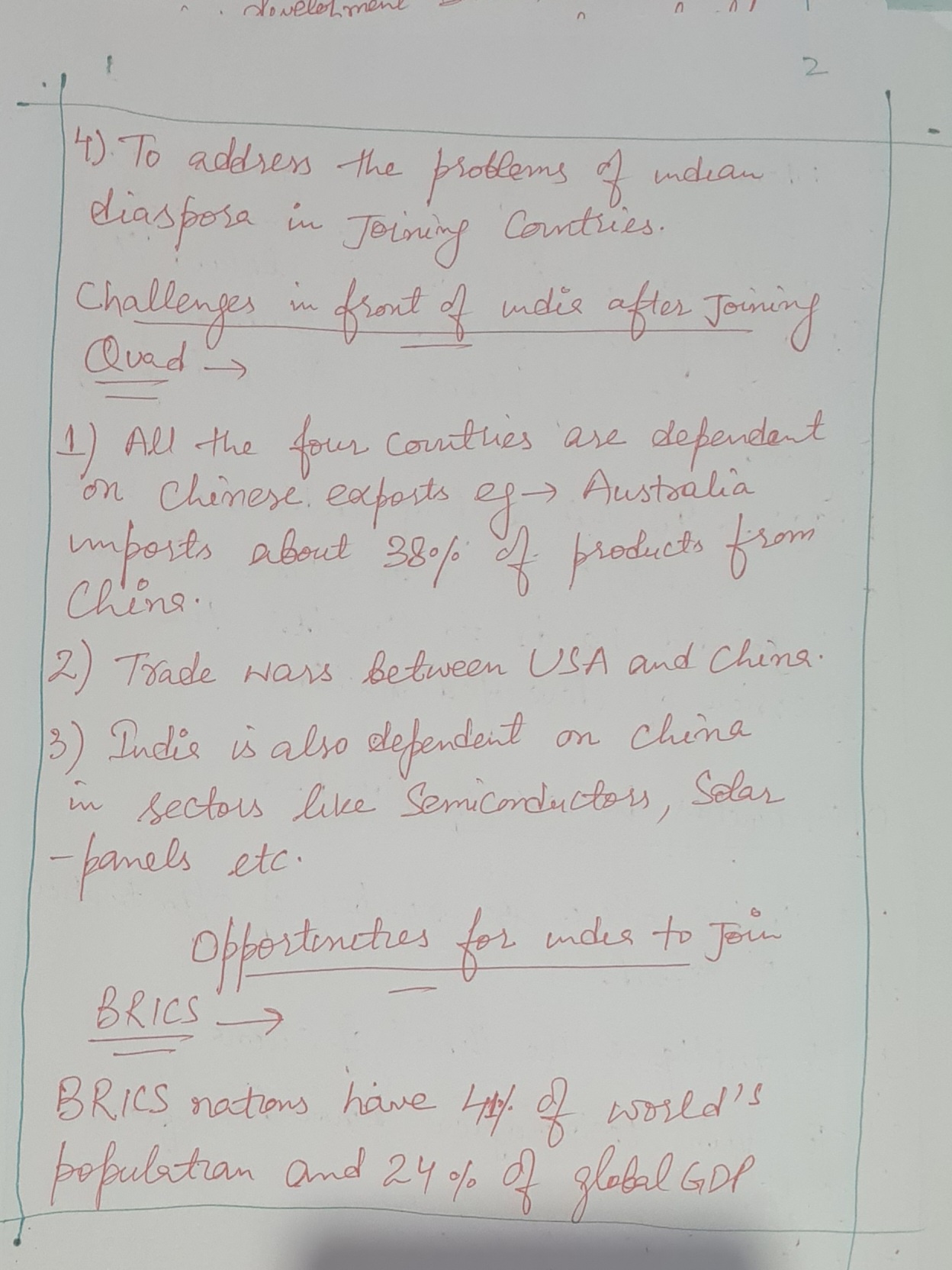 For example: While QUAD focuses on countering China’s influence, BRICS includes China as a member, requiring India to balance its stance.