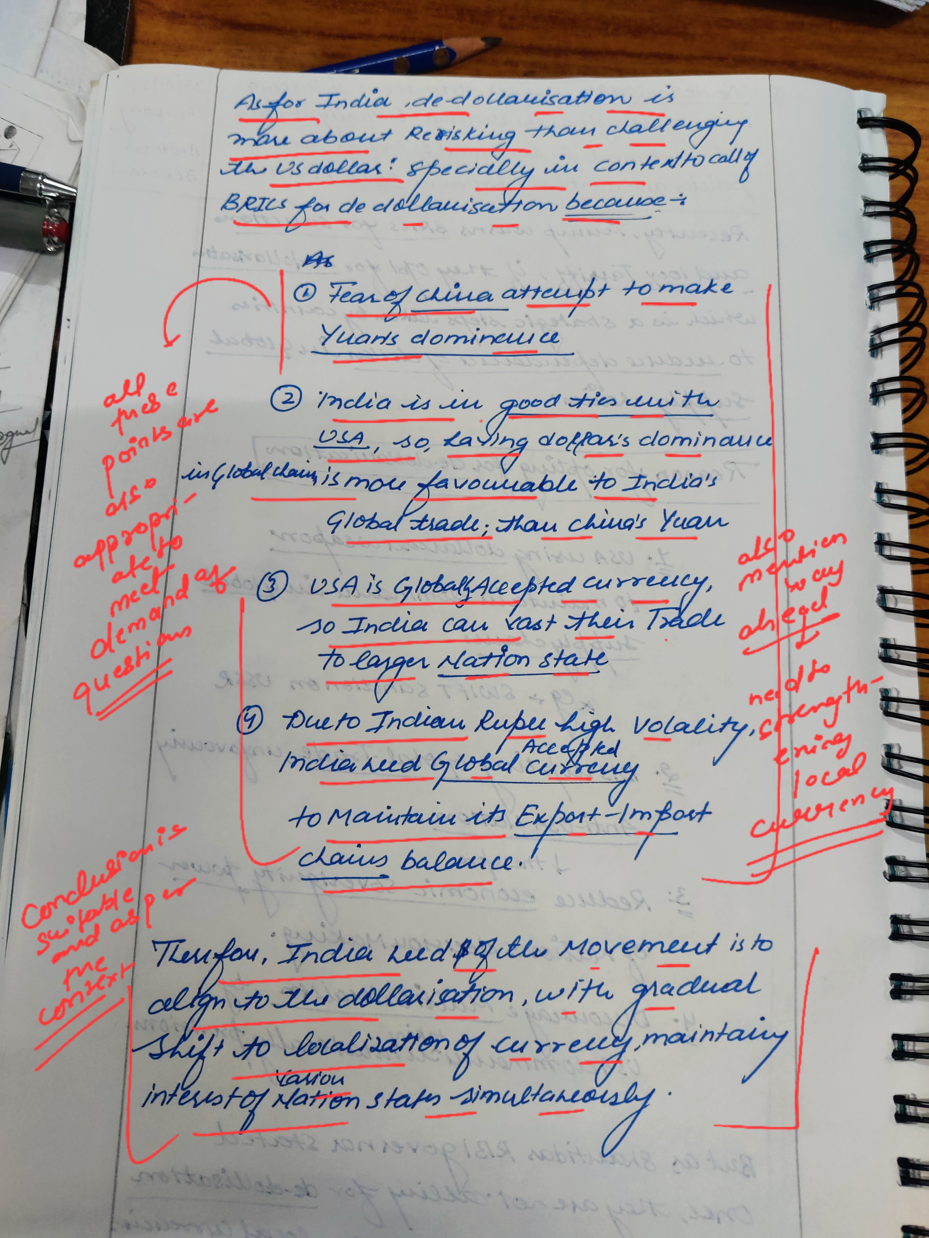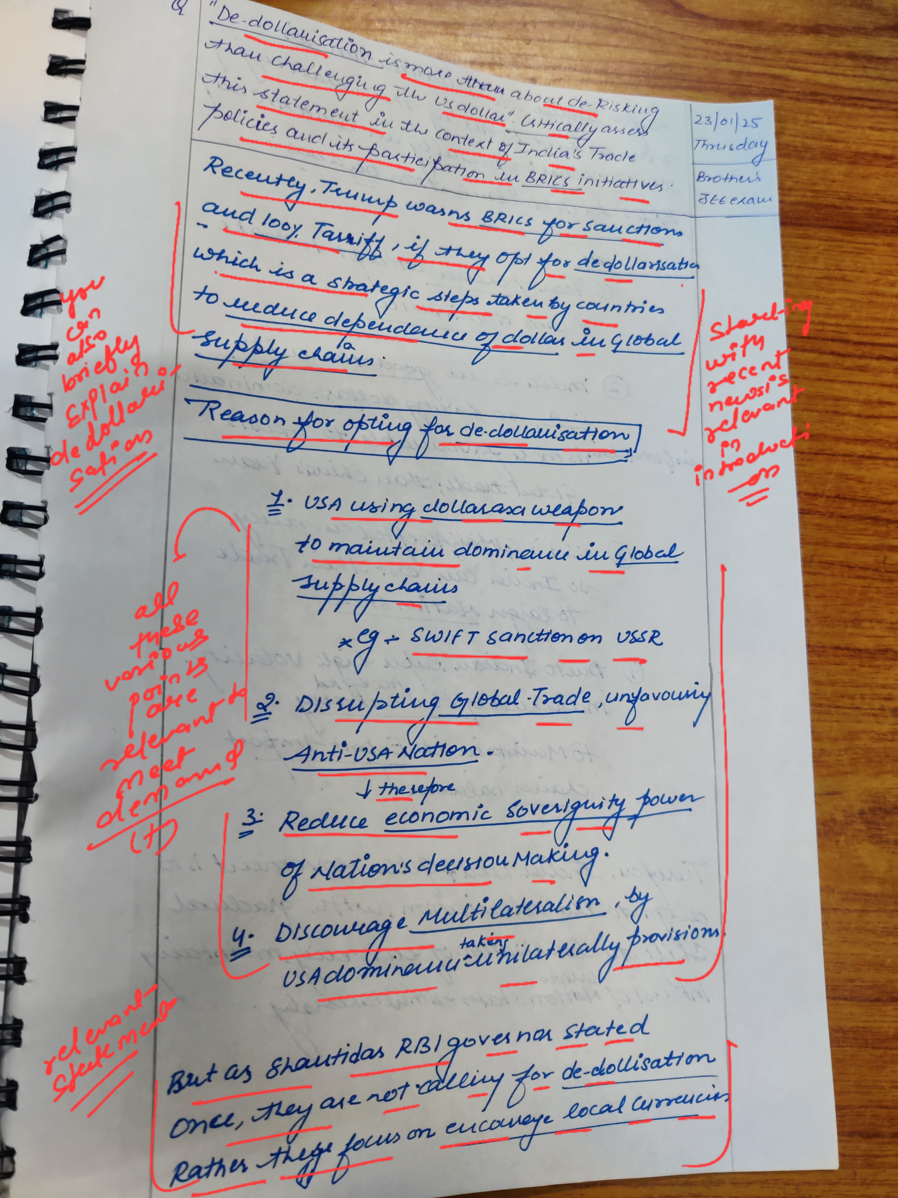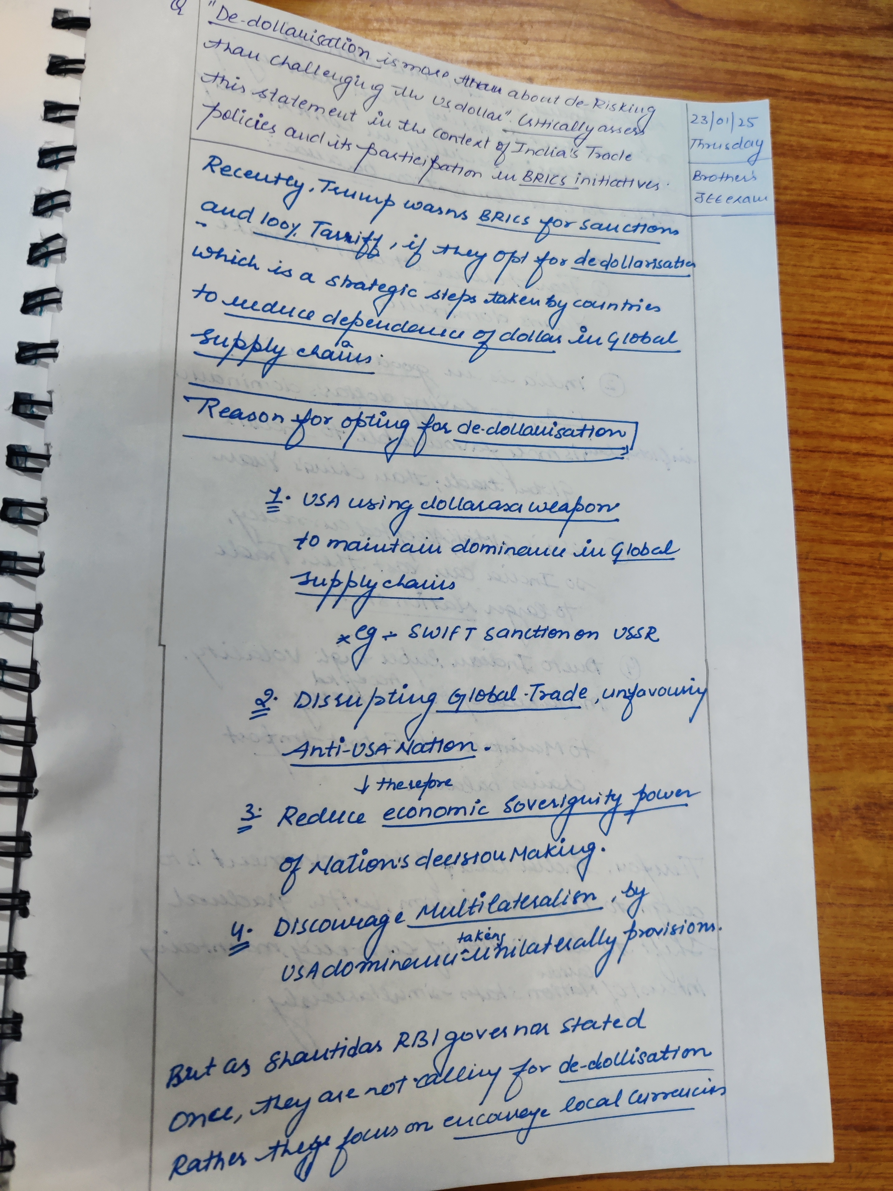 - Assess how de-dollarisation is also about challenging the US dollar in the context of India’s trade policies and its participation in BRICS initiatives
