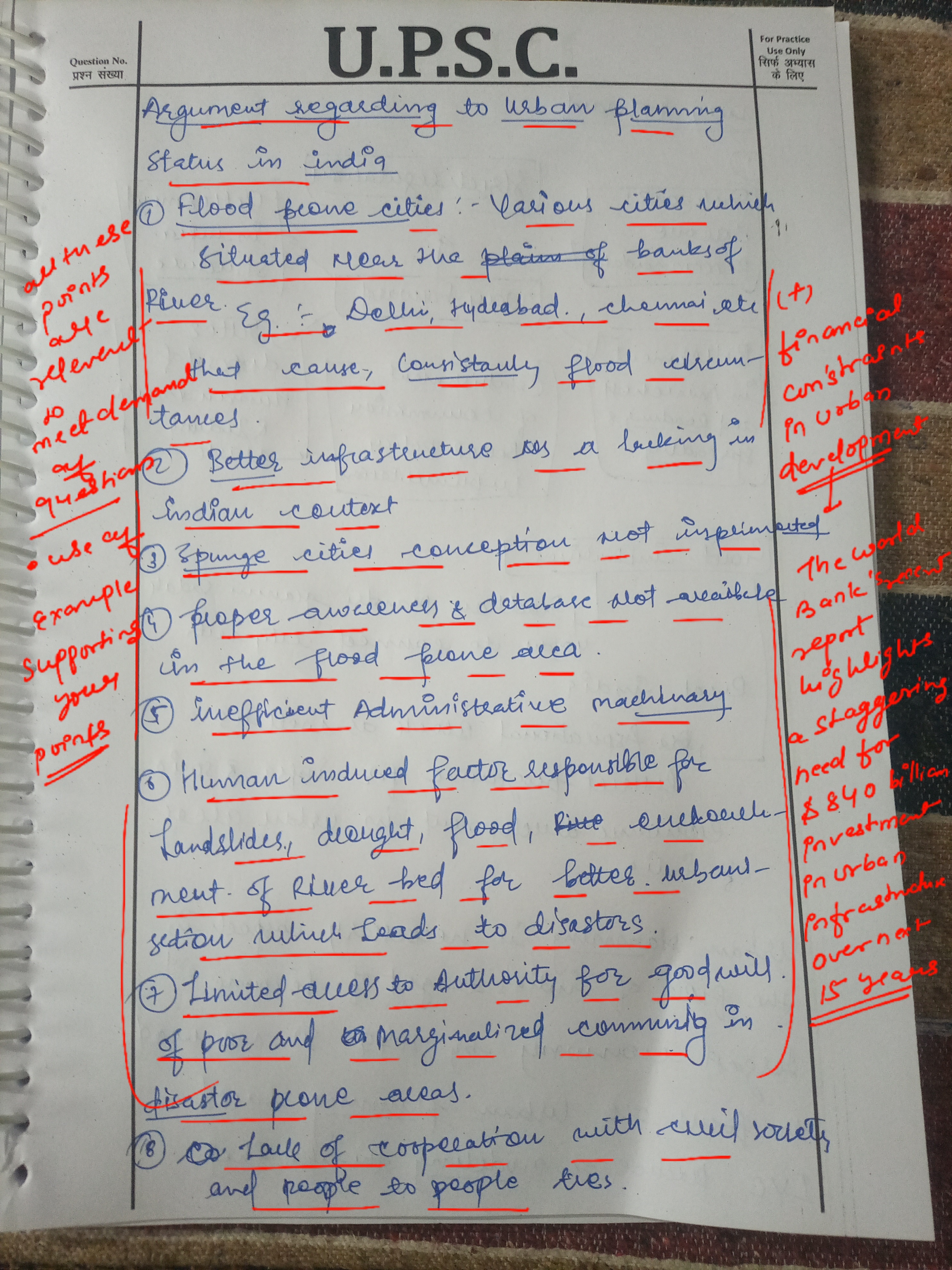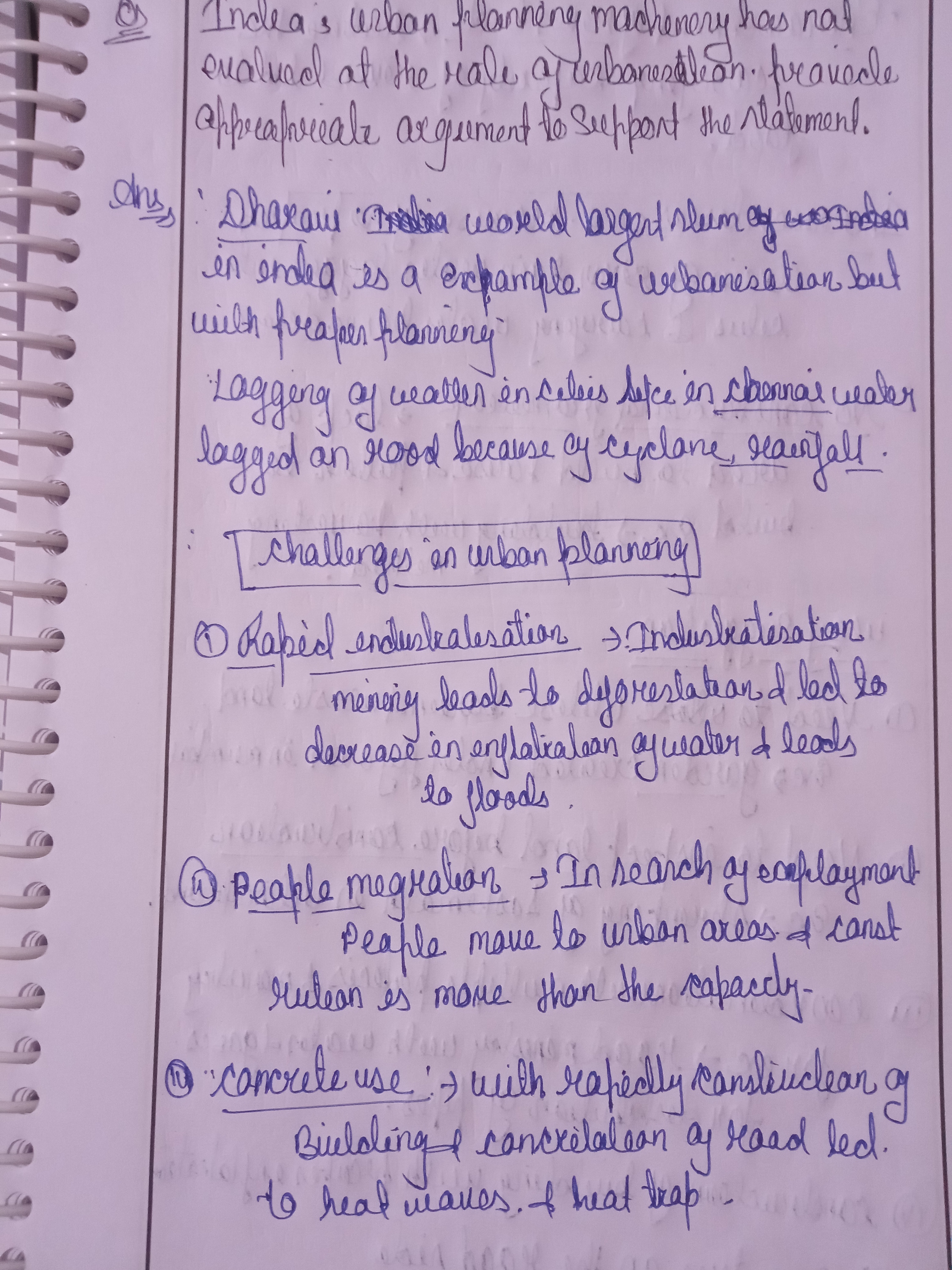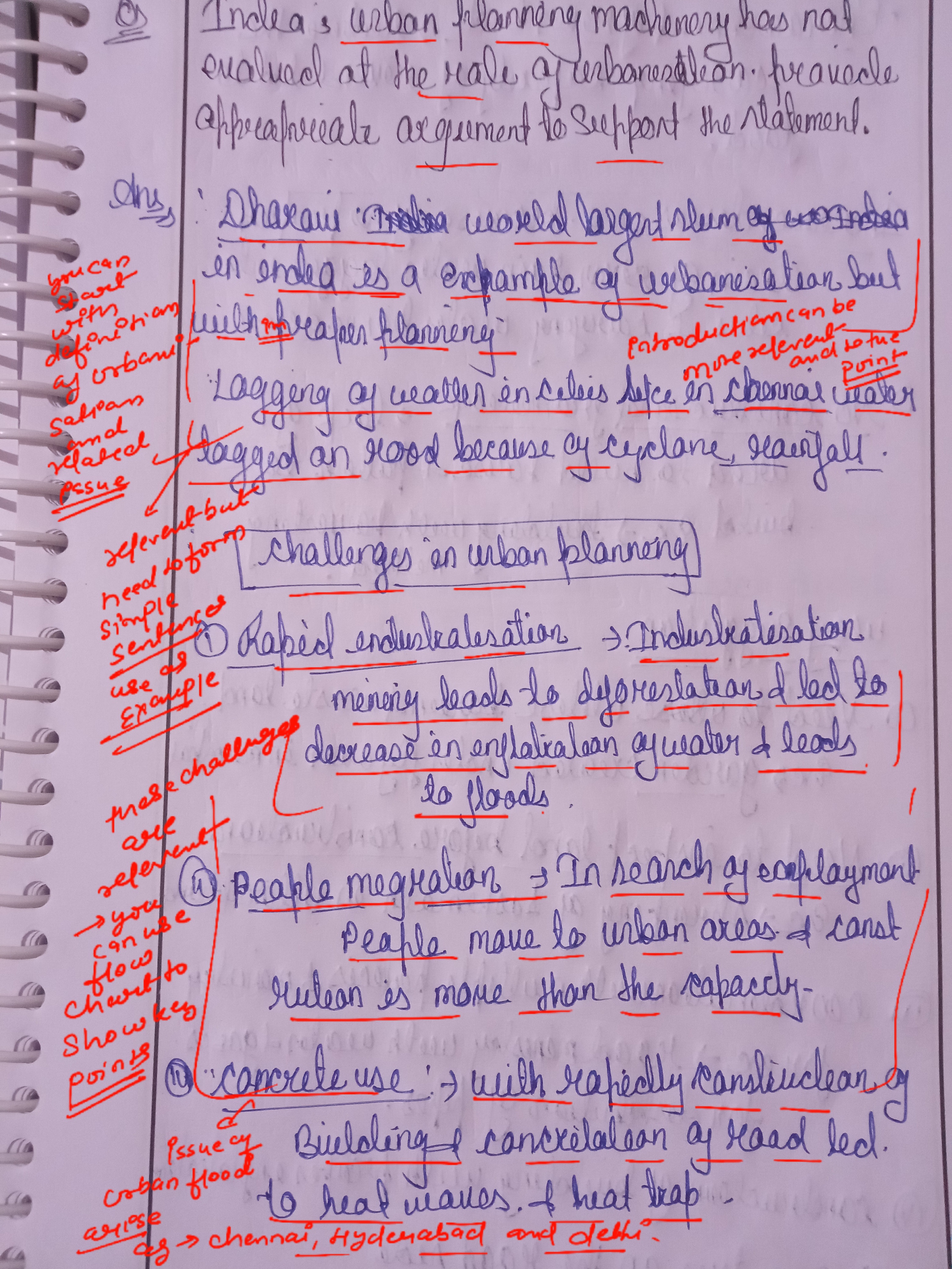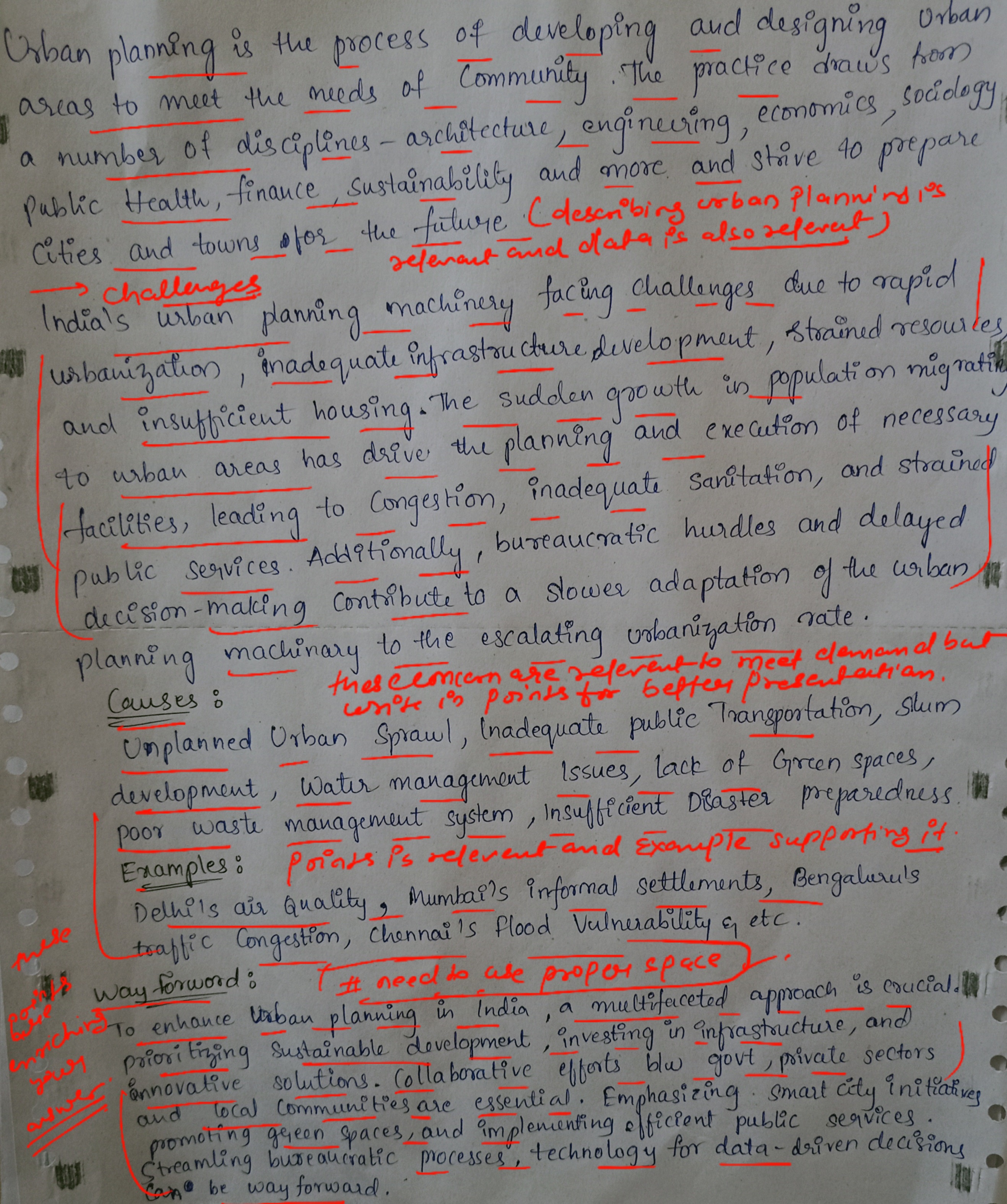 - Analyze the issues in urban planning as per the India Infrastructure Report 2023, focusing on urban sprawl, slums, and low FSRs.