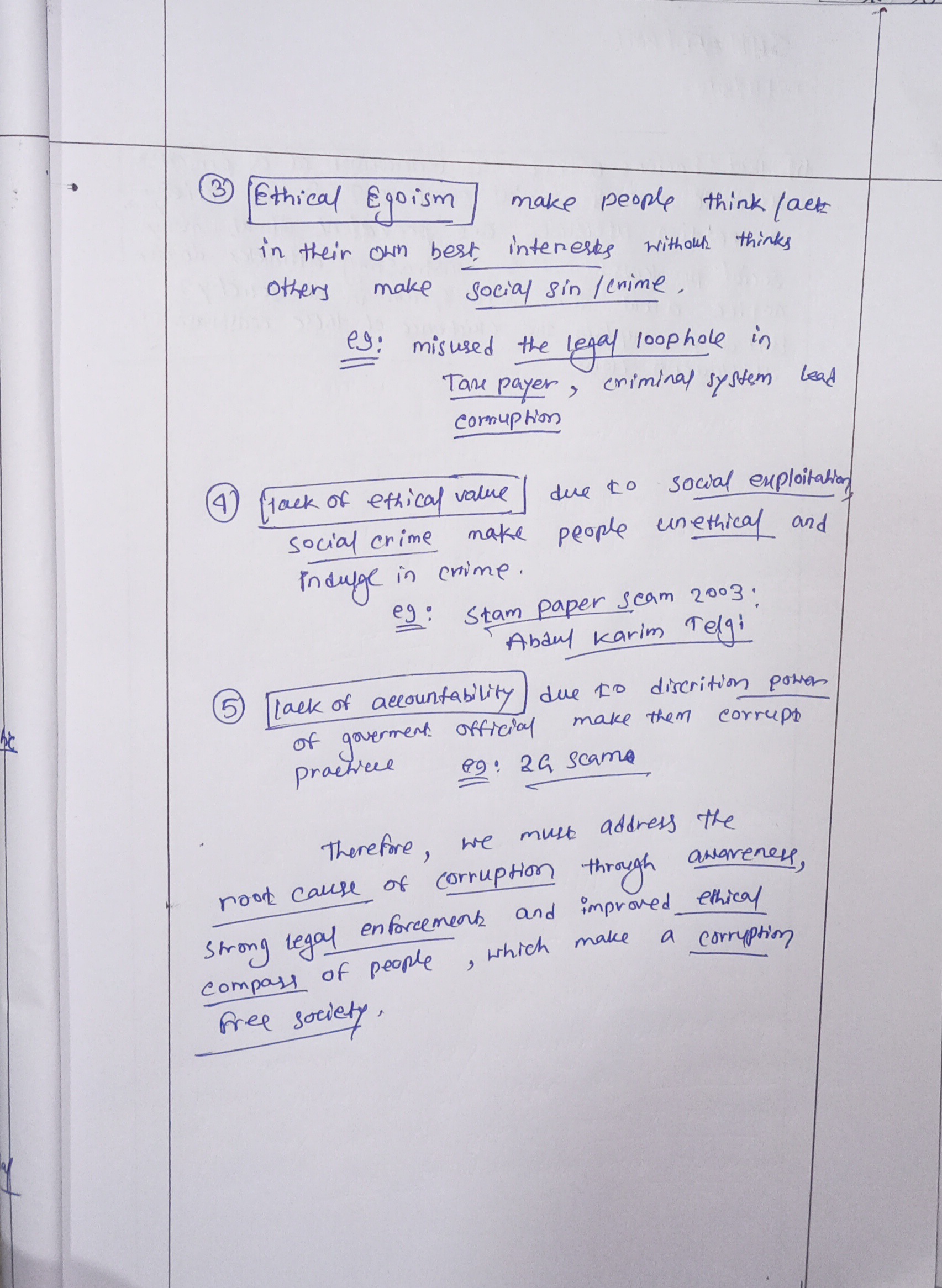 - Mention some common factors causing corruption.