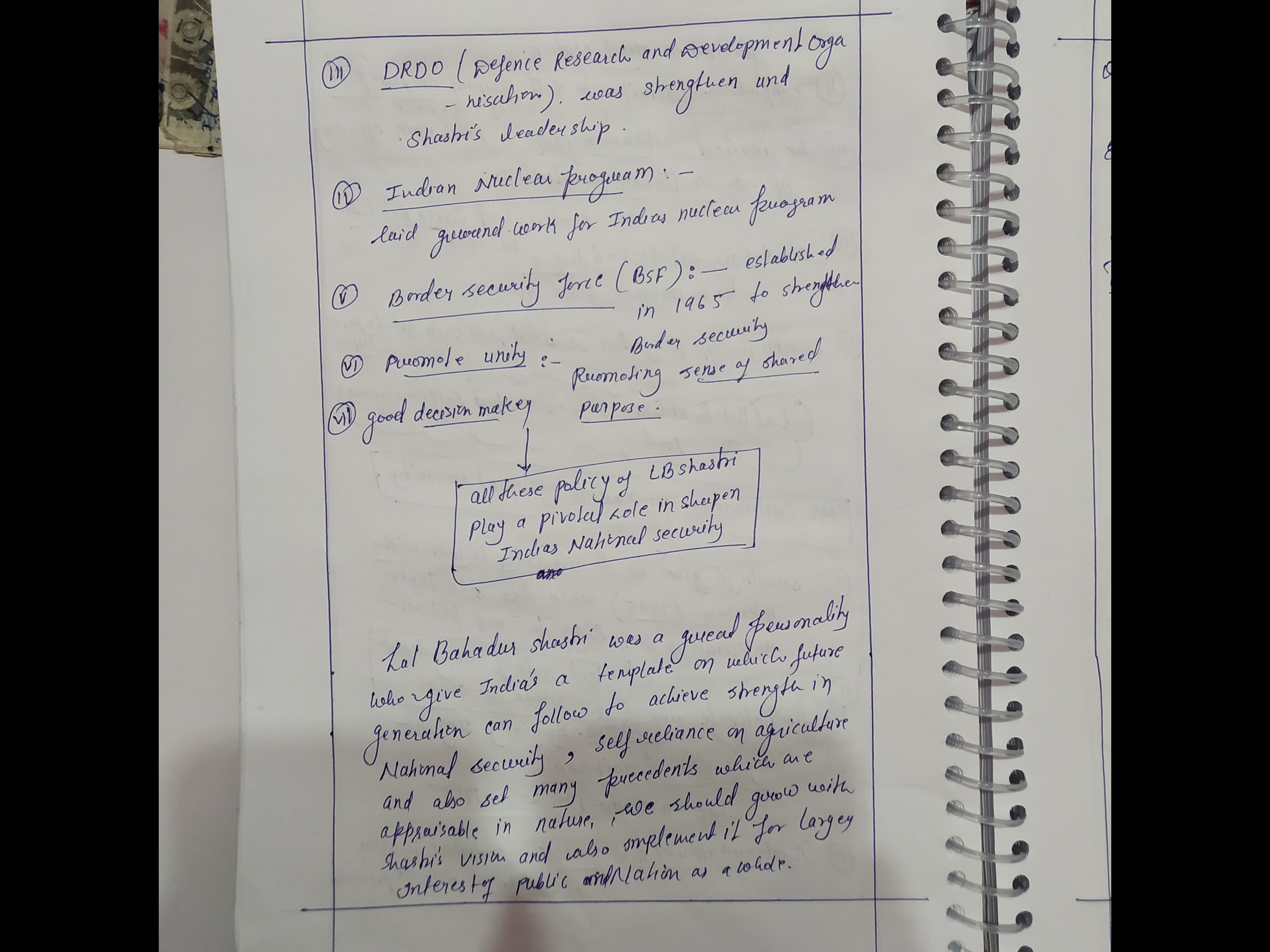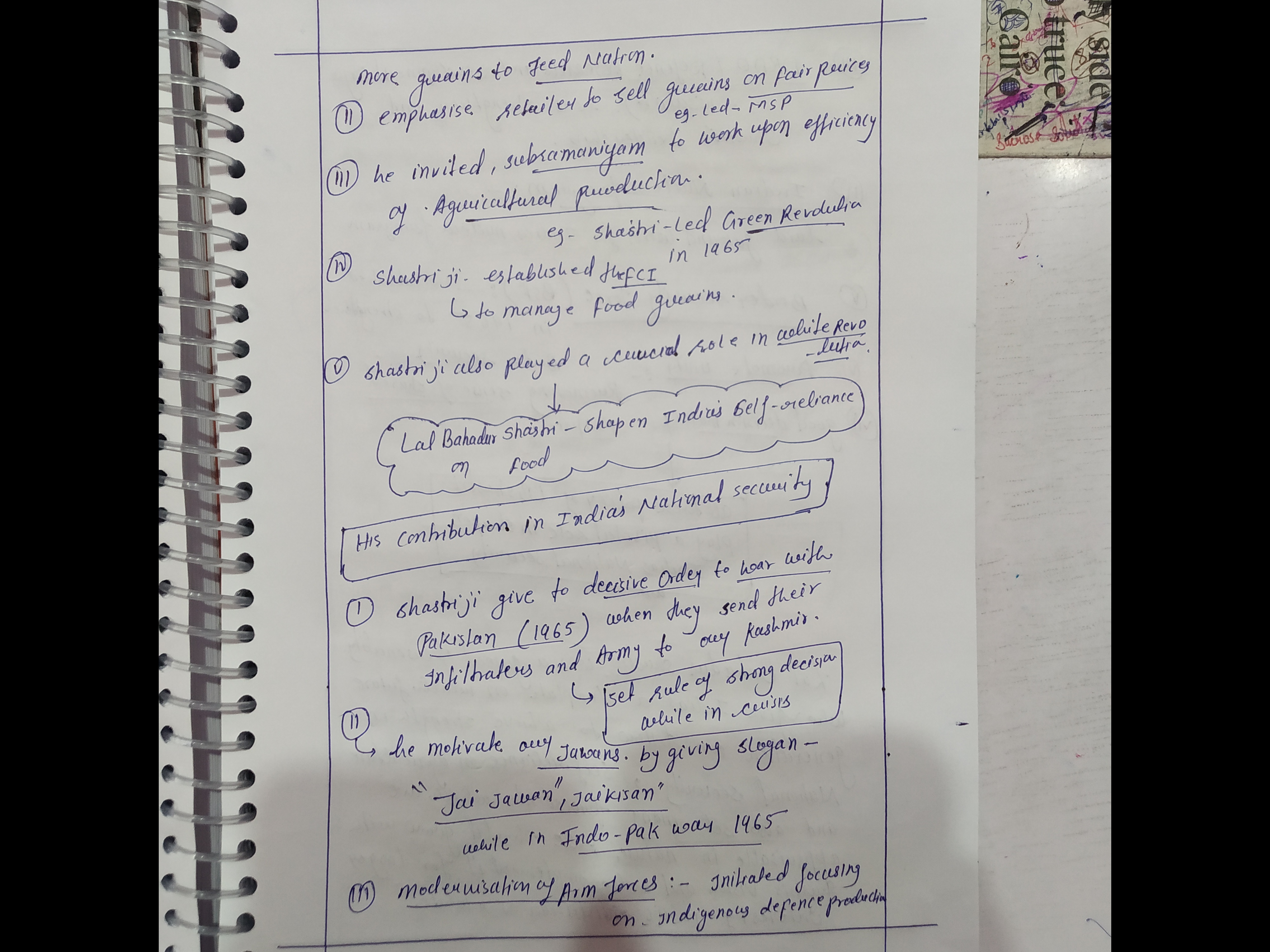 - Discuss how his contributions in defence and agricultural areas helped strengthen India’s national security.