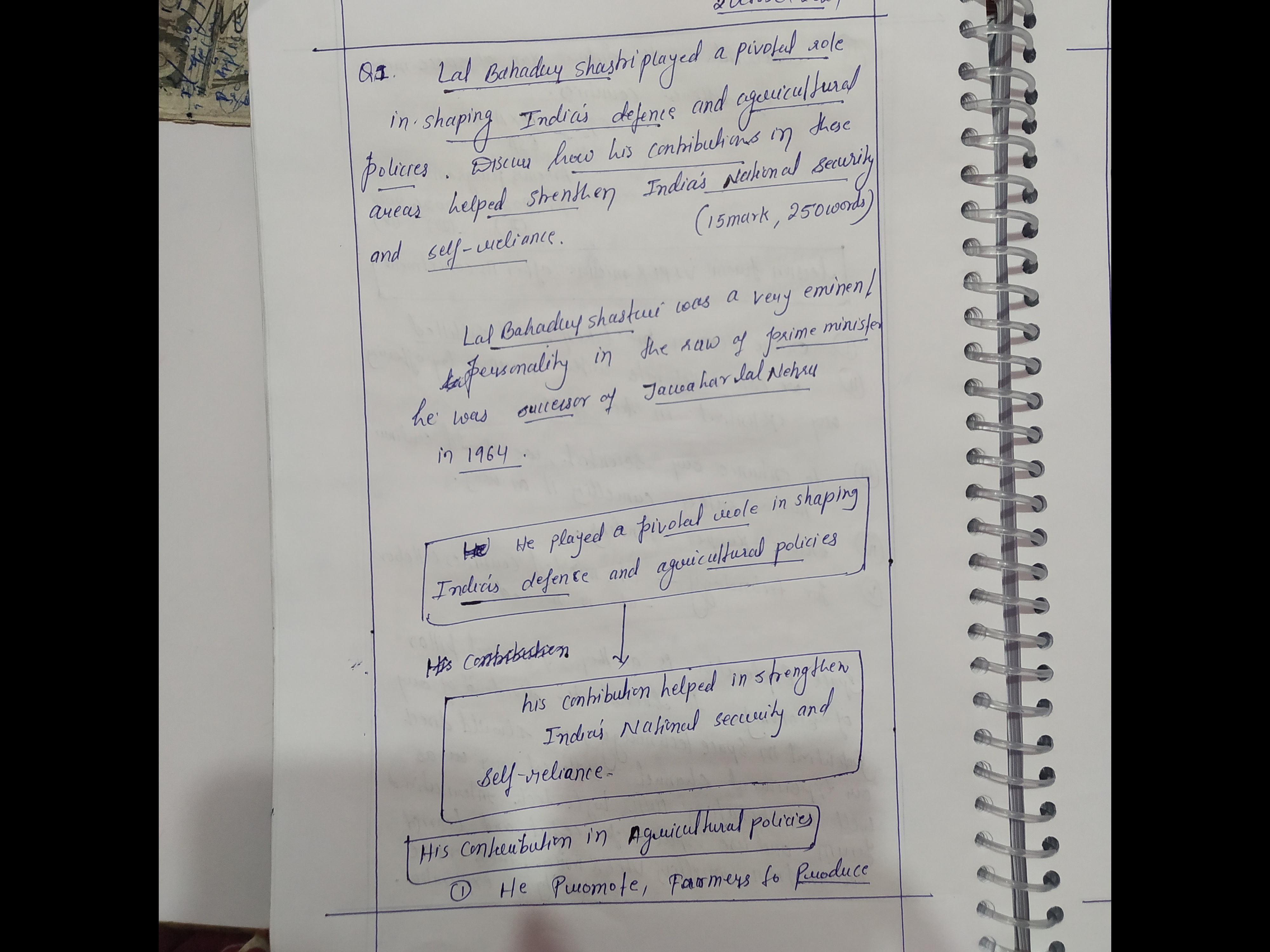 - Examine the role of Lal Bahadur Shastri in shaping India’s defence and agricultural policies.