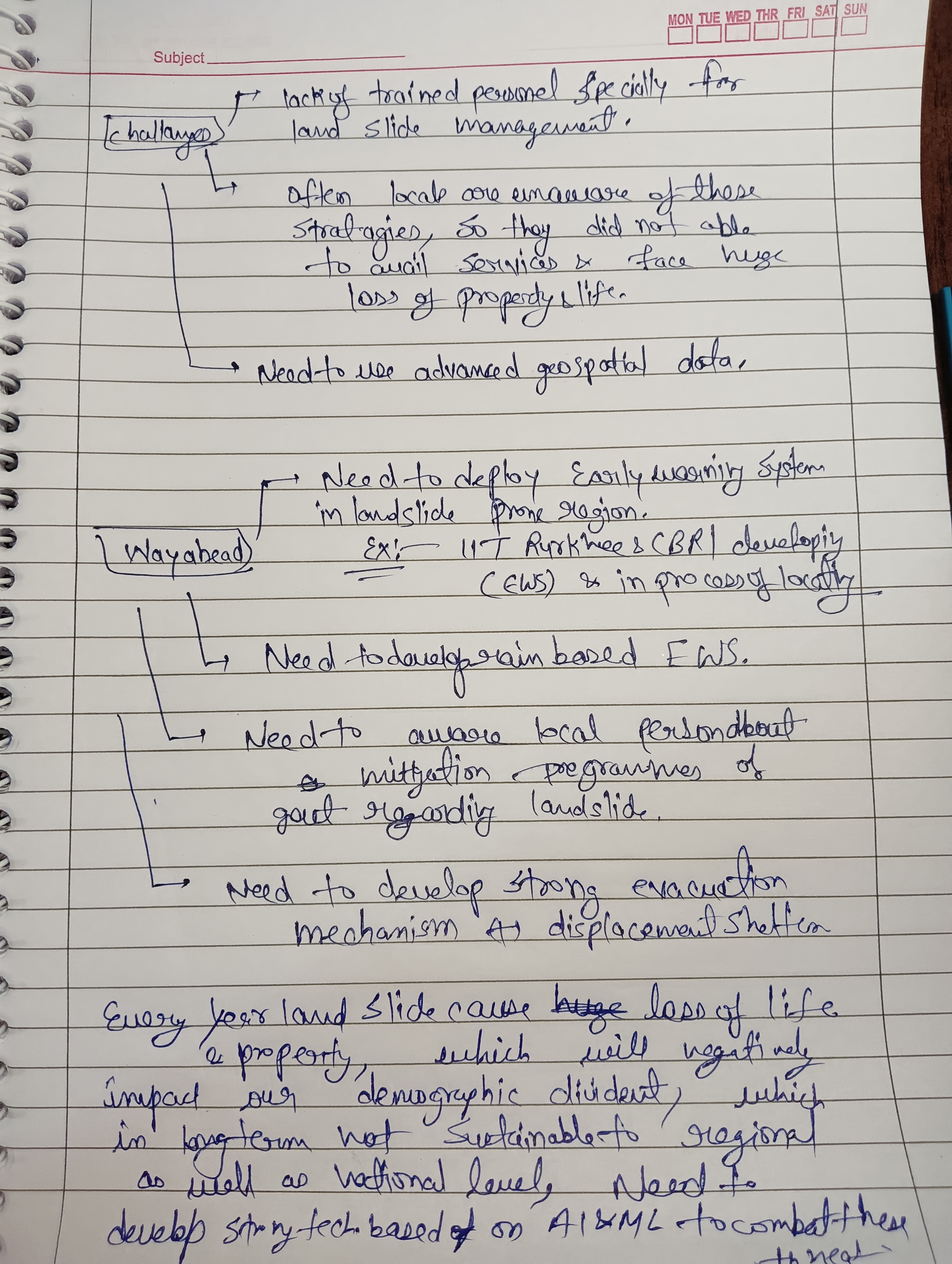 - Training and Awareness: There is a lack of systematic training and awareness programmes for local communities and government officials on landslide risk reduction and response.