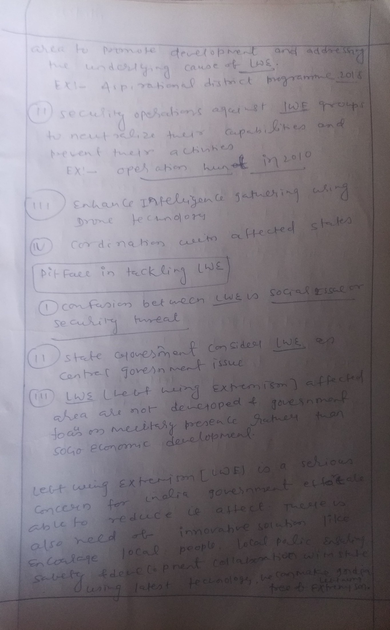 - Briefly discuss the central government’s multi-pronged policy to address LWE.