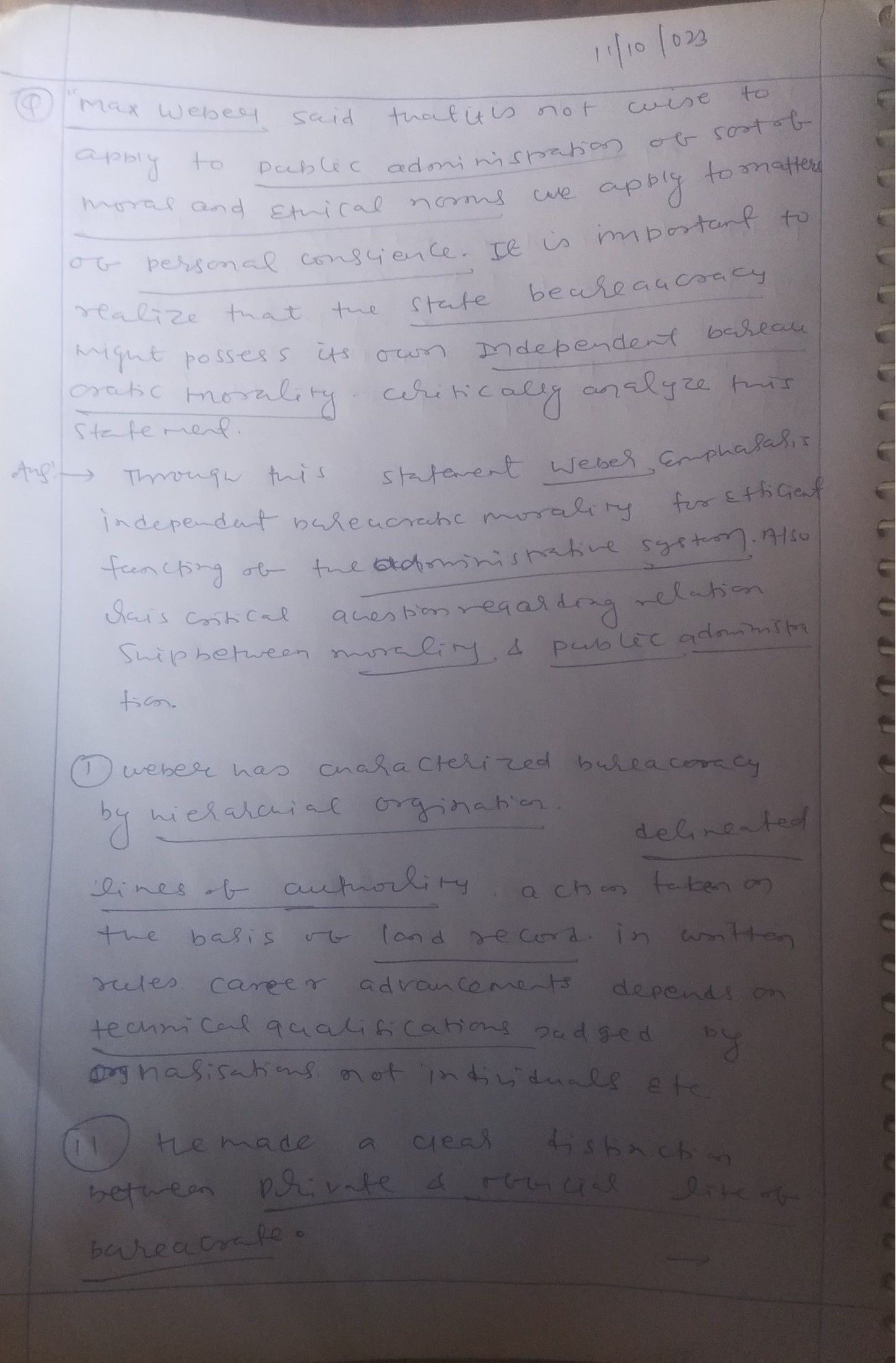 He believed that the state bureaucracy possessed its own independent bureaucratic morality, which was necessary for the efficient functioning of the administrative system. This statement raises some critical questions regarding the relationship between morality and public administration.