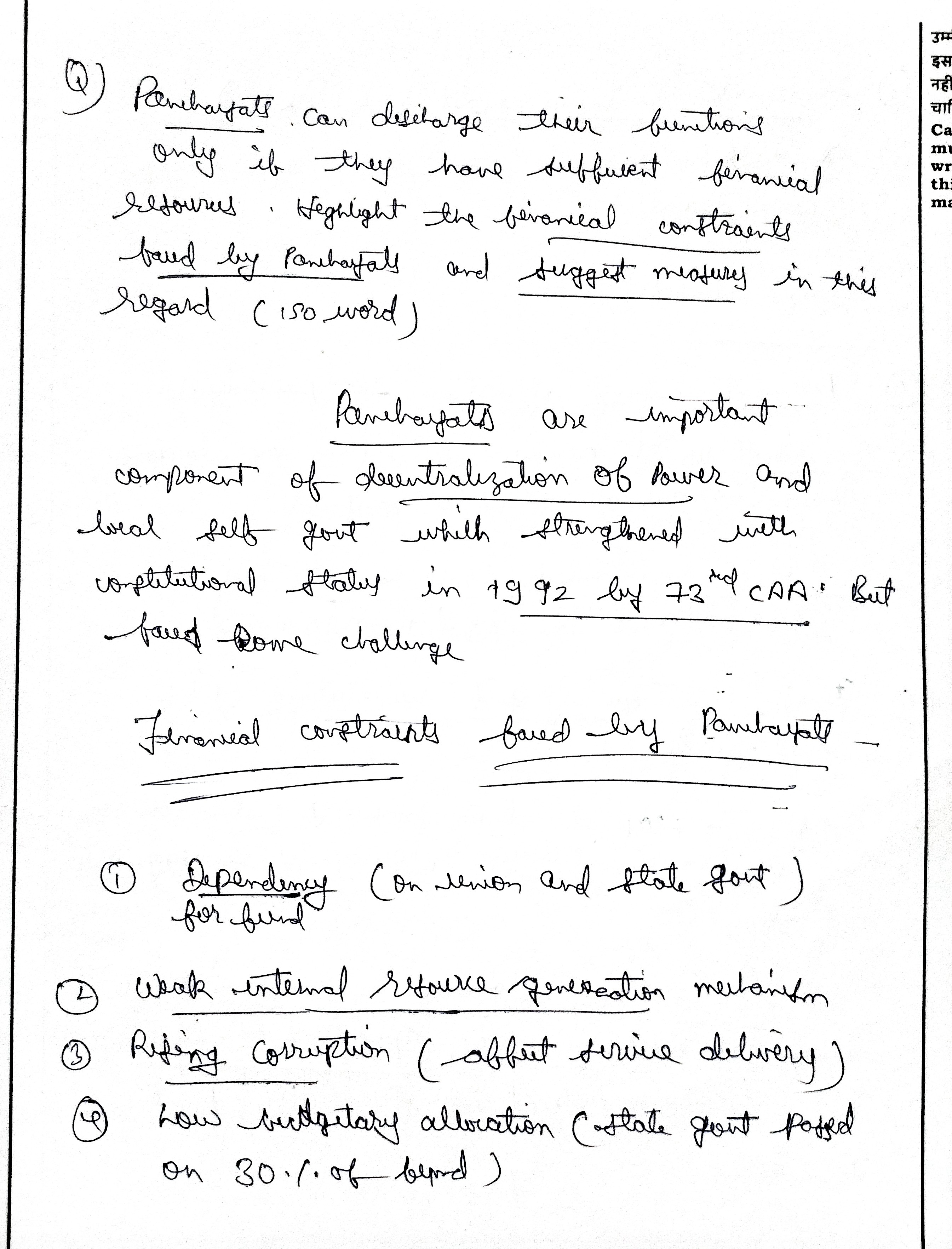 - Insufficient Financial Resources: Panchayats lack adequate funds for their functions and community needs.