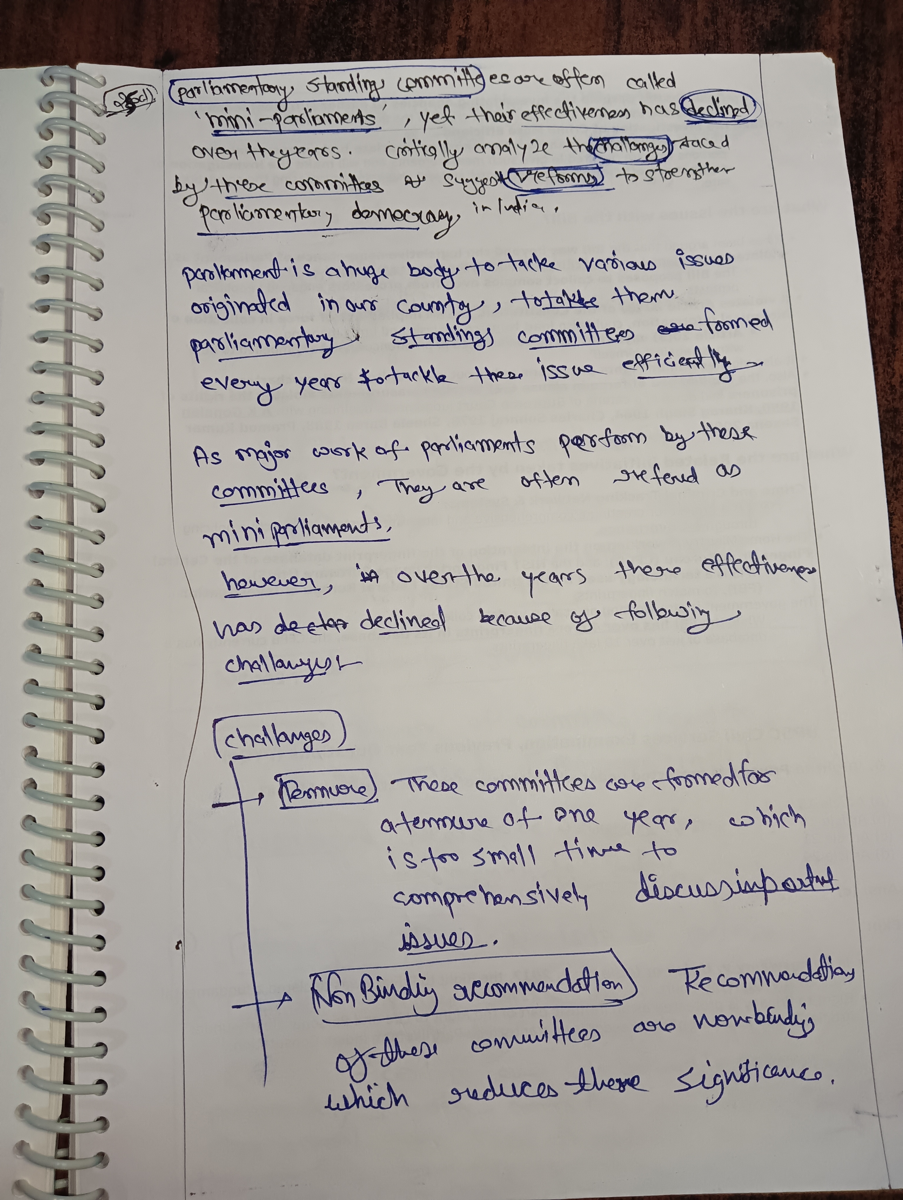 - Analyse the challenges that have led to the declining effectiveness of these committees over the years