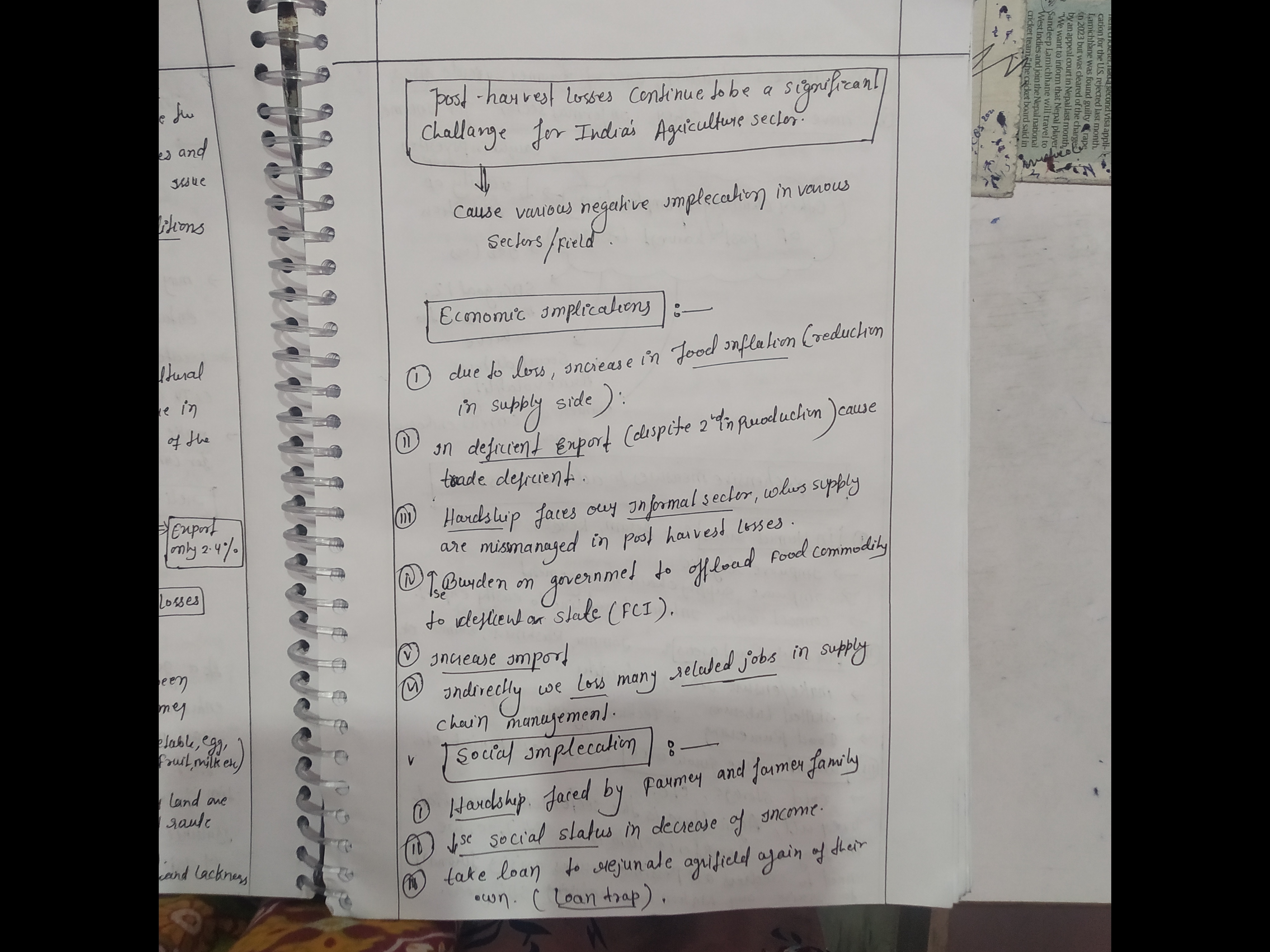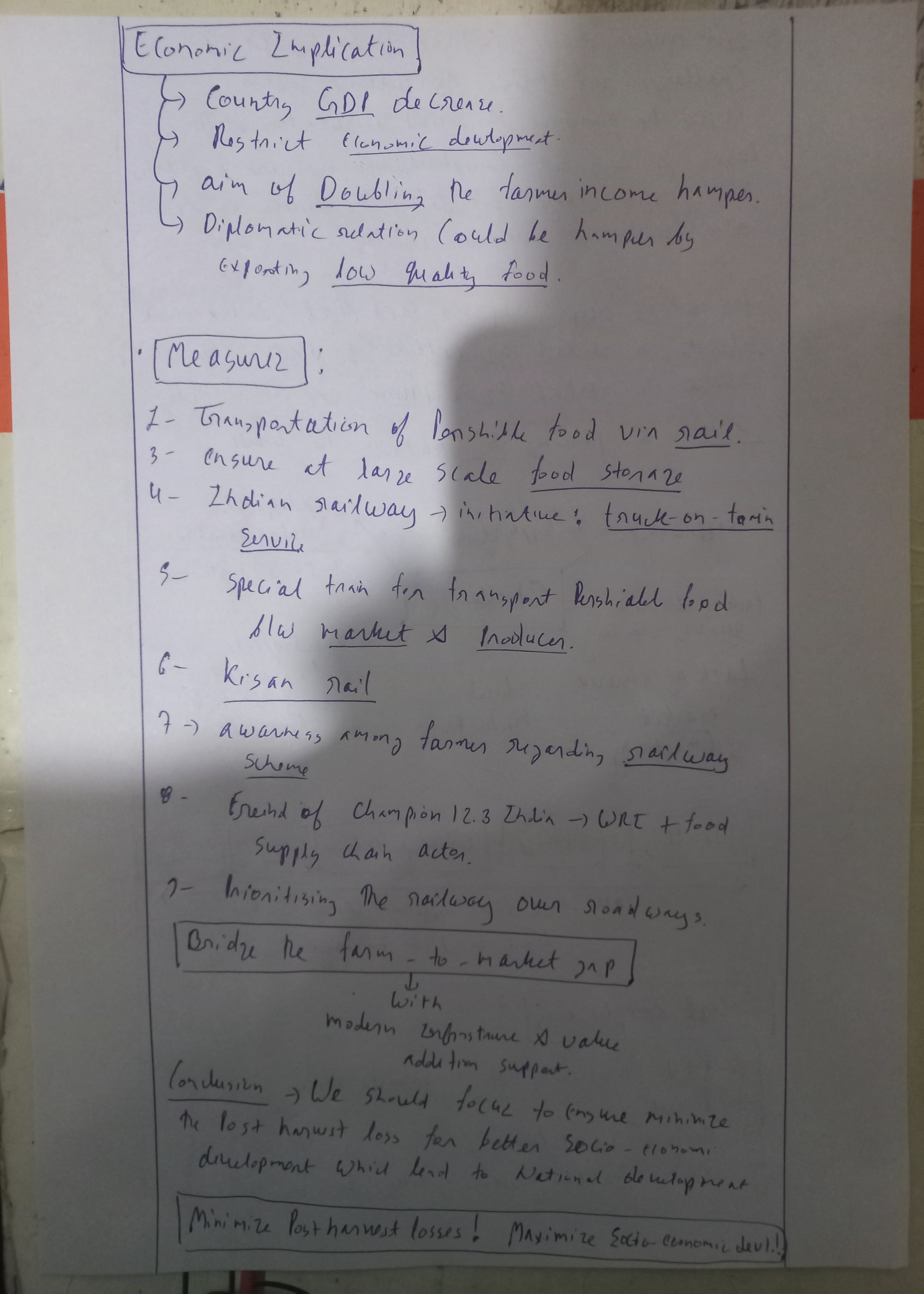 - Wastage of Resources: Resources like water, labour, and inputs used in producing the lost food are wasted, leading to inefficiencies.