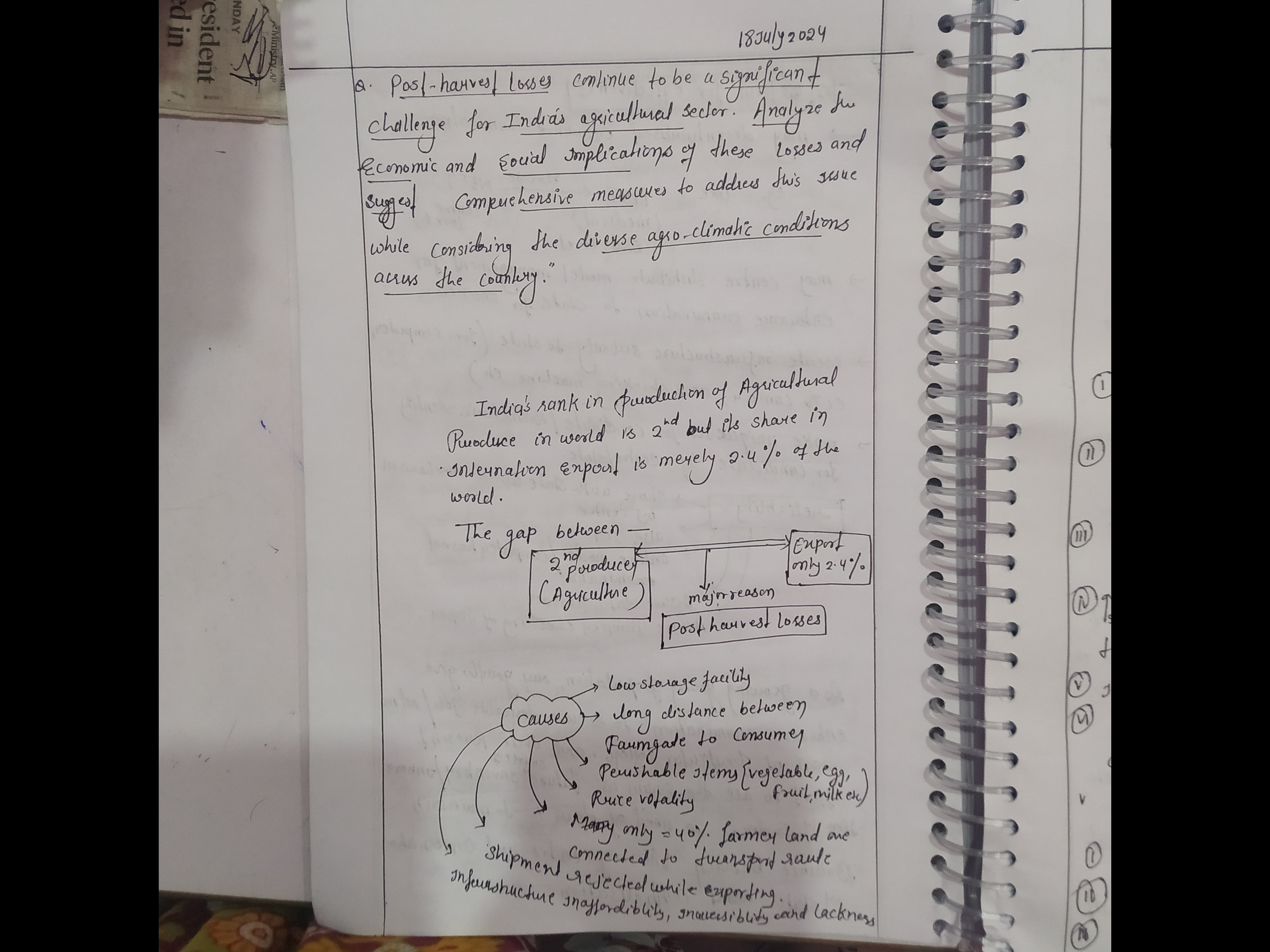 - Suggest comprehensive measures to address this issue while considering the diverse agro-climatic conditions across the country.