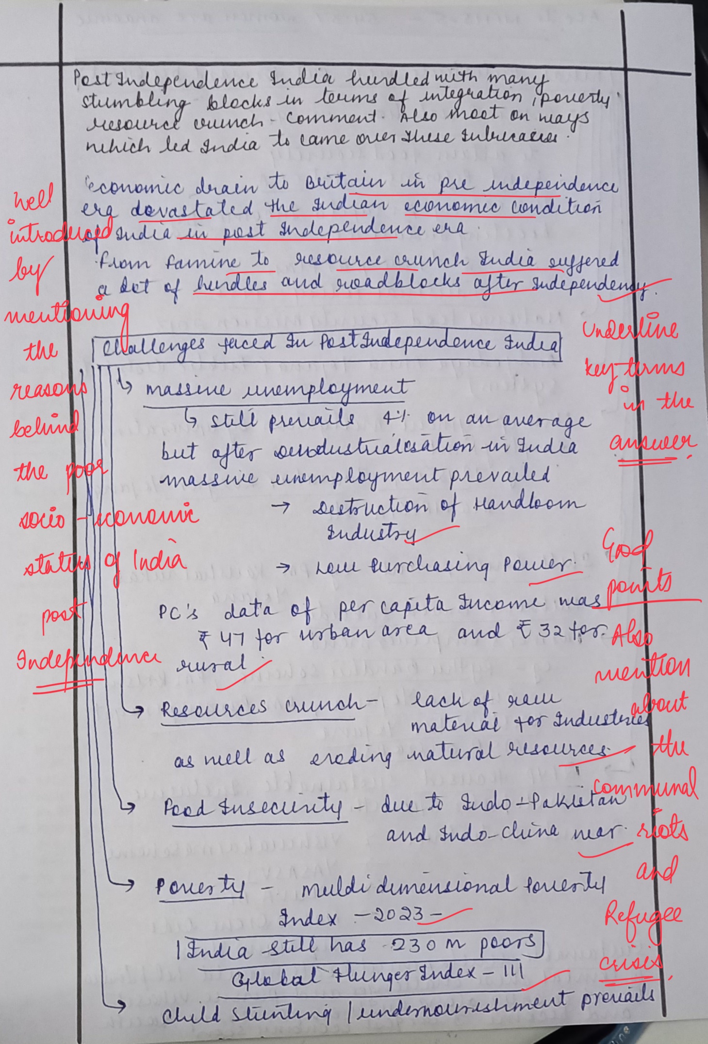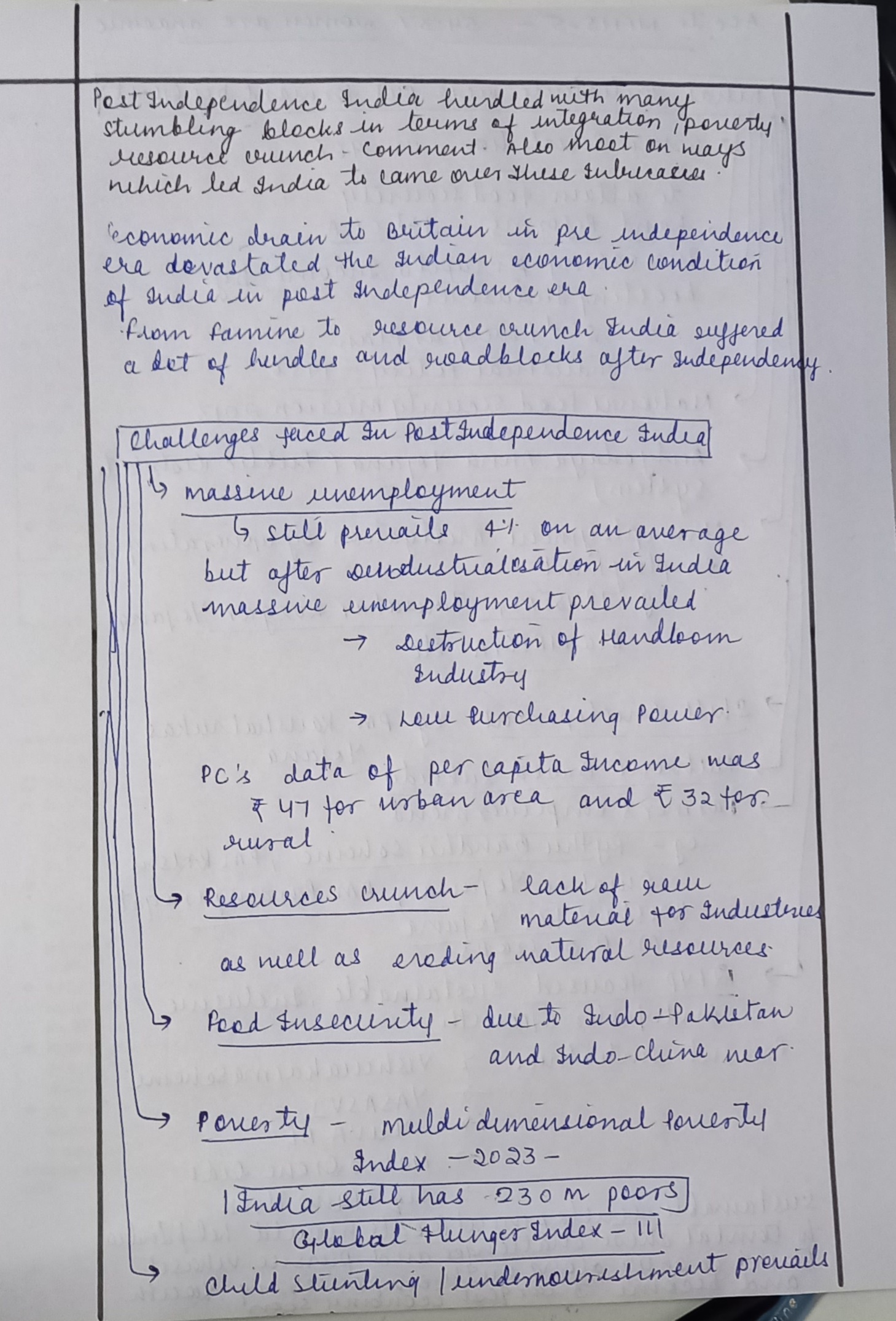 - Write the stumbling blocks that India faced post-Independence in terms of integration, poverty, resource crunch.