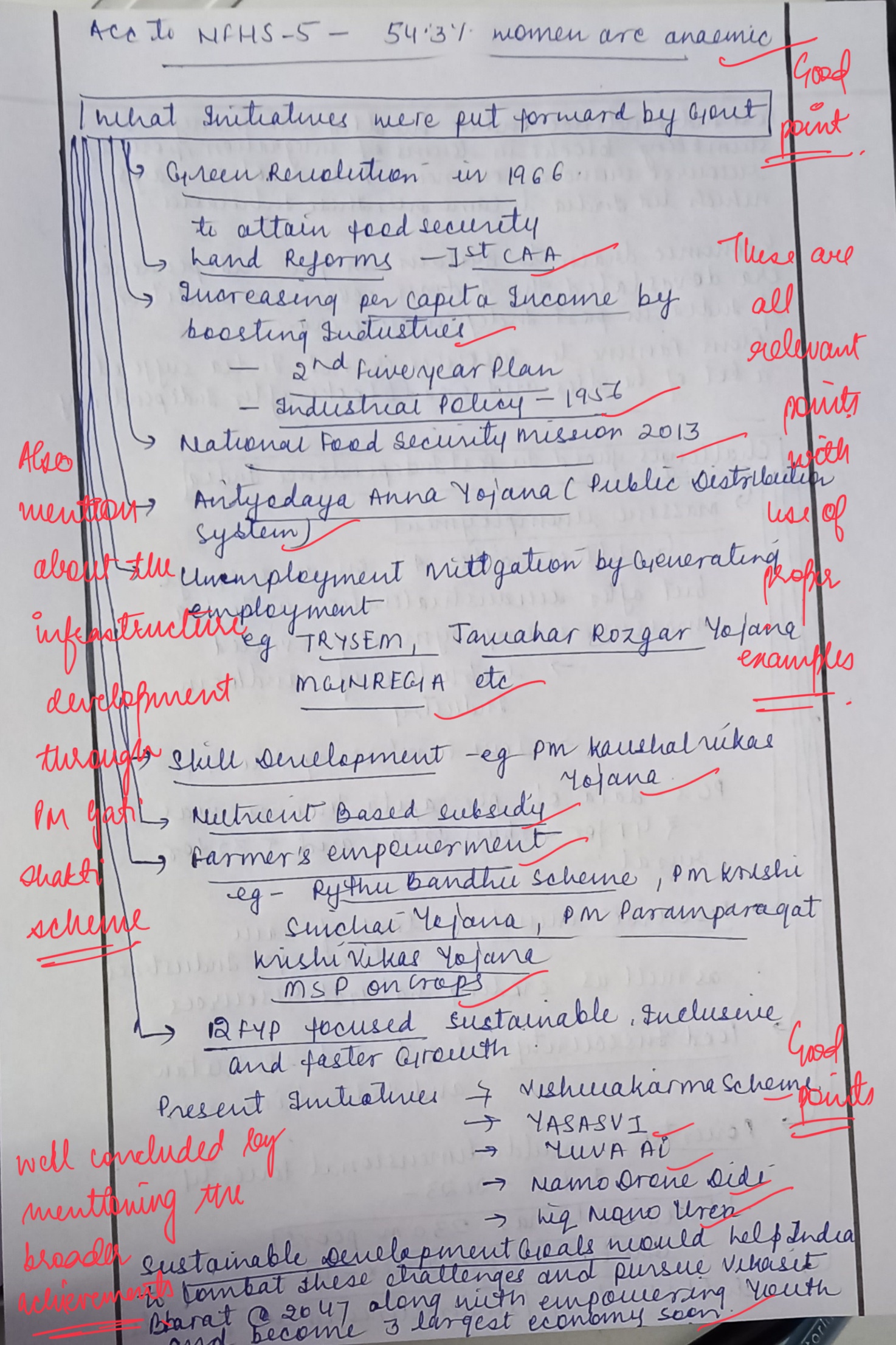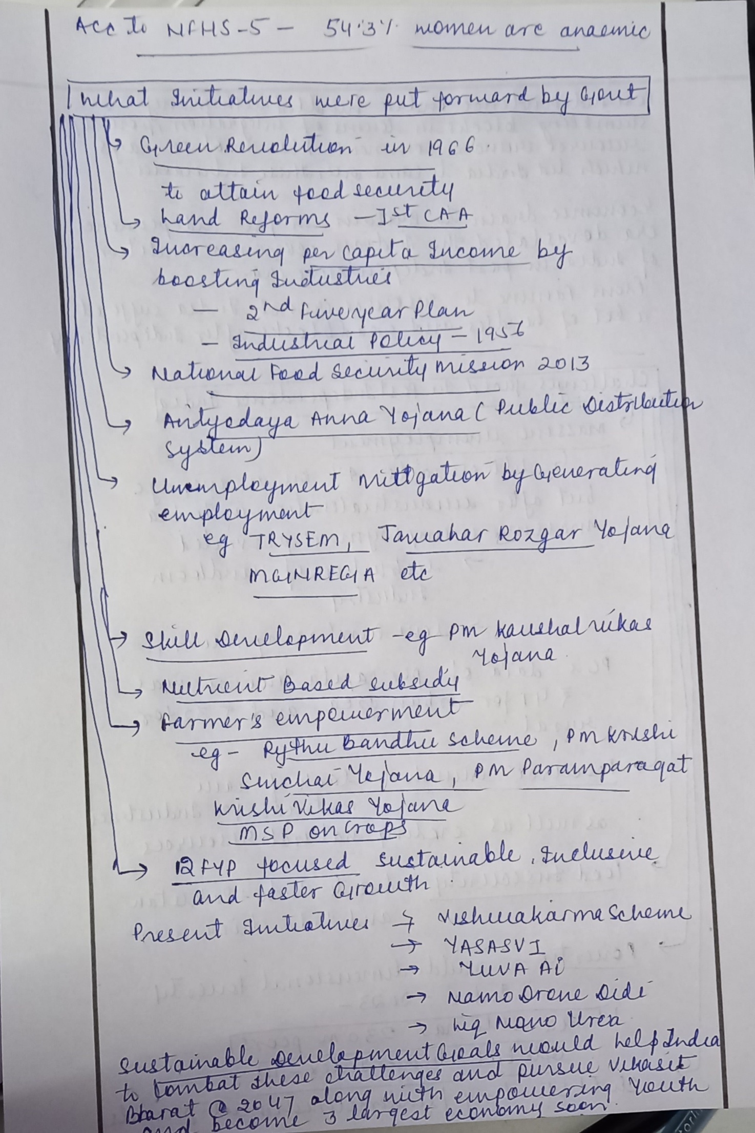 - Agricultural Reforms: The government implemented the Green Revolution, which led to a significant increase in food grain production. Policies supporting farmers, such as minimum support price (MSP), helped sustain agricultural growth.