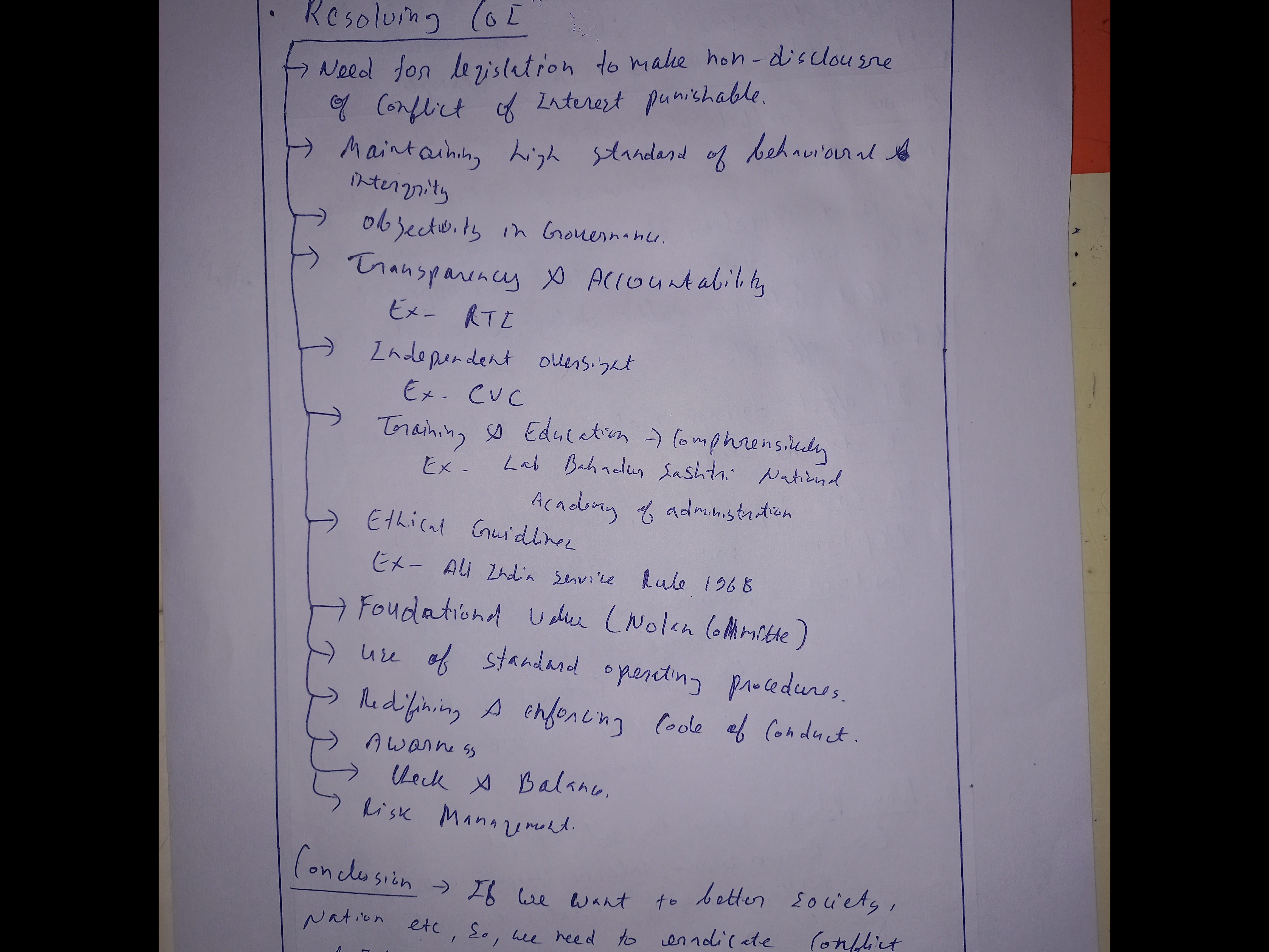 • Another way to resolve a conflict-of-interest situation is by implementing strict ethical guidelines and regulations that prevent conflicts of interest from arising in the first place.
