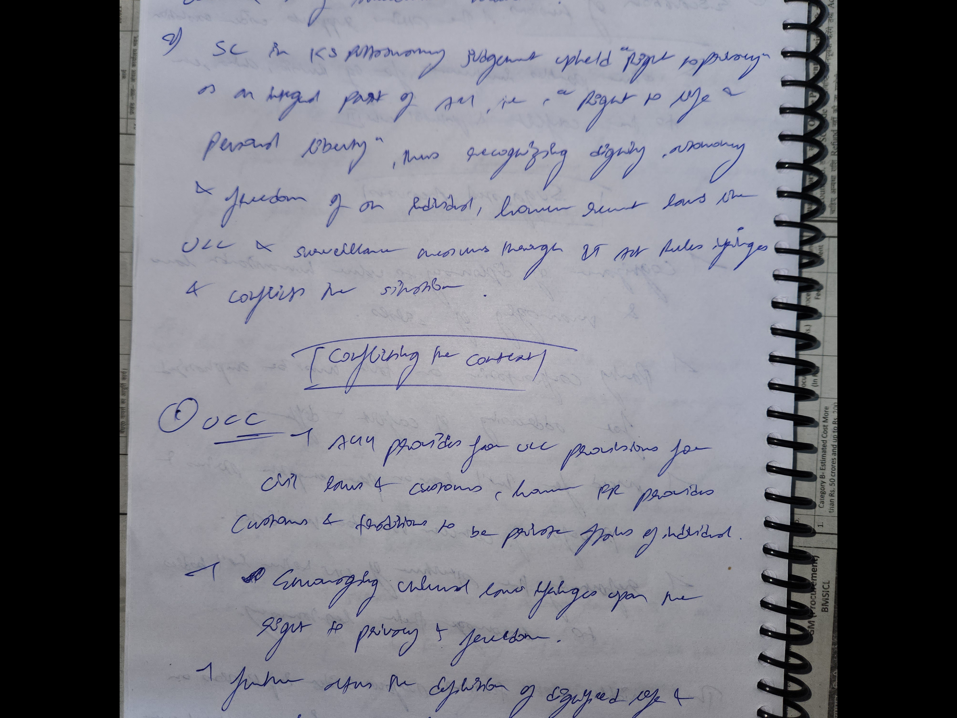 - Discuss Right to privacy in light of recent laws like UCC and rising surveillance measures.