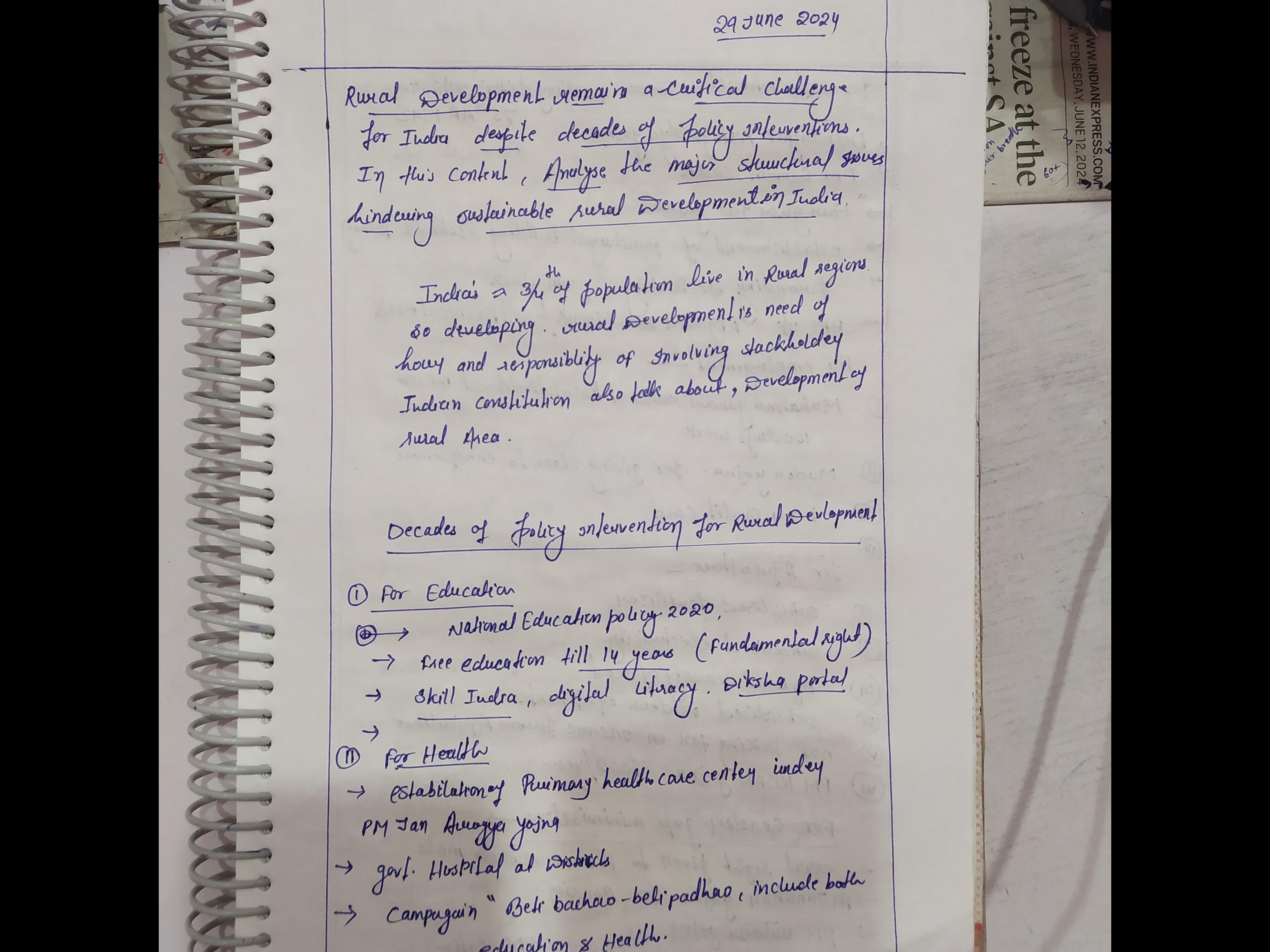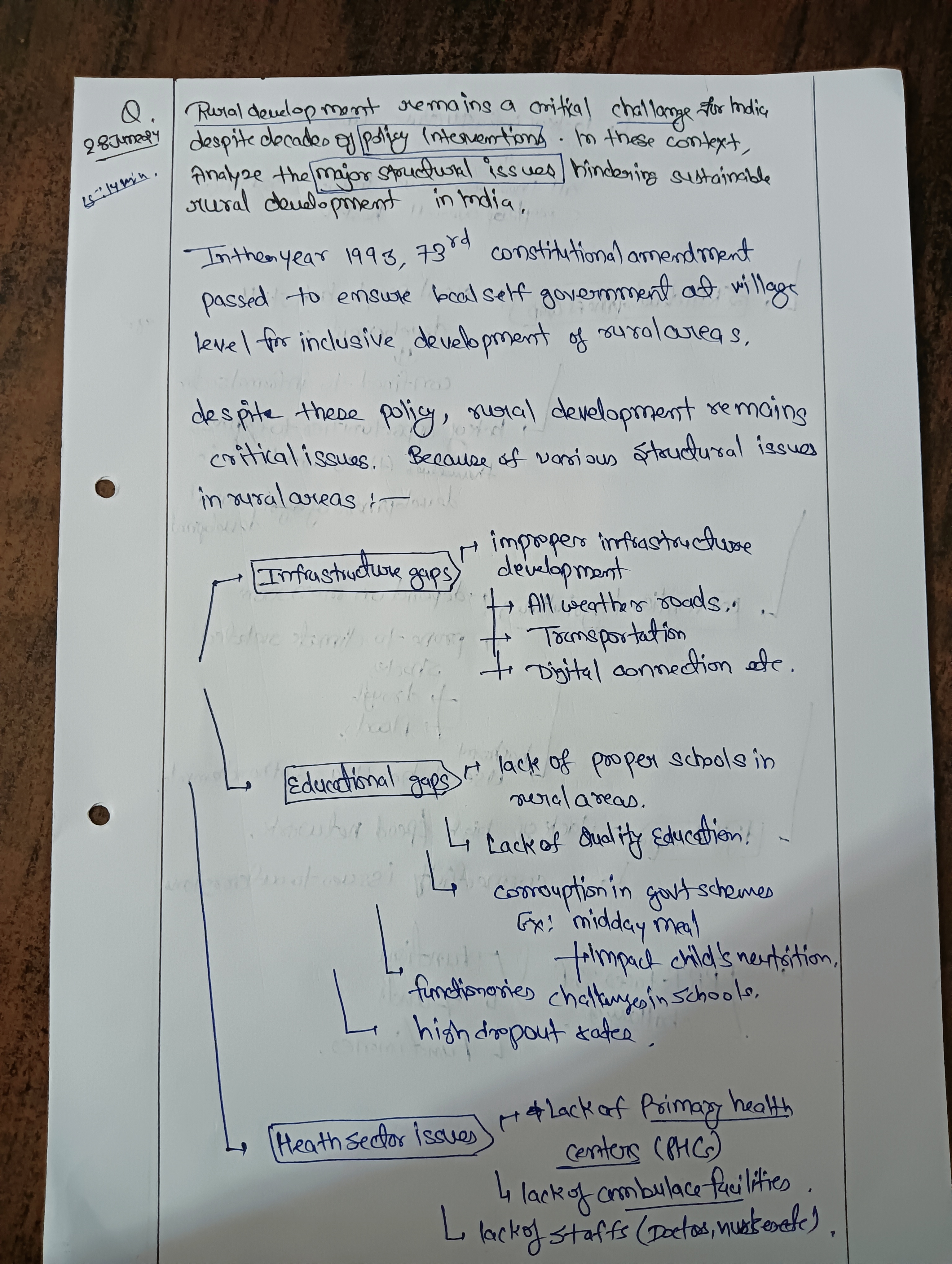 - Analyse the major structural issues hindering Sustainable Rural Development in India.
