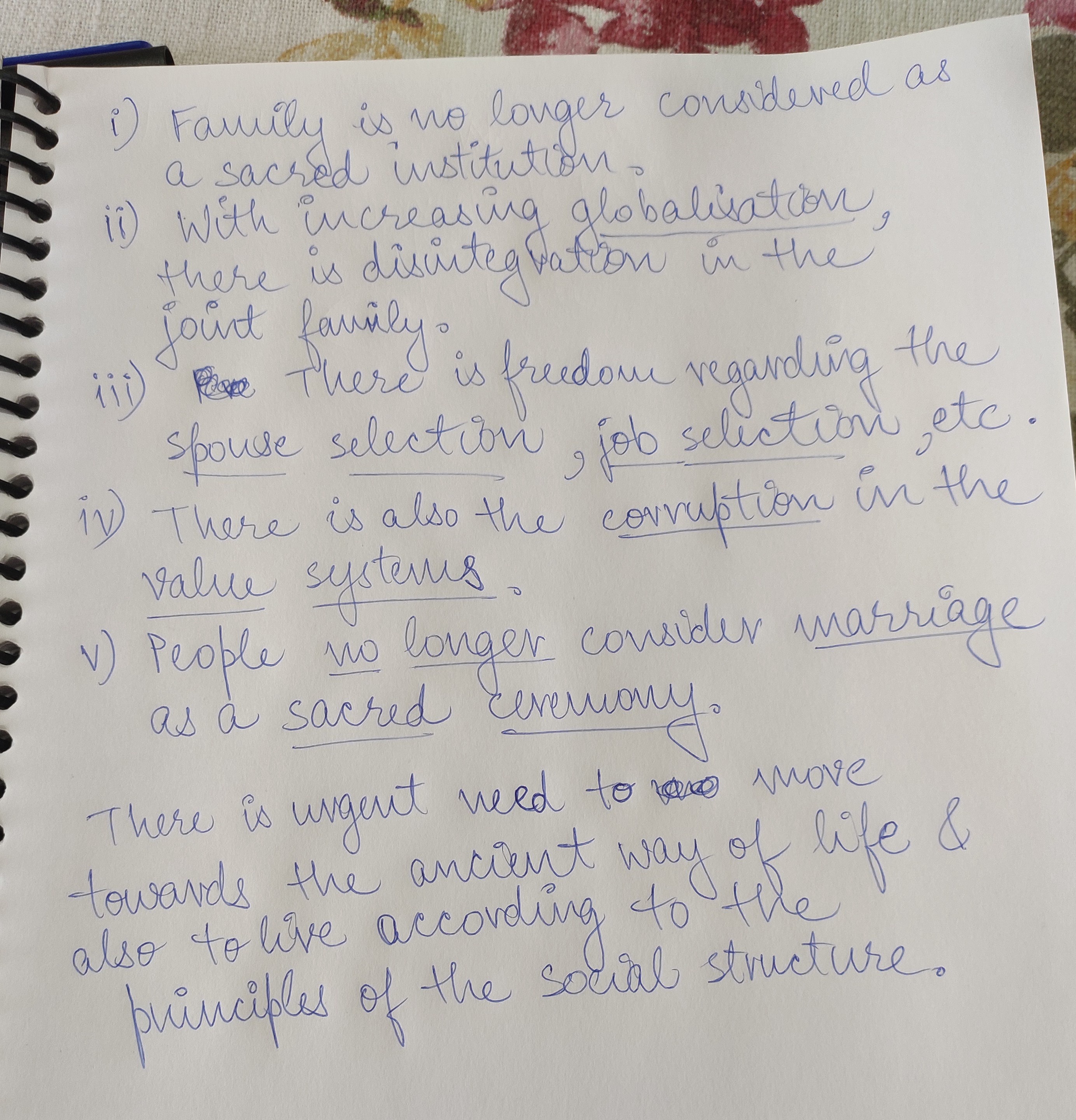 - Changing Social Role of Elders: As divorce becomes more common, elders’ advisory role diminishes, and they face reduced social security in a fragmented family structure.